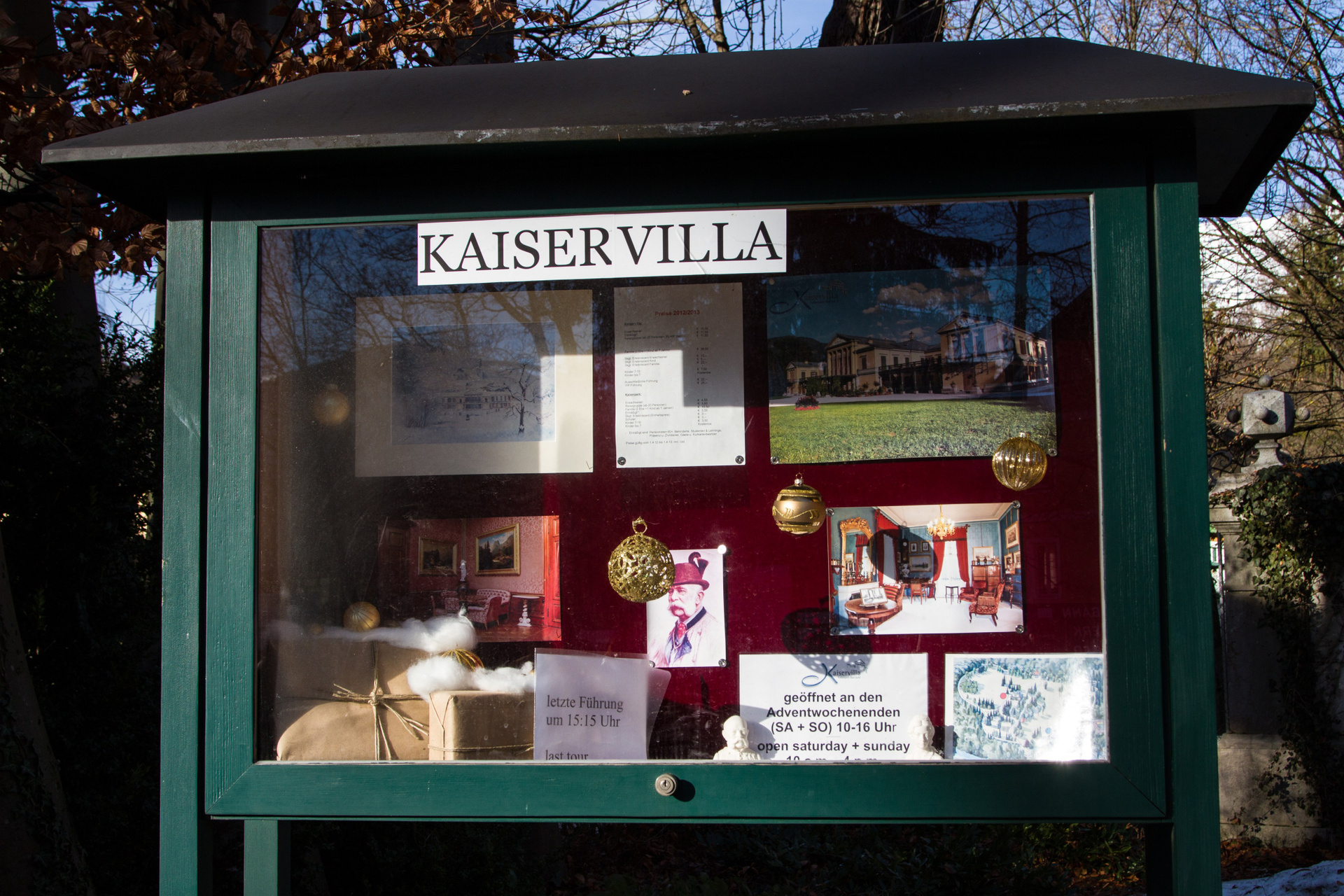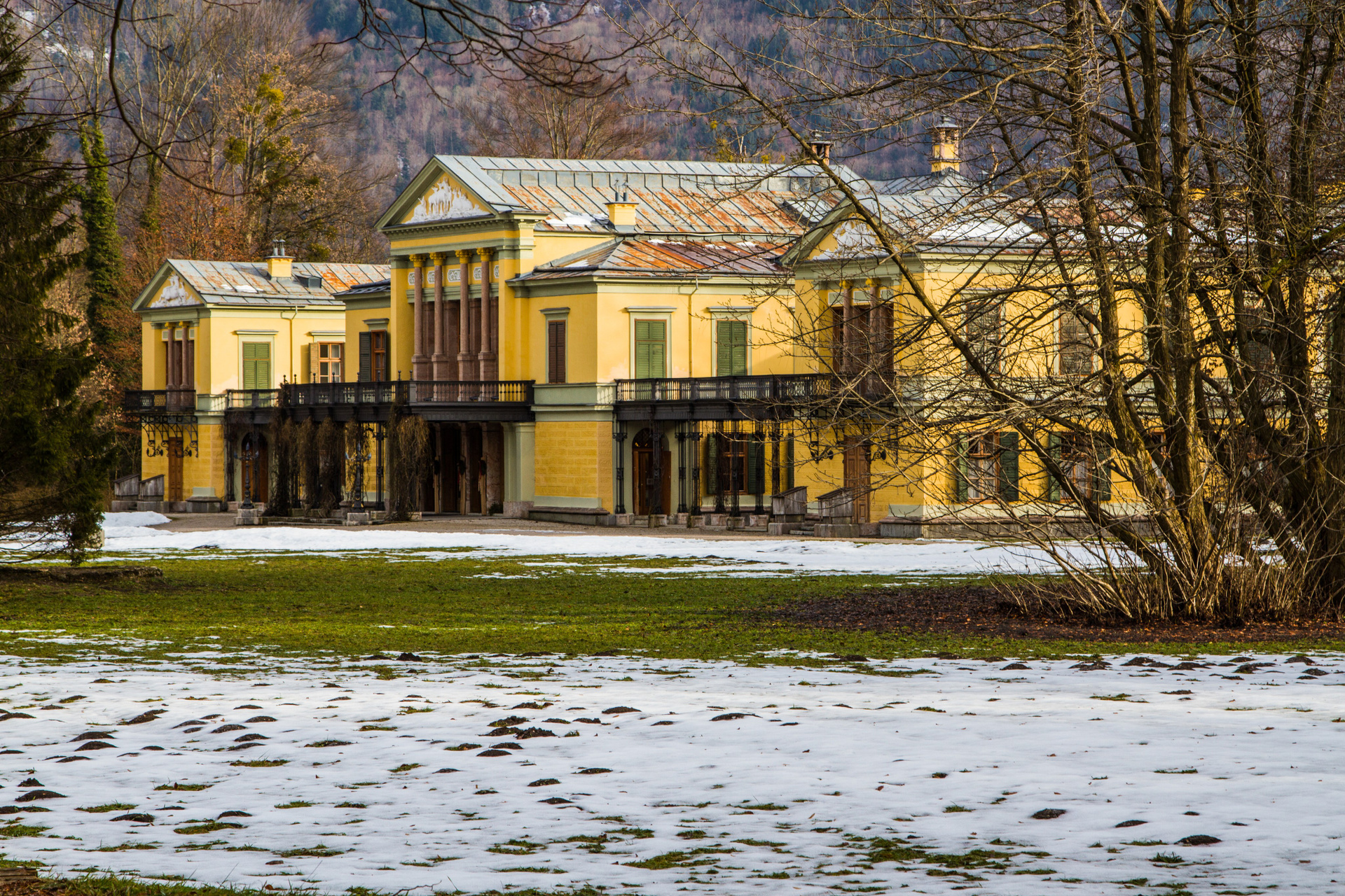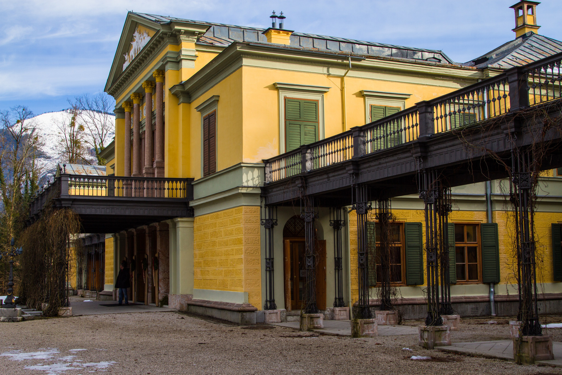 Не менее самого особняка привлекателен окружающий его старинный парк, плавно переходящий в лес и вздымающийся в гору. На одном из холмов там расположена чайная беседка императрицы, где Сисси любила проводить время в одиночестве, размышляя и занимаясь написанием печально-мистичных стихов. Сейчас в старой беседке расположен Музей фотографии, который, правда, оказался закрыт до апреля. Но даже это не беда, поскольку удовольствие можно получить от одной лишь прогулки по живописному парку, где время будто бы остановилось.