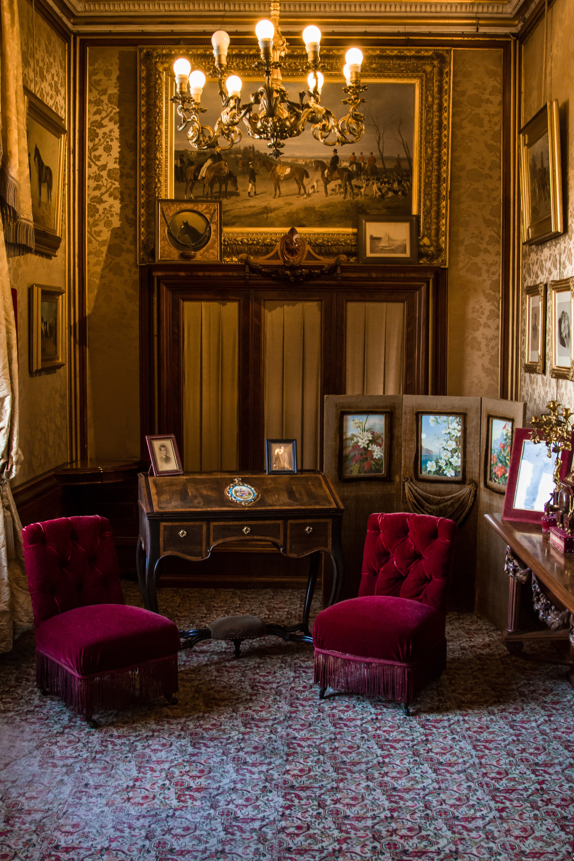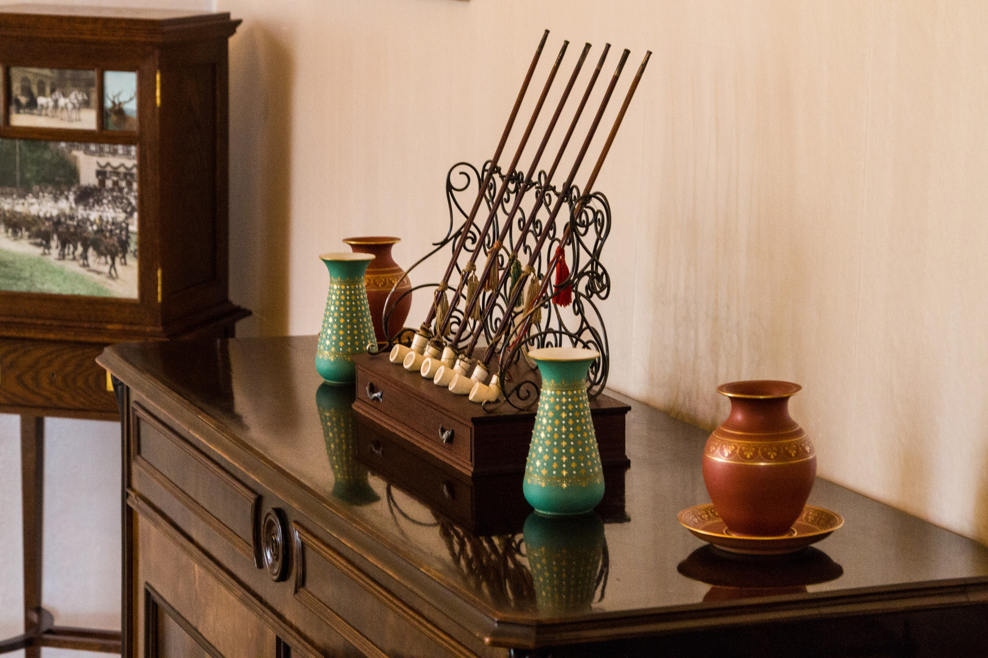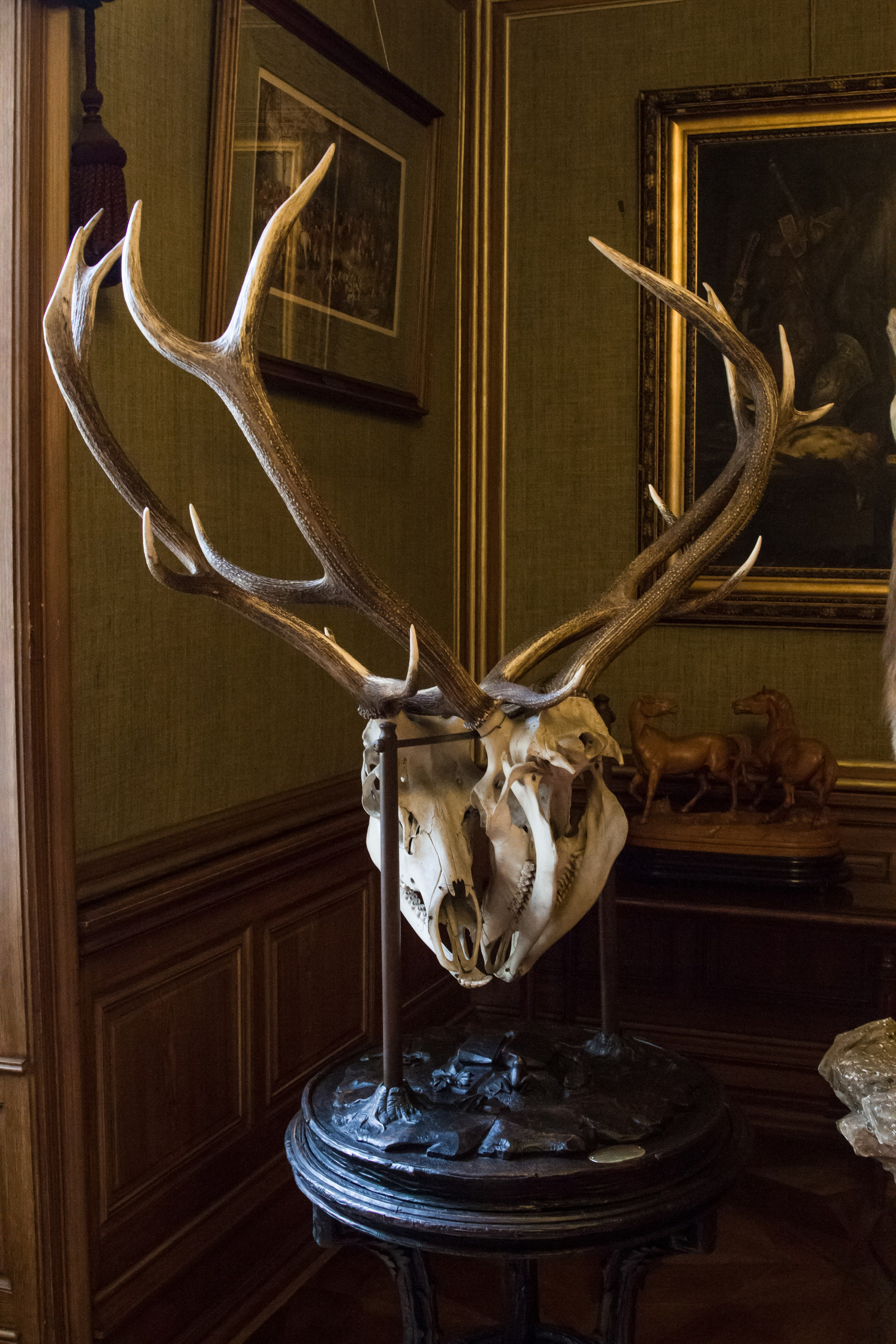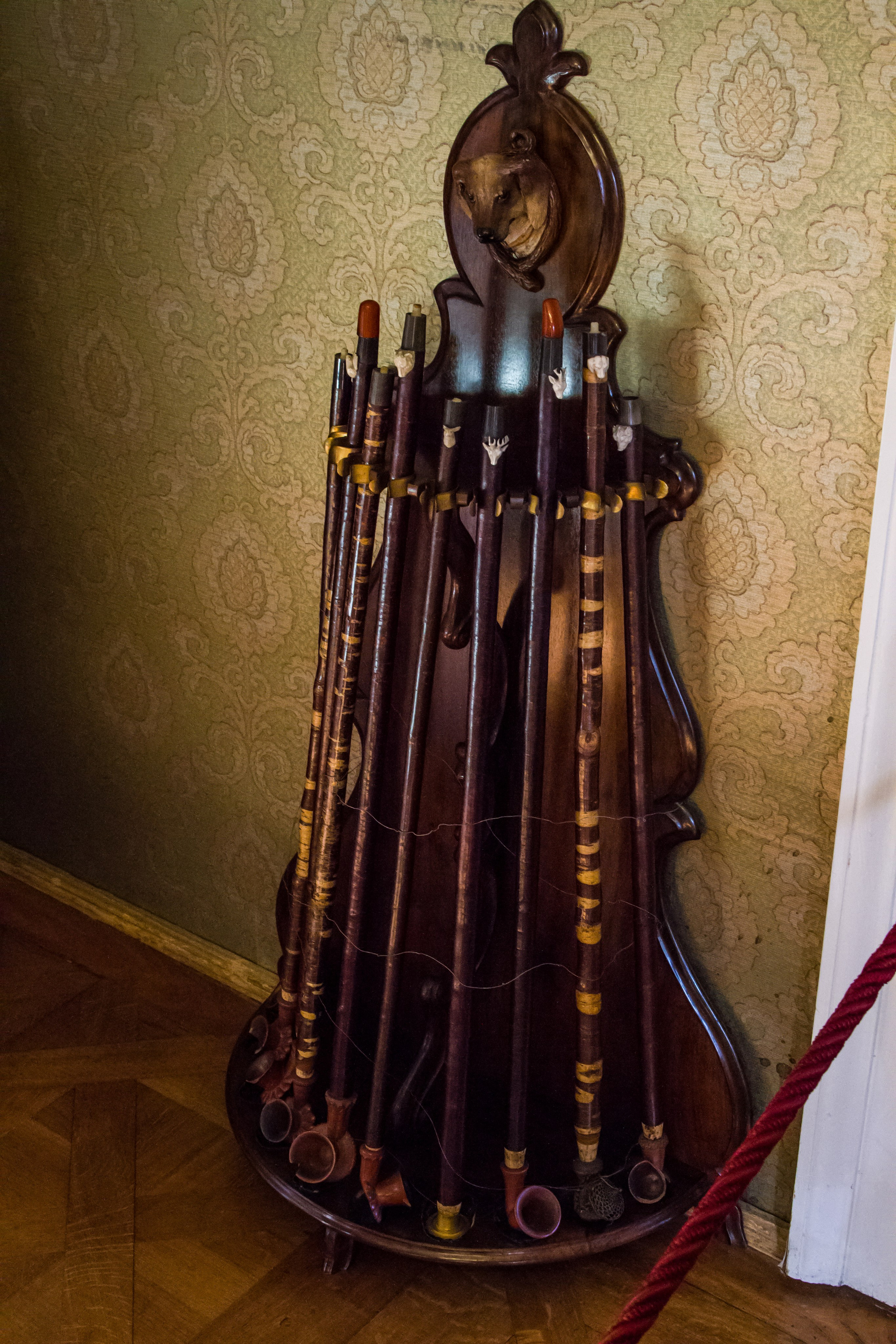 Надо сказать, свидетельства этого страстного увлечения кайзера охотой можно найти не только в холле, но и по всей вилле — в сером салоне даже находится серебряная скульптура покровителя охотников Святого Хубертуса. Имеется даже такой редкий трофей, как сцепленные в схватке рога двух оленей, которые не смогли разойтись и из-за этого погибли. В целом, убранство виллы, конечно, гораздо скромнее пышности апартаментов Хофбурга, зато рассматривать его интереснее и… душевнее что ли. Потому что абсолютно всё здесь несет отпечаток личности владельцев особняка — от коллекции курительных трубок до характерных потертостей на обивке дивана, на котором кайзер мог проводить часы и целые дни, погруженный в чтение.