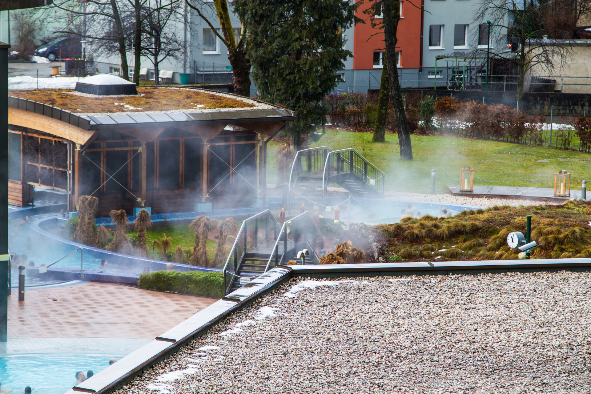Сейчас в Бад-Ишле бьют 17 холодных и теплых ключей; минеральные, сульфатные хлоридные натривые и сульфидные воды применяются для ванн, ингаляций, питьевого лечения; также практикуют обертывания и аппликации с помощью иловых сульфидных грязей; есть и соляные камеры, которые весьма полезны при заболеваниях органов дыхания, ну и желающим здесь, конечно, предлагают арома- и светотерапию и всевозможные виды массажа (гидромассаж, скажу я вам, это Вещь!) Здесь лечат всё от кожных заболеваний до бесплодия. Специально для этого был возведен термальный комплекс «Salzkammergut Therme» — каждое посещение за отдельную плату, конечно. Но! Мы поступили разумнее, узнали подробности и выяснили, что эти термы соединены крытым переходом с отелем «Royal Eurothermenresort», и для постояльцев отеля купание и все лечебные процедуры — бесплатны. Сам комплекс состоит из двух частей — открытой и закрытой. Часть на открытом воздухе включает в себя искусственную реку, соляной грот с массажными креслами, ванны с гидромассажем ног, джакузи и соляные фонтанчики, в крытом же помещении имеется бассейн с соленой водой и гидромассажный небольшой бассейн с повышенной концентрацией соли и температурой 36 градусов, еще есть ванны-джакузи, массажный кабинет, солярий и прекрасные зоны отдыха. В общем, всё для удовольствия тела! А о том, что в Бад-Ишле можно найти для души поведаю далее.