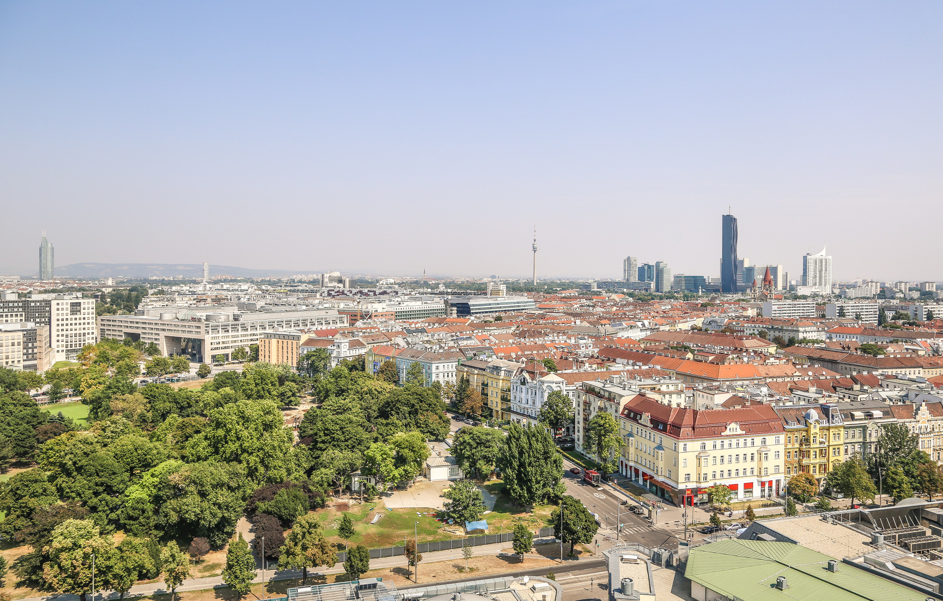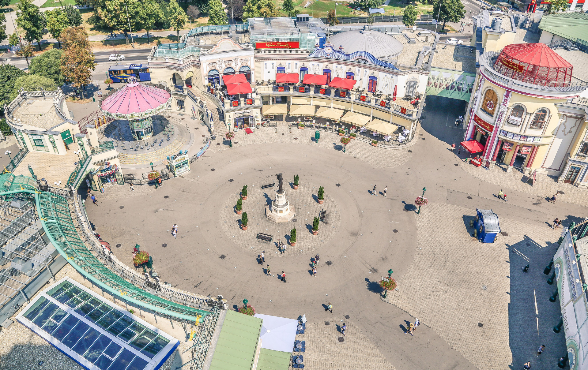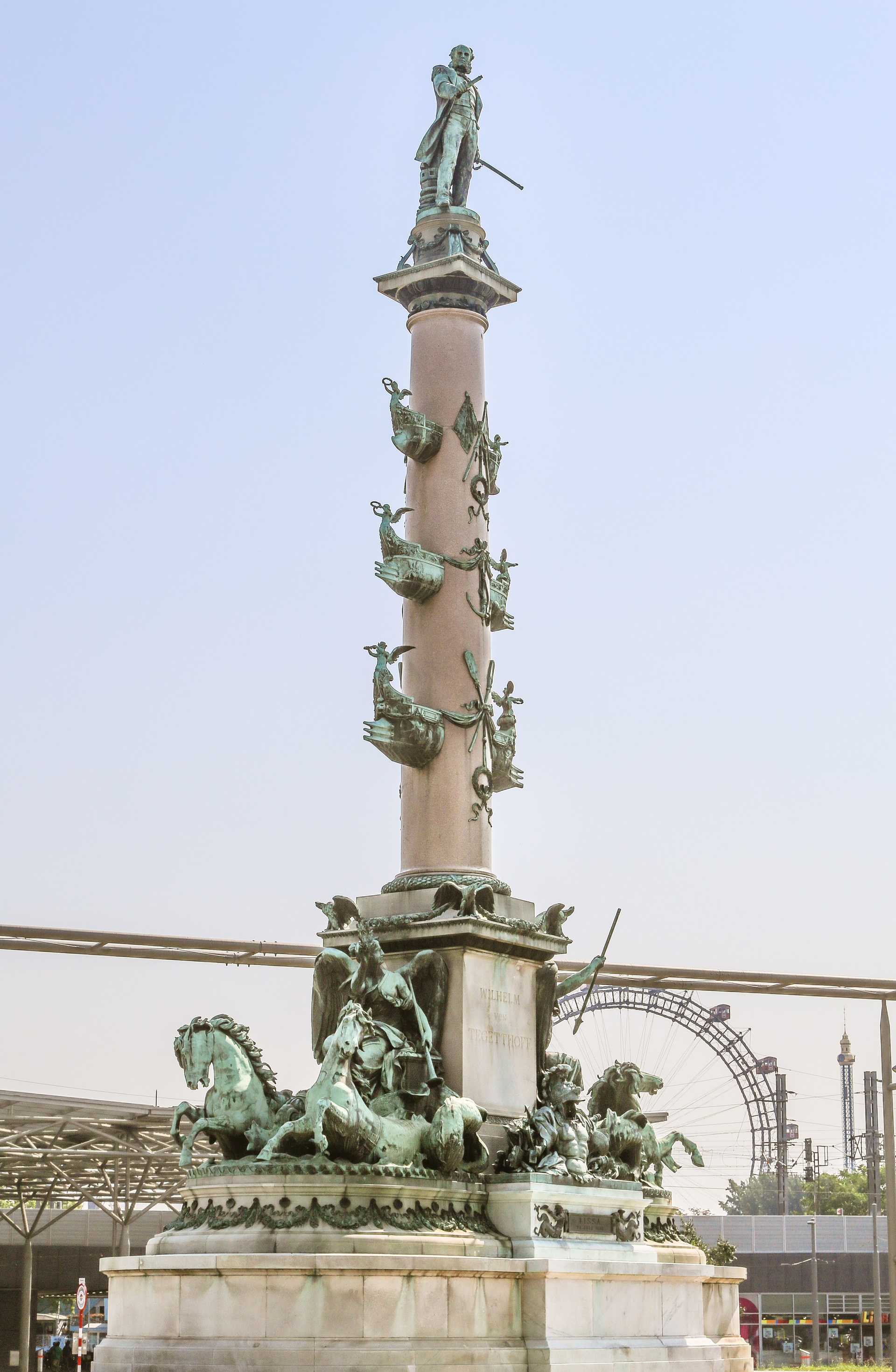 Найти парк легко: к нему прилегает Северный вокзал c бросающимися в глаза алыми надписями ÖBB — это местный аналог РЖД. А посреди площади Пратерштерн стоит ориентир: триумфальная колонна в честь адмирала Вильгельма фон Тегетгоффа. Из-за нее уже выглядывает силуэт знаменитого старого колеса обозрения Ризенрад.
