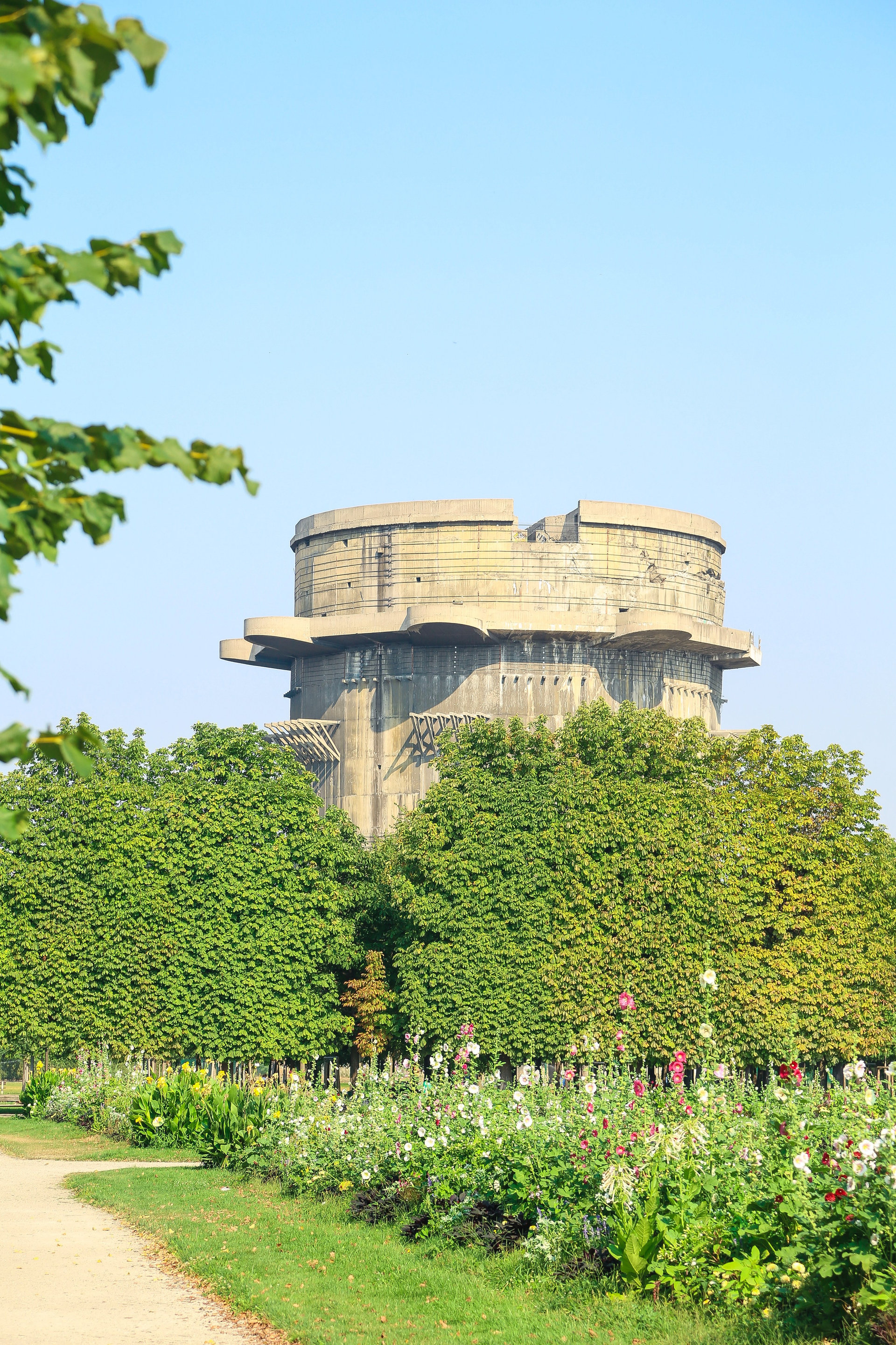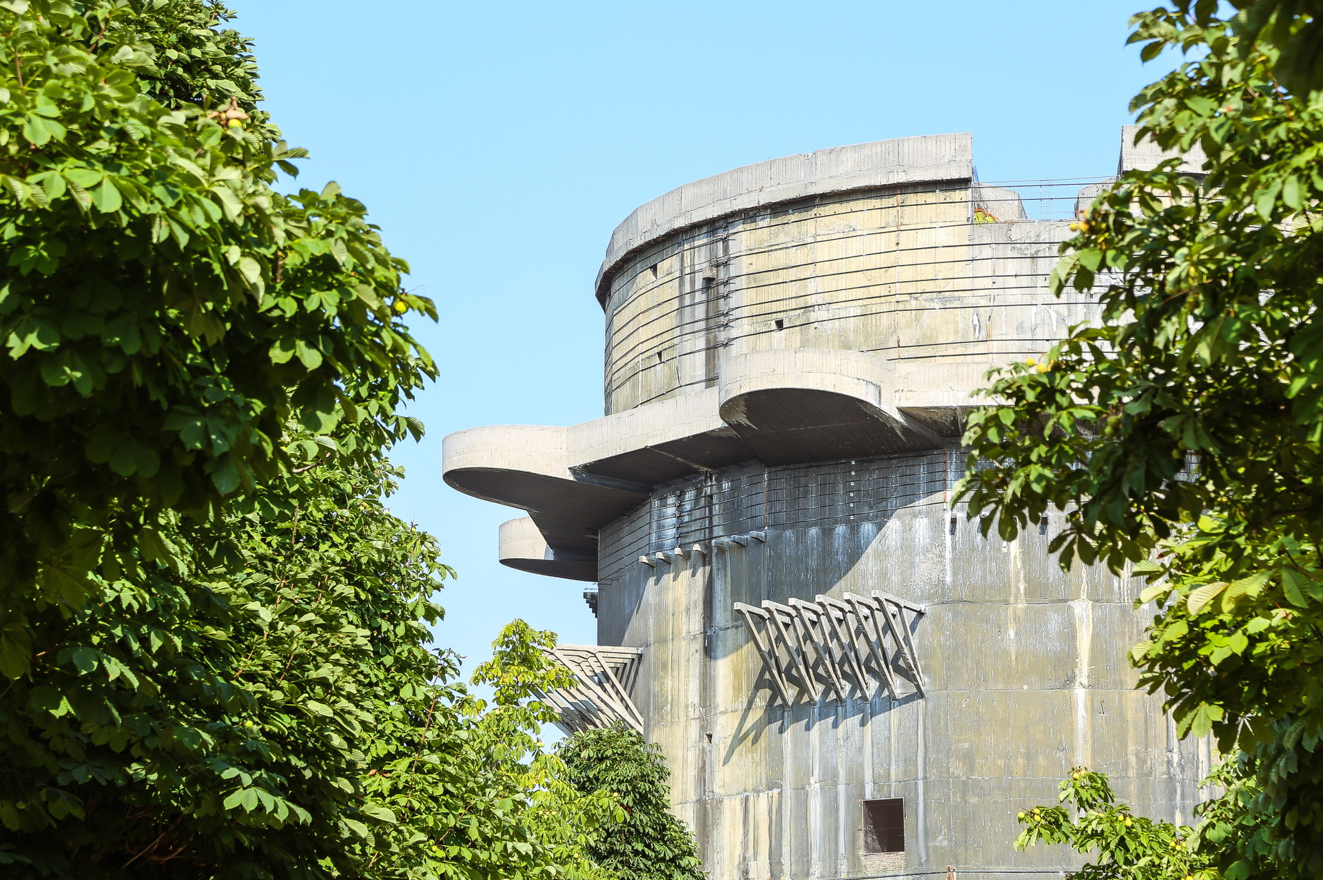И вдруг внезапно посреди всей этой музыки и цветов вырастают перед глазами мрачные напоминания о прошлом — построенные по приказу Гитлера зенитные башни Люфтваффе для противовоздушной обороны. Всего в Вене шесть таких флактурмов, из них два в Аугартене — они всегда стоят парами, каждая с десятиэтажный дом высотой, будто жуткий циклопический замок. Круглая боевая G-башня была предназначена для зенитного огня, а прямоугольная L-башня — для его корректировки.