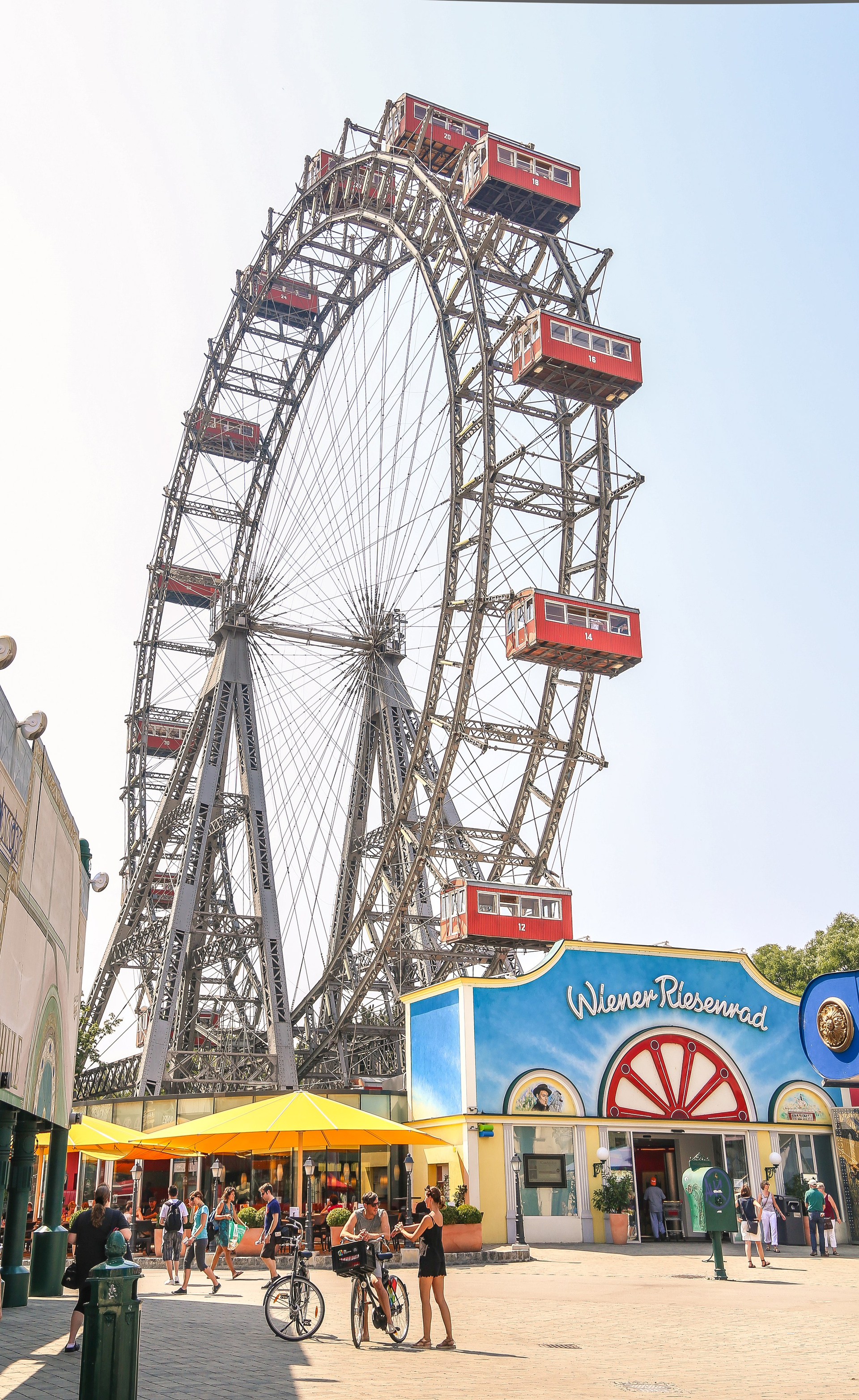 Самое первое колесо появилось в 1893-м году в Чикаго — созданное по проекту инженера Джорджа Ферриса, следующей стала Великобритания с ее лондонским колесом, установленным в 1895-м, а еще через два года и в Вене появился Ризенрад — его строительство согласовывали долго и со скрипом, дескать, пускай эти англичане творят что хотят, а венцы так рисковать не собираются. Но в июне 1897-го венское колесо все-таки открылось для посетителей. И оно стоит до сих пор! Являясь, по сути, самым старым в мире, поскольку и чикагский, и лондонский аттракционы давно были отправлены на металлолом.