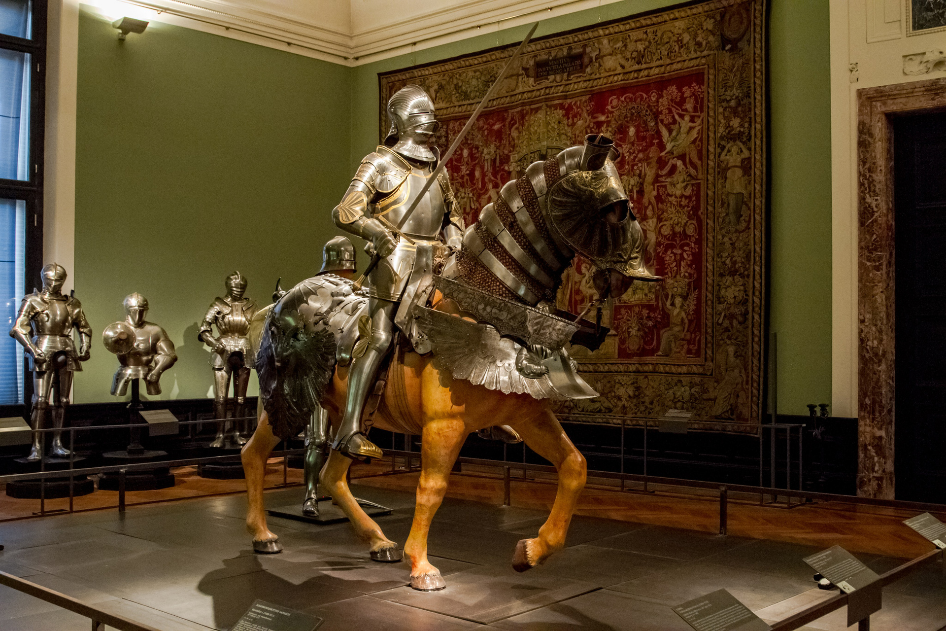 А в Новом дворце, где сейчас располагается Национальная библиотека, собрана самая манящая для меня коллекция — старинных музыкальных инструментов! Чего там только нет — клавесин Шуберта, рояль Вагнера, скрипка батюшки «Вольфи» — Леопольда Моцарта, ну, а также многочисленные лютни, в том числе одна, выполненная из мрамора, всевозможные разновидности духовых и струнных (продемонстрирована вся эволюция скрипки), клавишные на любой вкус — хоть вам рейсеклавикорд, хоть трехклавиатурный клавесин, хоть чембало, хоть старый добрый рояль; есть даже гибриды вроде орфики, которая вроде бы формально считается струнным инструментом, а по факту больше похожа на щипково-клавишный. Полюбовавшись на инструменты, можно, кстати, заодно посетить и соседнюю экспозицию — Waffensammlung, коллекцию средневекового оружия, значительная часть которого принадлежала эрцгерцогу Фердинанду Тирольскому, который собрал ее в своем замке Амбрас, — там представлены все виды доспехов, оружия и военного снаряжения, в том числе принадлежавшего знаменитым полководцам.