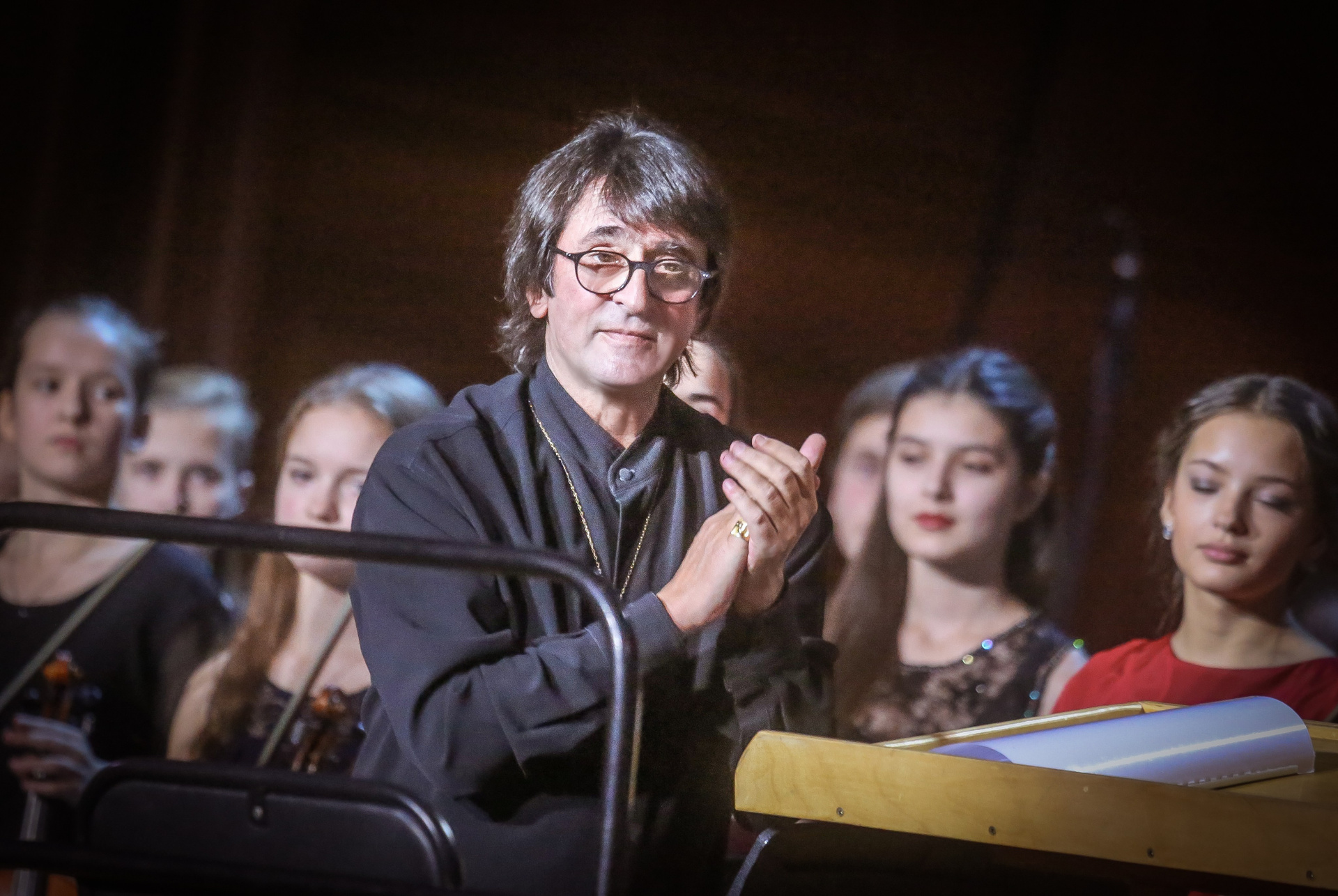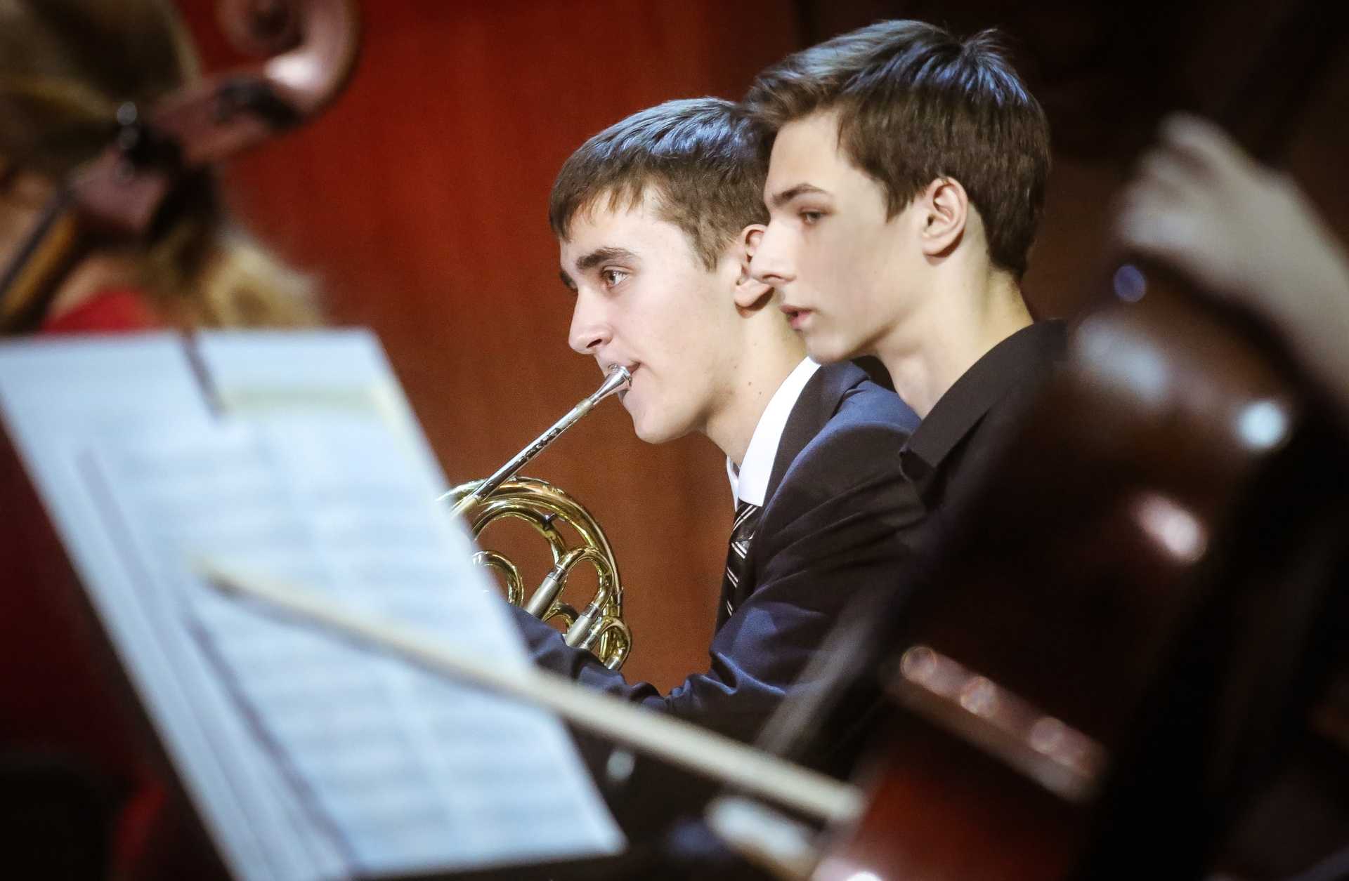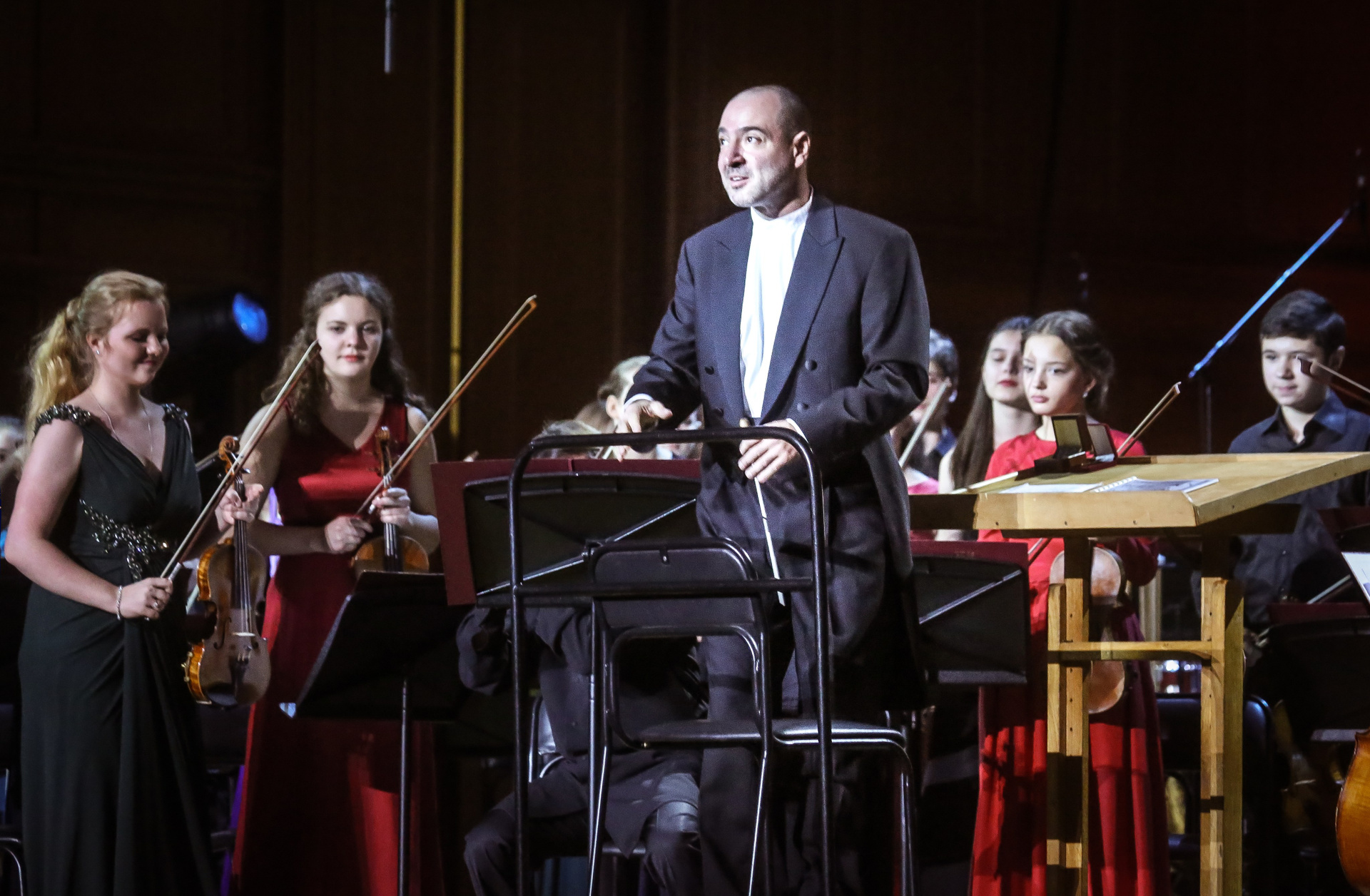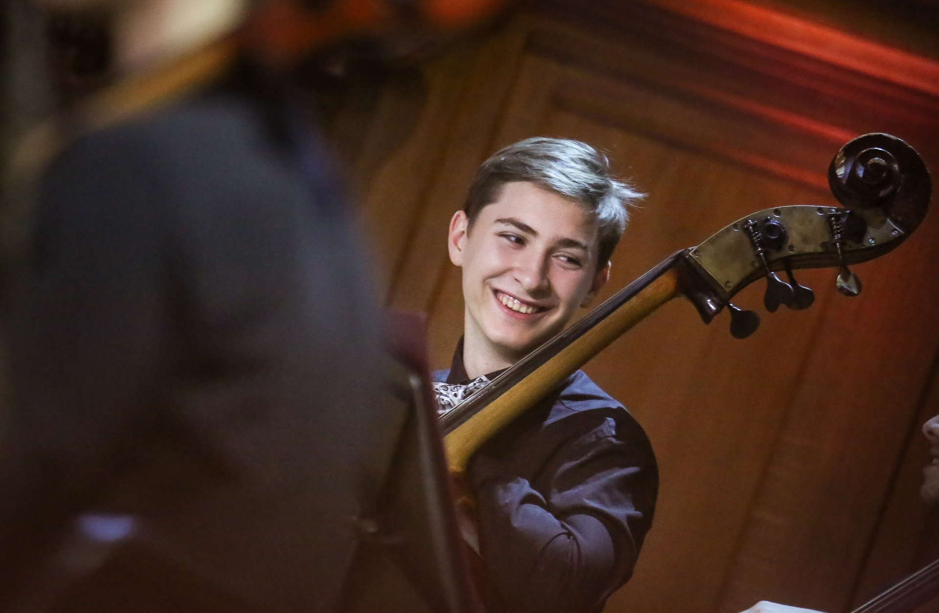 А четыре года назад их полку прибыло: в 2012-м Юрий Башмет устроил беспрецедентное и масштабное прослушивание среди учащихся музыкальных школ и вузов разных городов, по результатам которого был сформирован Всероссийский юношеский симфонический оркестр. С тех пор подобный конкурс у них случается каждый сезон — для пополнения и обновления состава, после чего коллектив отправляется в гастрольное турне по России или Европе. Нынешний год не стал исключением — с мая по октябрь прошел новый всероссийский отбор, затем ребята в течение недели интенсивных репетиций в пансионате на Николиной Горе готовили концертную программу, а с начала ноября стартовала череда выступлений: в телепроекте «Большая опера», на церемонии вручения грантов Мэра Москвы в театре «Геликон», в концертном зале Мариинского театра, и, наконец, 6 ноября на закрытии фестиваля «Ars Longa» в Большом зале Консерватории, который по этому случаю принарядился и предстал в необычном празднично-пестром освещении.