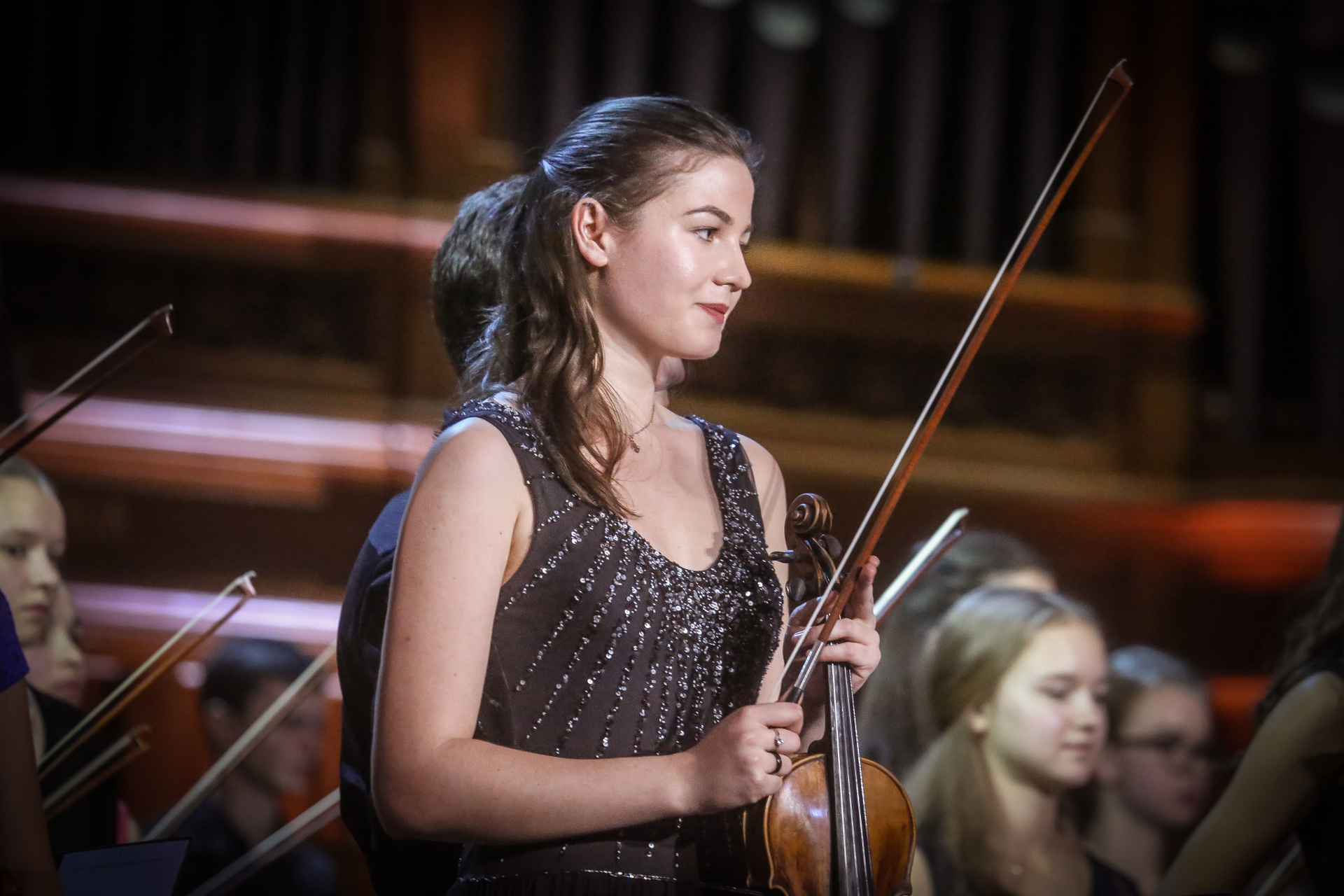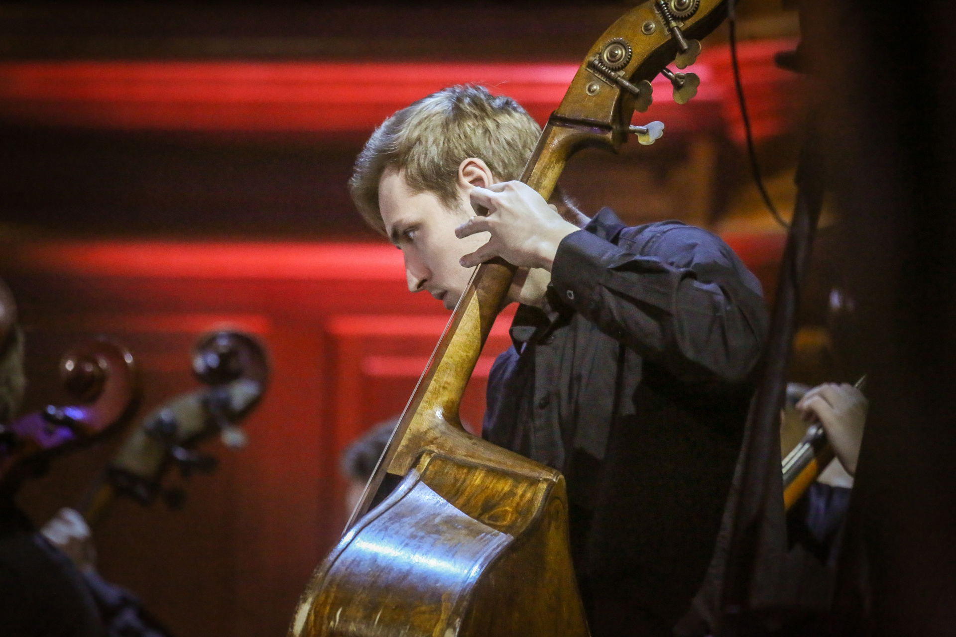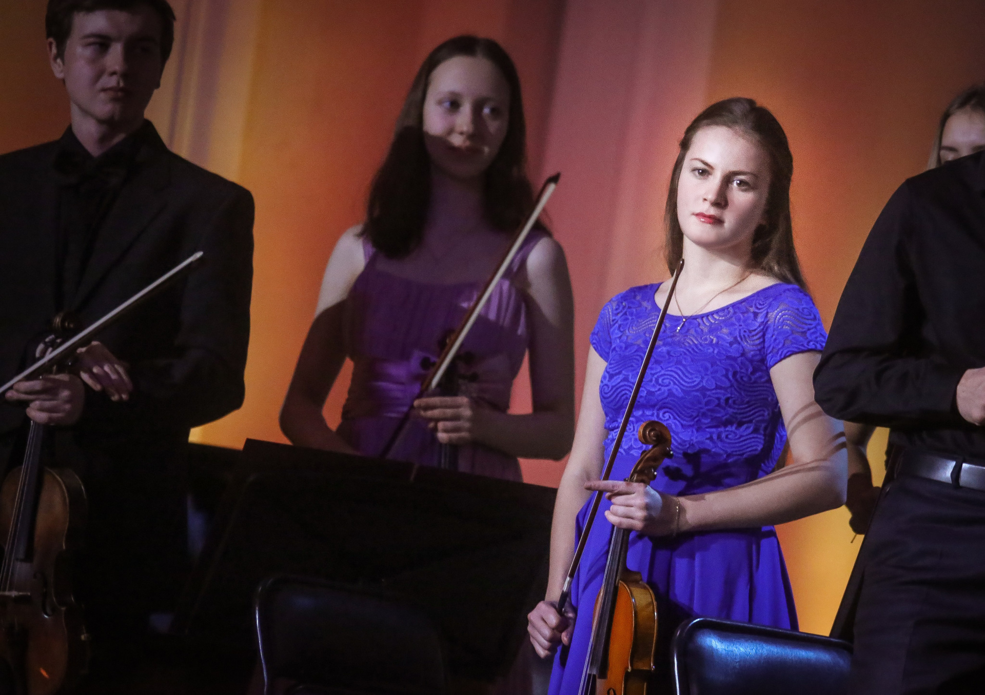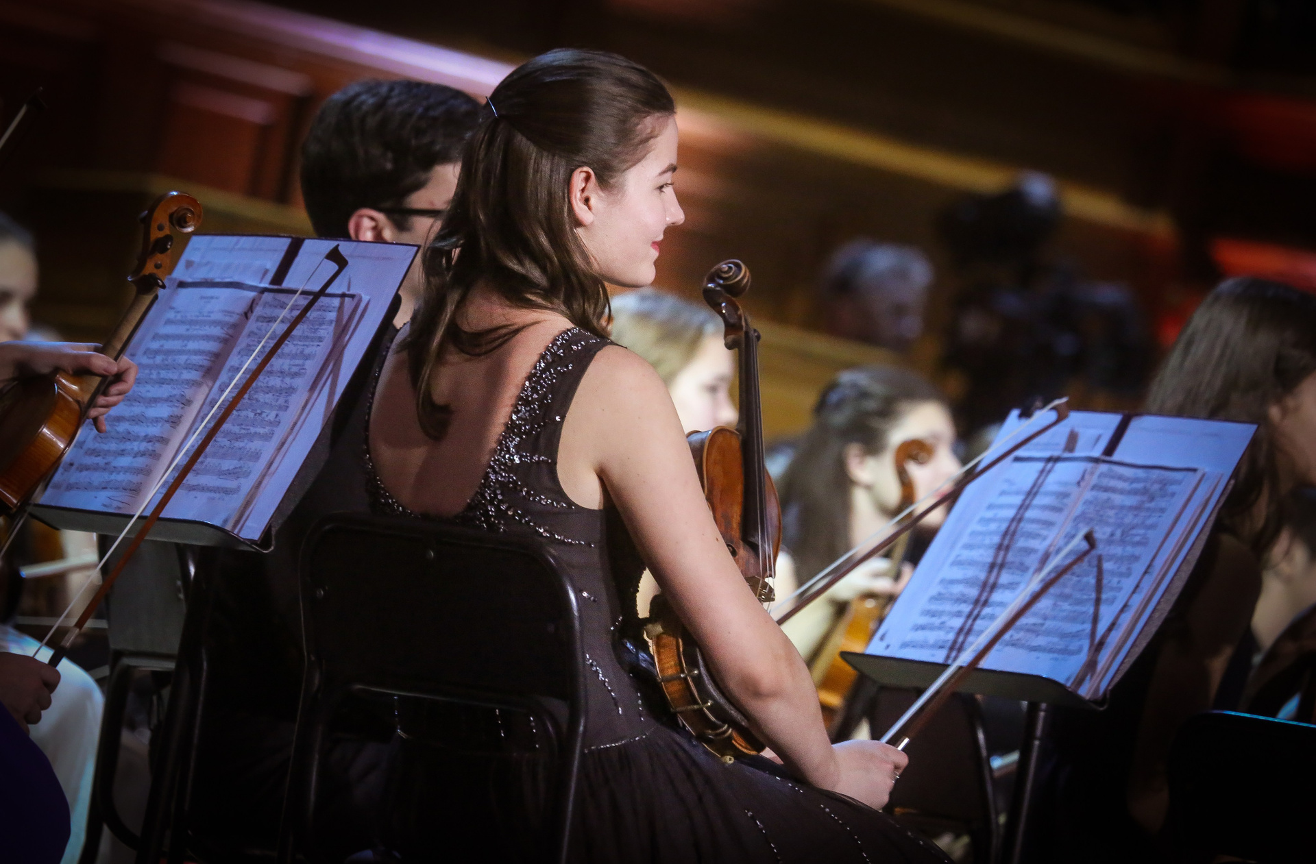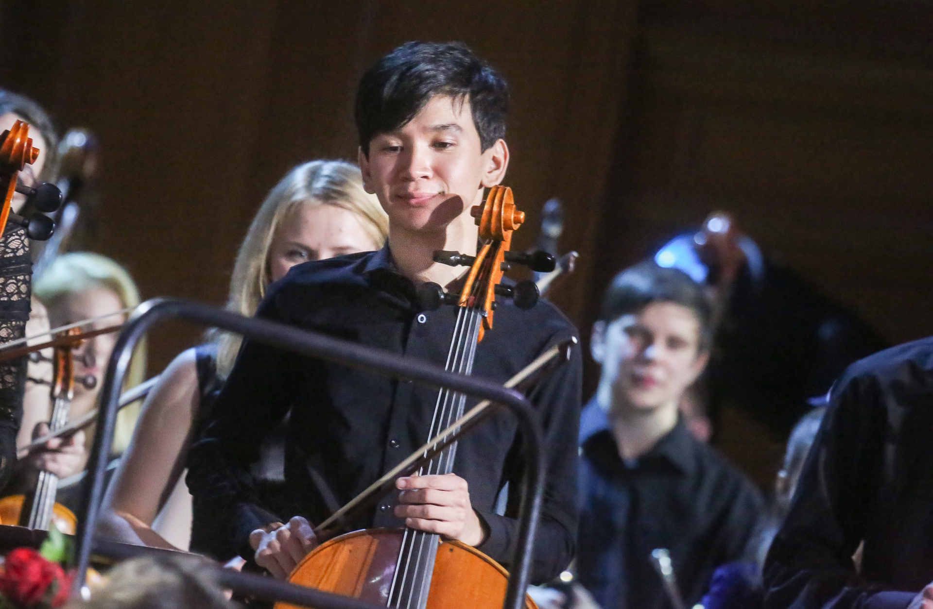 А четыре года назад их полку прибыло: в 2012-м Юрий Башмет устроил беспрецедентное и масштабное прослушивание среди учащихся музыкальных школ и вузов разных городов, по результатам которого был сформирован Всероссийский юношеский симфонический оркестр. С тех пор подобный конкурс у них случается каждый сезон — для пополнения и обновления состава, после чего коллектив отправляется в гастрольное турне по России или Европе. Нынешний год не стал исключением — с мая по октябрь прошел новый всероссийский отбор, затем ребята в течение недели интенсивных репетиций в пансионате на Николиной Горе готовили концертную программу, а с начала ноября стартовала череда выступлений: в телепроекте «Большая опера», на церемонии вручения грантов Мэра Москвы в театре «Геликон», в концертном зале Мариинского театра, и, наконец, 6 ноября на закрытии фестиваля «Ars Longa» в Большом зале Консерватории, который по этому случаю принарядился и предстал в необычном празднично-пестром освещении.
