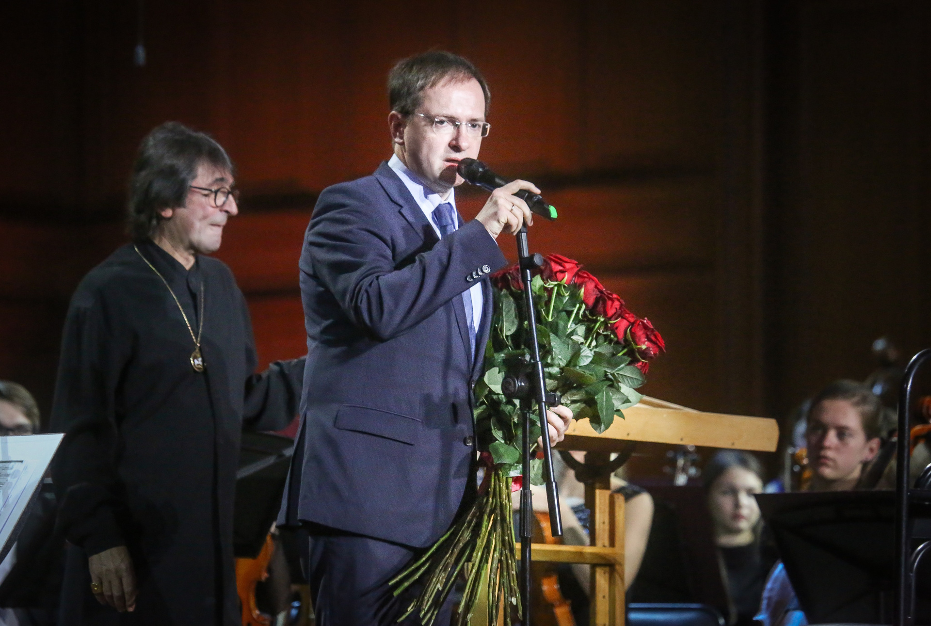 Открывала концерт «Большая серенада» — премьерное сочинение, специально написанное для оркестра Башмета его другом, известным композитором Александром Чайковским, представителем прославленной музыкальной династии. Конечно же, Юрий Абрамович традиционно выступил и в качестве солиста, исполнив Анданте из сонаты для альта и фортепиано Брамса в переложении Берио для альта и симфонического оркестра, а дирижировал произведением итальянский маэстро Клаудио Ванделли, с которым ВЮСО сотрудничает уже не первый сезон.
