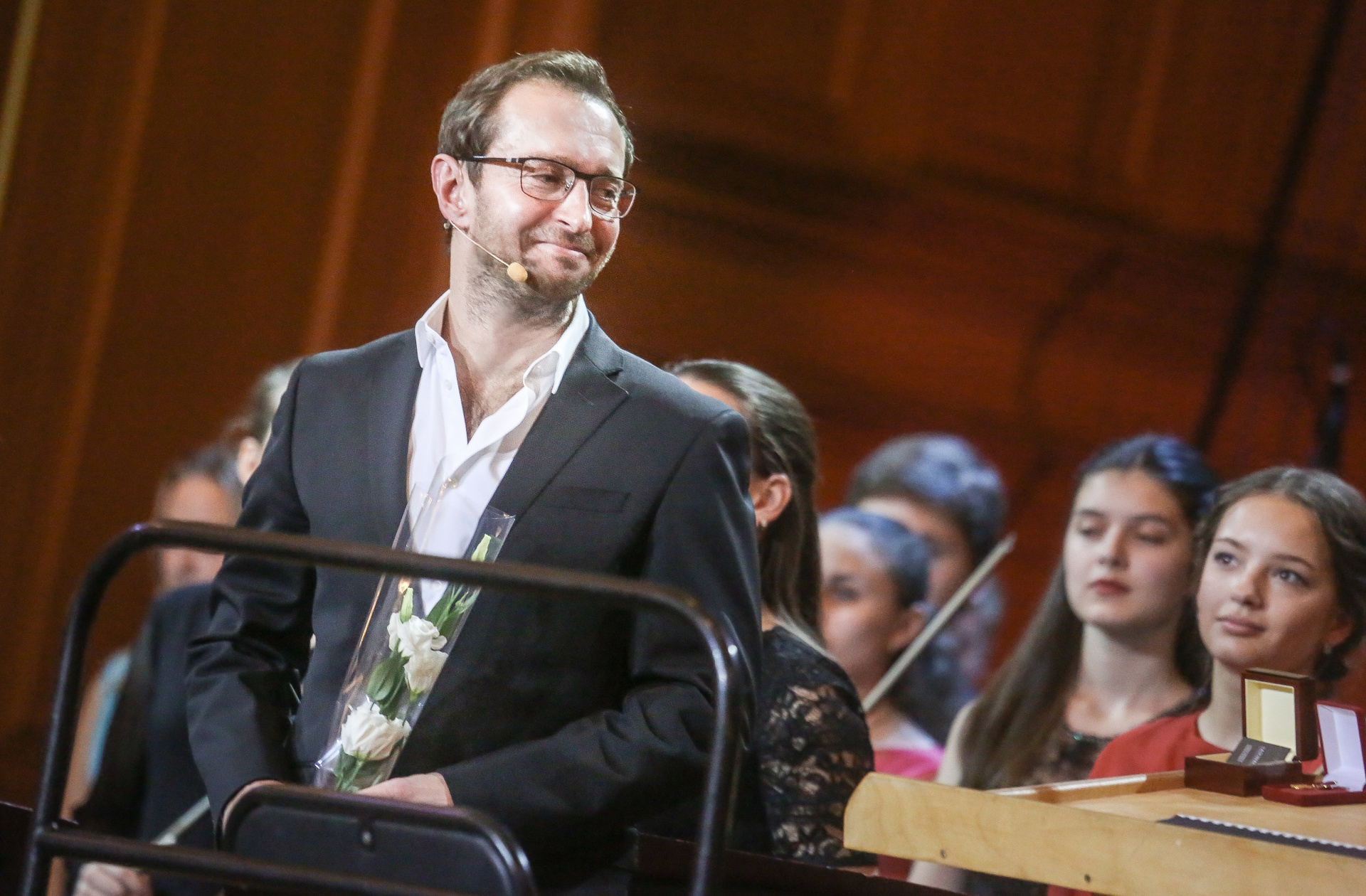 А меня вот, признаюсь, больше интриговало и волновало второе отделение концерта с заявленной в нем Пятой симфонией Чайковского. Когда подобное произведение исполняется в годовщину смерти композитора (хоть совпадению, полагаю, случайное, но все же!), это само по себе уже создает определенное настроение. С Пятой вообще всё непросто. Всегда имевшая успех у публики, высоко оцененная коллегами-современниками Чайковского, она, тем не менее, у Петра Ильича была не самой любимой, далась ему тяжело и очень огорчала. Сыграть ее сложно — технически, и еще труднее понять, о чем играешь, даже при двадцатом исполнении, уж не говоря о первом. Что можно знать о чувстве уходящей жизни и страхе смерти в 10, да хоть бы и в 20 лет… Удивительно было наблюдать, как молодые музыканты открывают для себя эту симфонию, переживают все метаморфозы судьбоносной темы — зловещей, печальной, мужественной и в конце концов торжественно-победной. Самое драгоценное впечатление за весь вечер!
