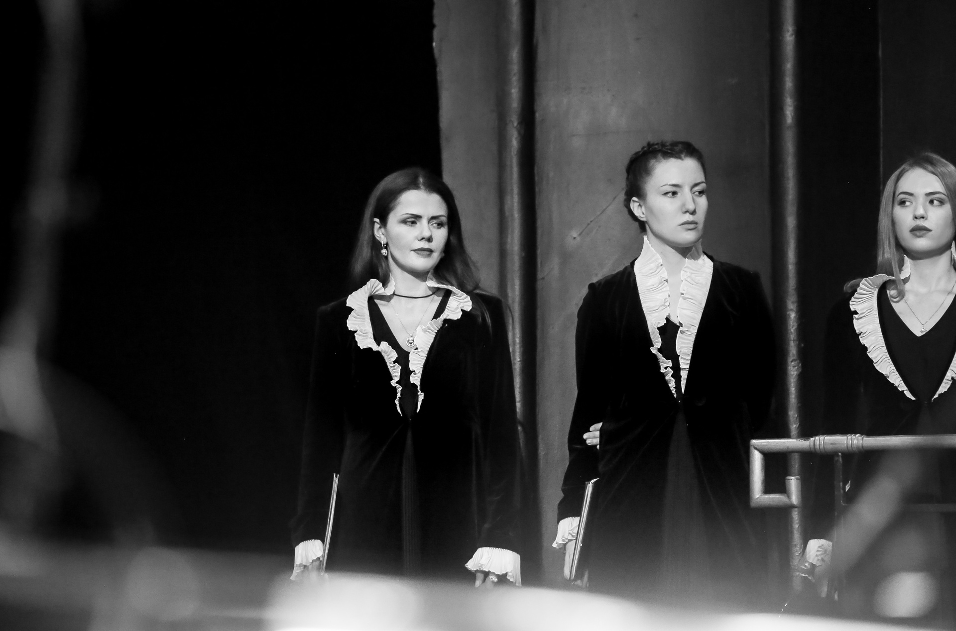 Еще одна общая черта, отличающая произведения от прежних месс композитора, — их монументальность. Которая, собственно, и стала краеугольным камнем трактовки Филиппо Арлиа — звуковая картина получилась настолько насыщенная, плотная, что порой казалось, будто музыка звучит со всех сторон, а ты в центре стихии. Эффект был отчасти обусловлен расположением музыкантов: мужской хор в глубине, два женских по краям, а оркестр перед солистами, но не в яме, а поднятый на платформе практически до уровня сцены.