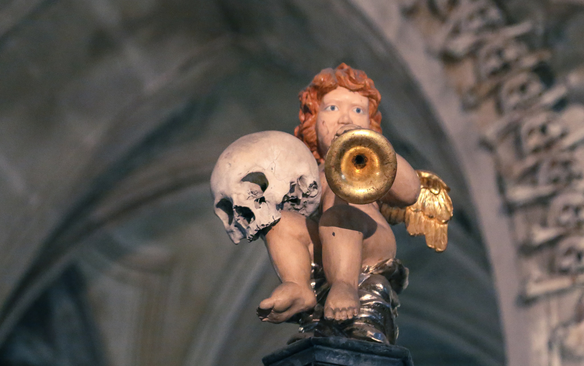 Прозвучит, быть может, странно, однако этот собор, пускай и косвенно, тоже связан с темой смерти. Женщина, которой он посвящен, Варвара — великая, удивительная святая, ответственная за самый последний миг на земле, за то, чтобы человек не умирал внезапно, без покаяния. Она покровительствует всем, чье ежедневное существование связано с риском, потому горняки и посвятили свой собор святой Варваре. На протяжении веков в этом тихом городке как нигде знали цену каждому дню, его храмы и костница до сих пор напоминают — memento mori, carpe diem.