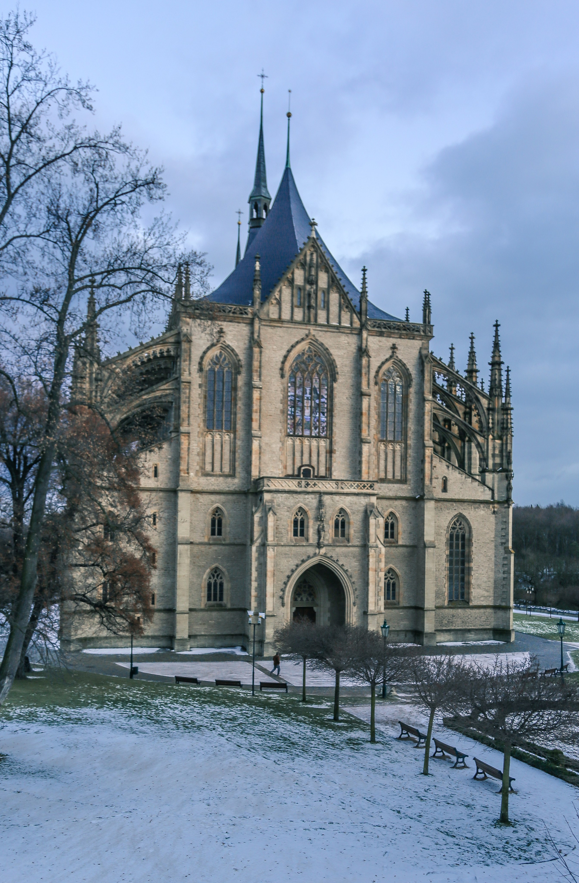 Хоть едут в Кутна-Гору в основном ради Костницы — пощекотать нервы, в нескольких километрах от нее, на другом конце города, есть нечто еще более значительное. Великолепный Собор Святой Варвары, может, и не поражает воображение так, как Вестминстерское аббатство или Реймсский гигант, однако, всё в нем необычайно хорошо и как-то… человечно. Вдохновленный, несомненно, французской архитектурой (все эти изящные пинакли, контрфорсы и аркбутаны), он относится к самым необычным готическим строениям Европы. Даже причина его возведения уникальна — богатые бюргеры затеяли строительство собора в пику своим соседям-монахам. Первым проектировщиком, кстати, являлся Ян Парлерж — сын строителя пражского собора Святого Вита Петра Парлержа. Интерьер тоже необычен, например, соборные фрески изображают не только библейские сцены, но и сюжеты из жизни горняков. По тем временам это было нарушение всех мыслимых канонов, зато — с какой любовью сделано! Людьми для людей.