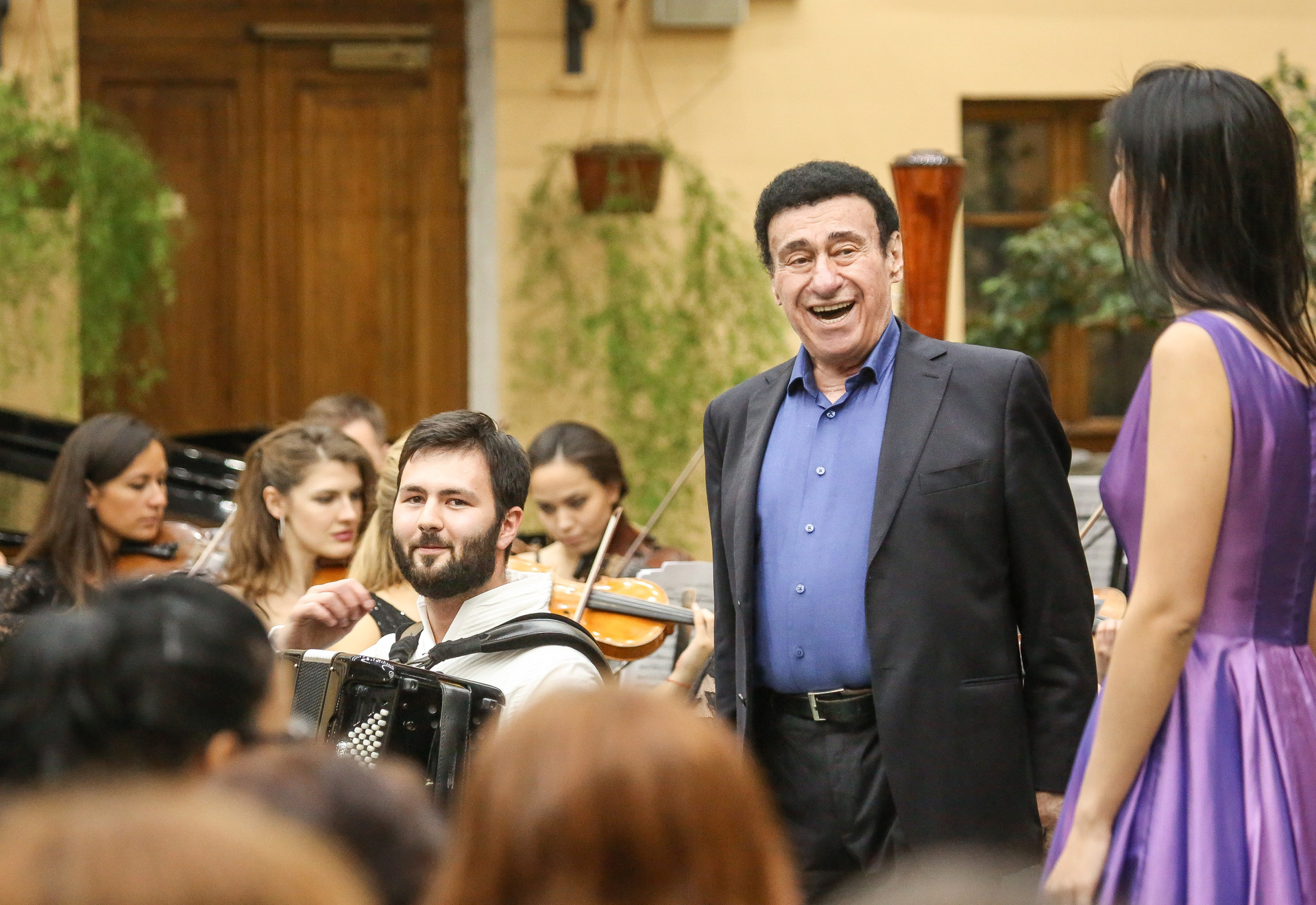 А у публики, меж тем, тоже был свой любимец, заявленный на афише как специальный гость, которого все с трепетом ждали — легендарный Зураб Соткилава. В 2014-м году Зураб Лаврентьевич уже участвовал в качестве guest star во Втором фестивале имени Мансурова, тогда он просто спел несколько неаполитанских песен под рояль, а в нынешний раз выступил уже с оркестром, исполнив со своей студенткой Александрой Сенниковой дуэт из сарсуэлы «Дикий кот» Пенеллы и «На качелях» Денца, а также сольно «Мне не забыть тебя» Эрнесто Куртиса. В таком же репертуаре (и кстати, с тем же дирижером — Василием Валитовым) я слушала Зураба Лаврентьевича в БЗК в конце января, и тогда было абсолютное ощущение, словно у него открылось «второе вокальное дыхание» — настолько исключительно все звучало, на сей же раз этого «ах!» не случилось, впрочем, зрители все равно принимали его с величайшим восторгом, и их, естественно, можно понять!