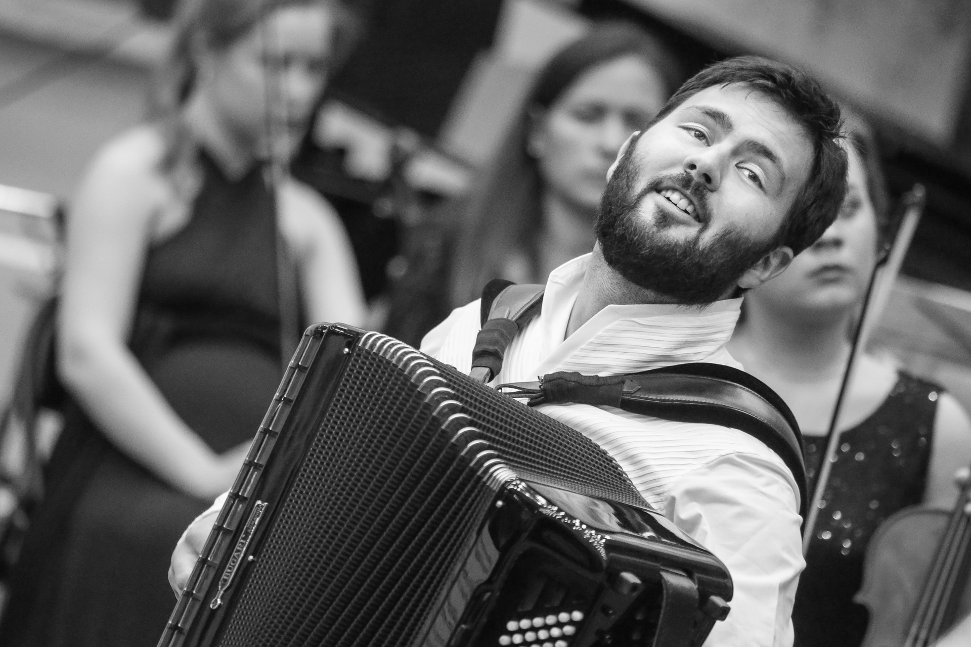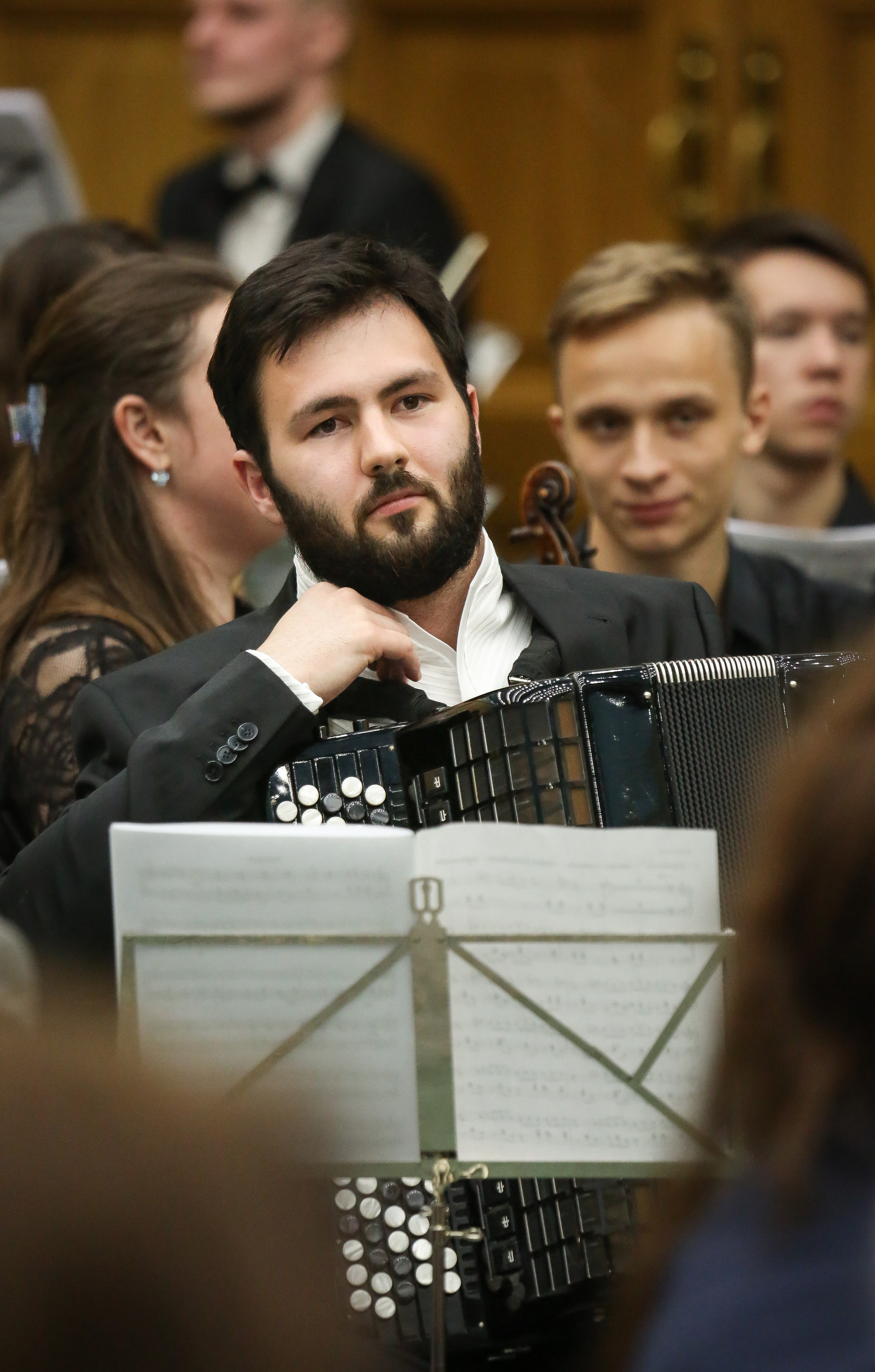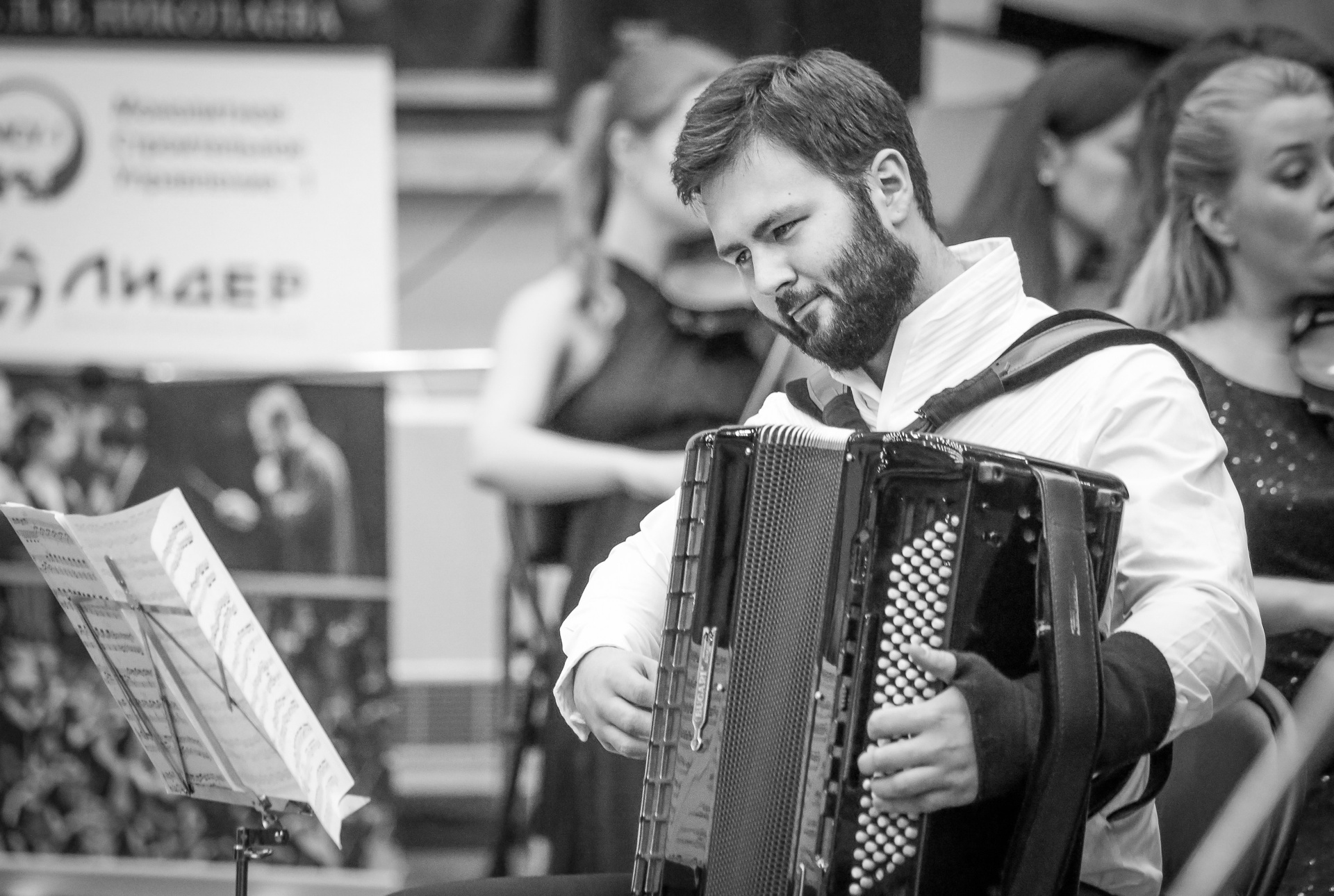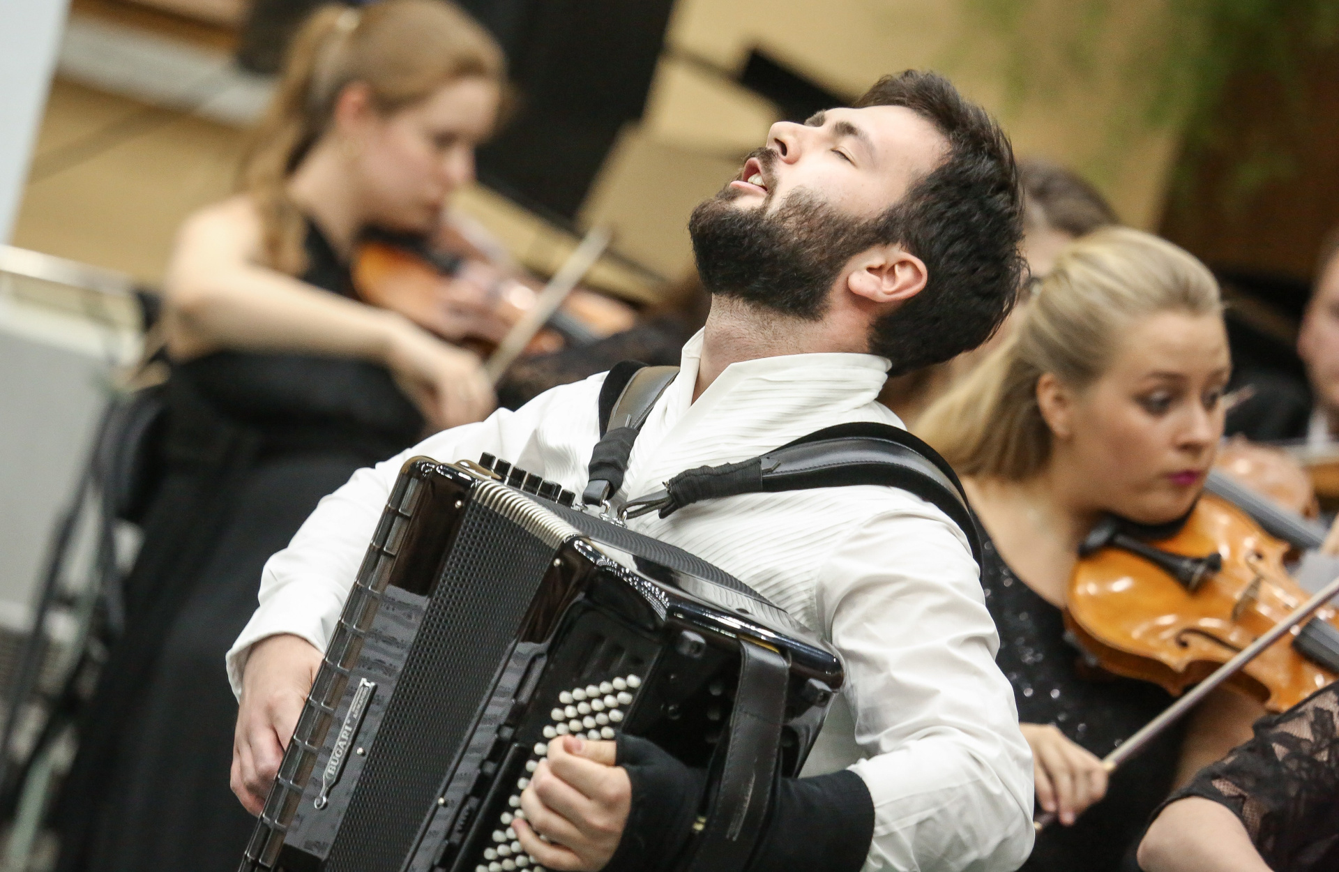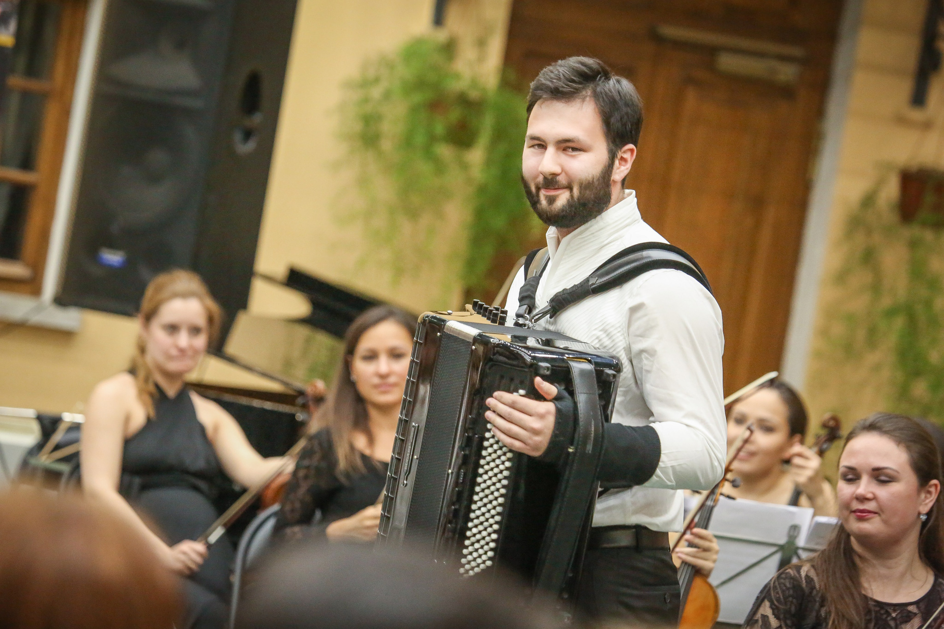 Рассказ о своих фаворитах, как вы понимаете, я оставила напоследок. Самая юная участница — кларнетистка Александра Вощикова из Казани была восхитительна, без всяких скидок и поблажек. И дело вовсе не в возрасте, а в мастерстве, с которым она сделала транскрипцию «Шехеразады» Римского-Корсакова. А еще в ее честном и чистом удовольствии не от себя на сцене, а от музыки — качество, за которое я также сильно полюбила выступавшего в финальной части концерта сербского аккордеониста Николу Джорика. Оркестранты и некоторые зрители, правда, недоумевали, почему же его представляют как аккордеониста, если играет он на баяне. С нашей, русской точки зрения это действительно так, но формально говоря (да и в соответствии со сложившейся в Европе практикой) его инструмент все равно называется аккордеоном — только кнопочным хроматическим, подвидом которого является баян. Хотя не термины тут имеют значение, а то, что переложение ре-минорного концерта Баха для клавира с оркестром в его руках обрело некий необычный, будто бы органный призвук — никогда бы не подумала, что барочную музыку так можно исполнять на аккордеоне! Кажется, этот инструмент всерьез недооценен. Хотя, с другой стороны, не всякий в состоянии играть, как Никола.