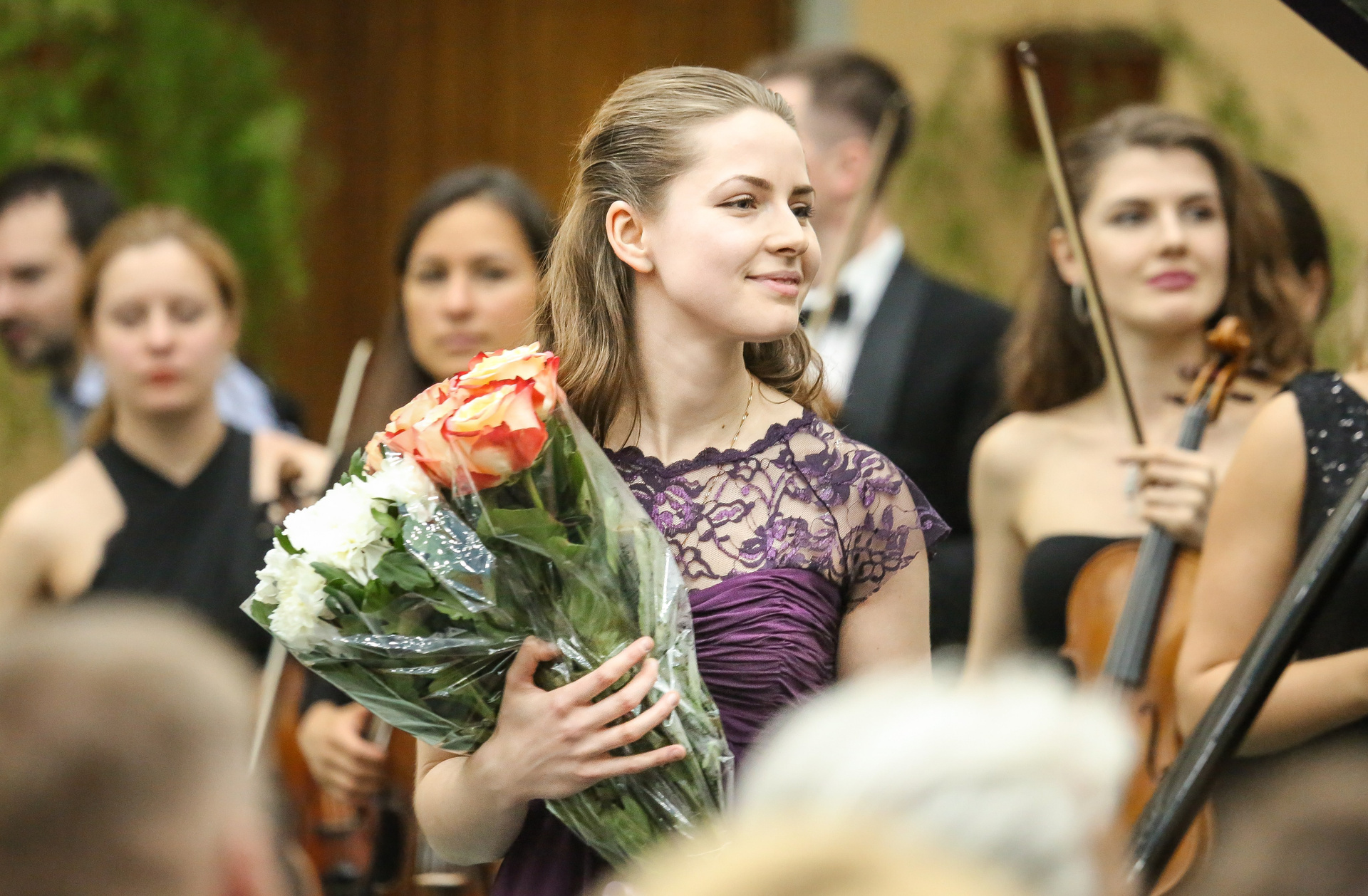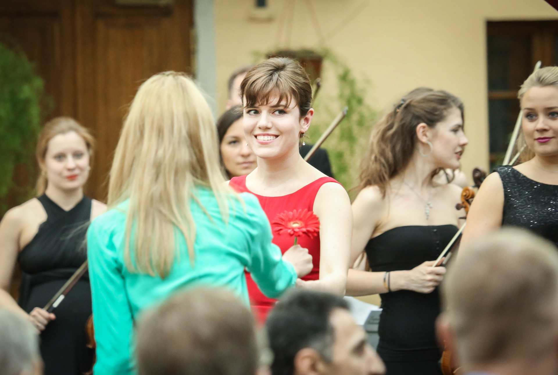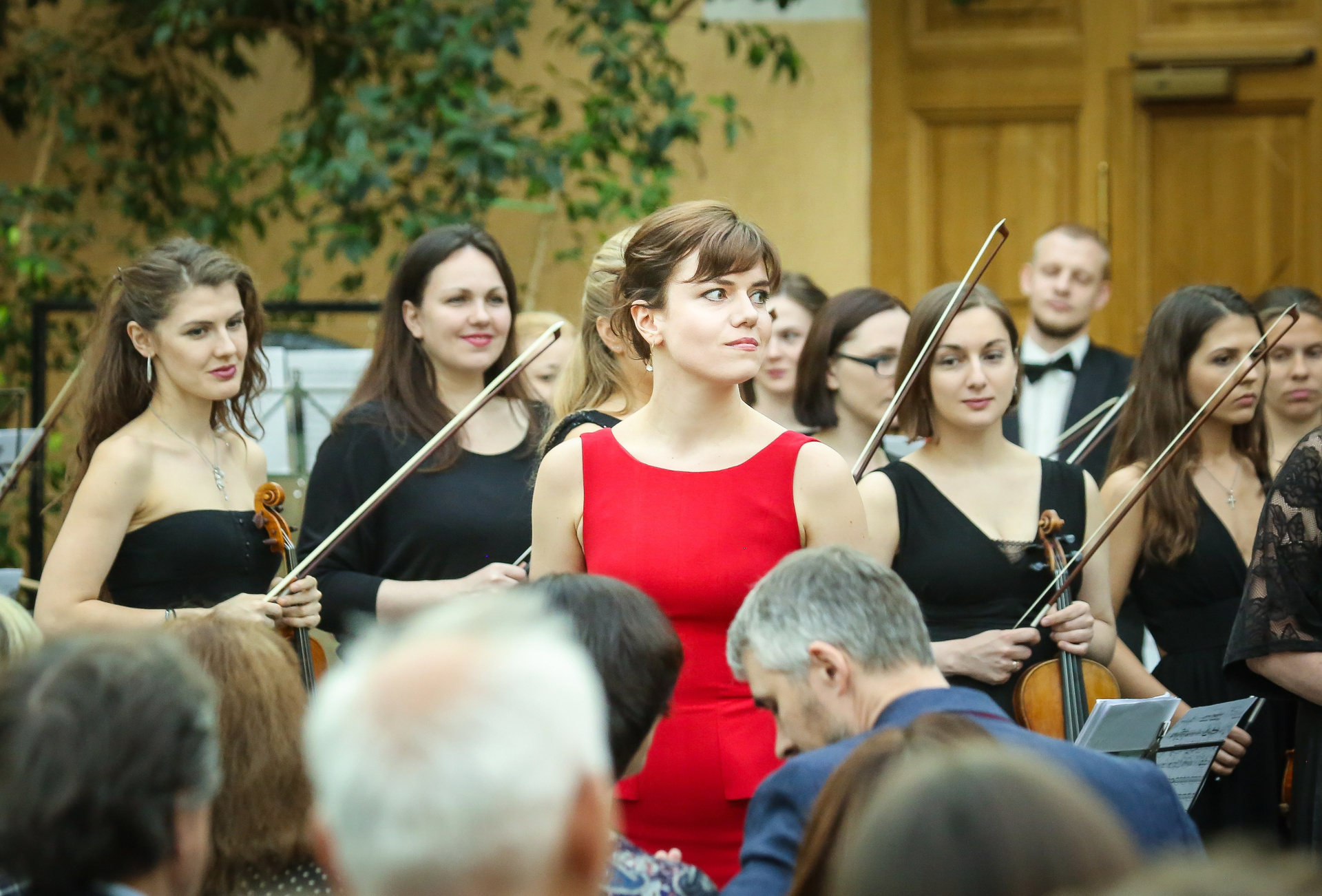 И можно через стеклянный потолок любоваться закатным небом с облаками в золотой дымке под музыку Бетховена и Листа. Это, наверное, как раз одно из чудеснейших воспоминаний о том вечере: сперва вторая и третья части Пятого фортепианного концерта Бетховена в исполнении украинской пианистки Елены Дмитриевой (она замечательно подчеркнула привычные бетховенские контрасты — нежное, медитативное адажио и величественное рондо), а затем сразу выступление московской пианистки Ларисы Бунаковой с необыкновенным Первым концертом Листа. Конечно, в нашем двадцать первом веке он, вероятно, уже не кажется чем-то из ряда вон выходящим, но для 19-го столетия великая листовская фортепианная философия была прорывом — воплощение идеи равнозначности оркестра и солиста, использование всех регистров, всех возможностей инструмента, разнообразных оттенков и звуковых эффектов… И дело еще в том, что два эти концерта (кстати, оба в ми-бемоль мажоре) органично связаны между собой: Ференц в своей работе вдохновлялся образами бетховенского «Императора», так что услышать их в программе одно за другим это большой подарок!