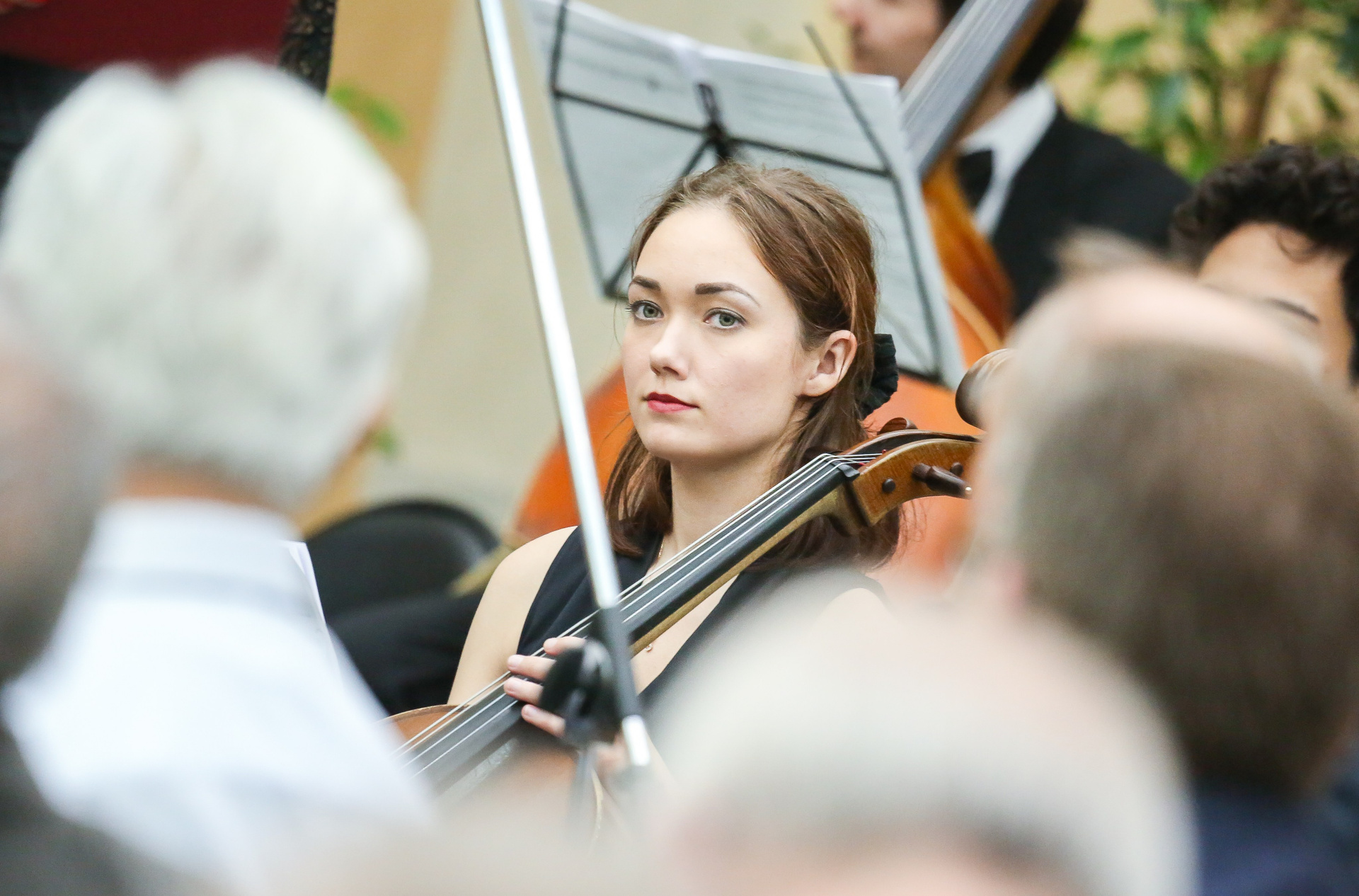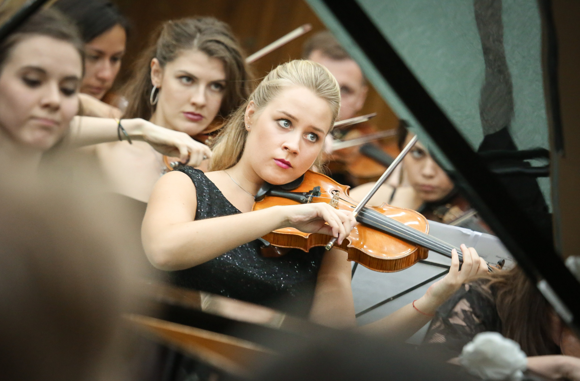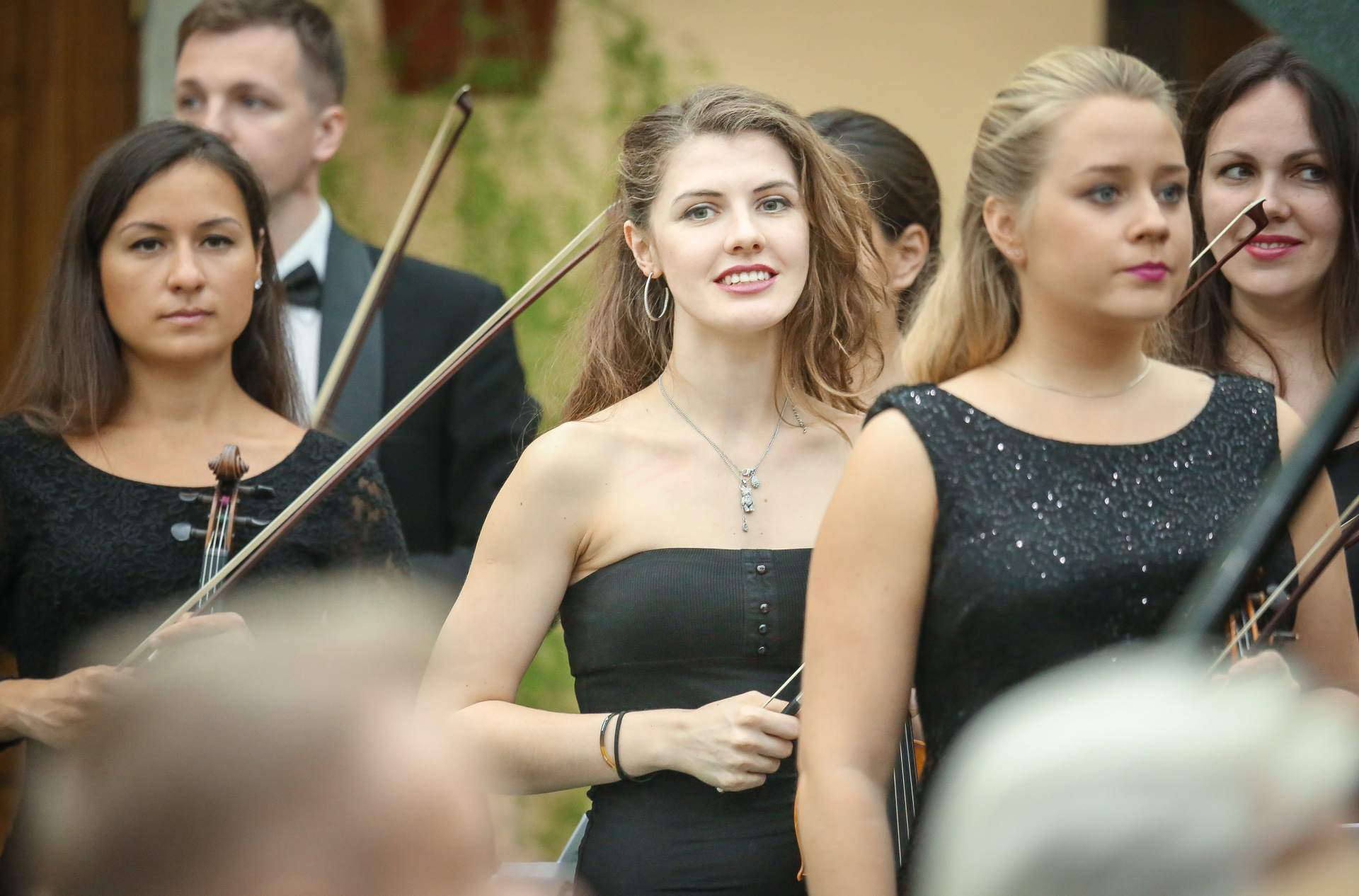 И можно через стеклянный потолок любоваться закатным небом с облаками в золотой дымке под музыку Бетховена и Листа. Это, наверное, как раз одно из чудеснейших воспоминаний о том вечере: сперва вторая и третья части Пятого фортепианного концерта Бетховена в исполнении украинской пианистки Елены Дмитриевой (она замечательно подчеркнула привычные бетховенские контрасты — нежное, медитативное адажио и величественное рондо), а затем сразу выступление московской пианистки Ларисы Бунаковой с необыкновенным Первым концертом Листа. Конечно, в нашем двадцать первом веке он, вероятно, уже не кажется чем-то из ряда вон выходящим, но для 19-го столетия великая листовская фортепианная философия была прорывом — воплощение идеи равнозначности оркестра и солиста, использование всех регистров, всех возможностей инструмента, разнообразных оттенков и звуковых эффектов… И дело еще в том, что два эти концерта (кстати, оба в ми-бемоль мажоре) органично связаны между собой: Ференц в своей работе вдохновлялся образами бетховенского «Императора», так что услышать их в программе одно за другим это большой подарок!
