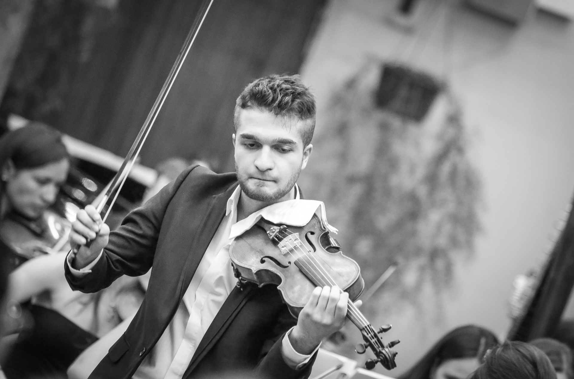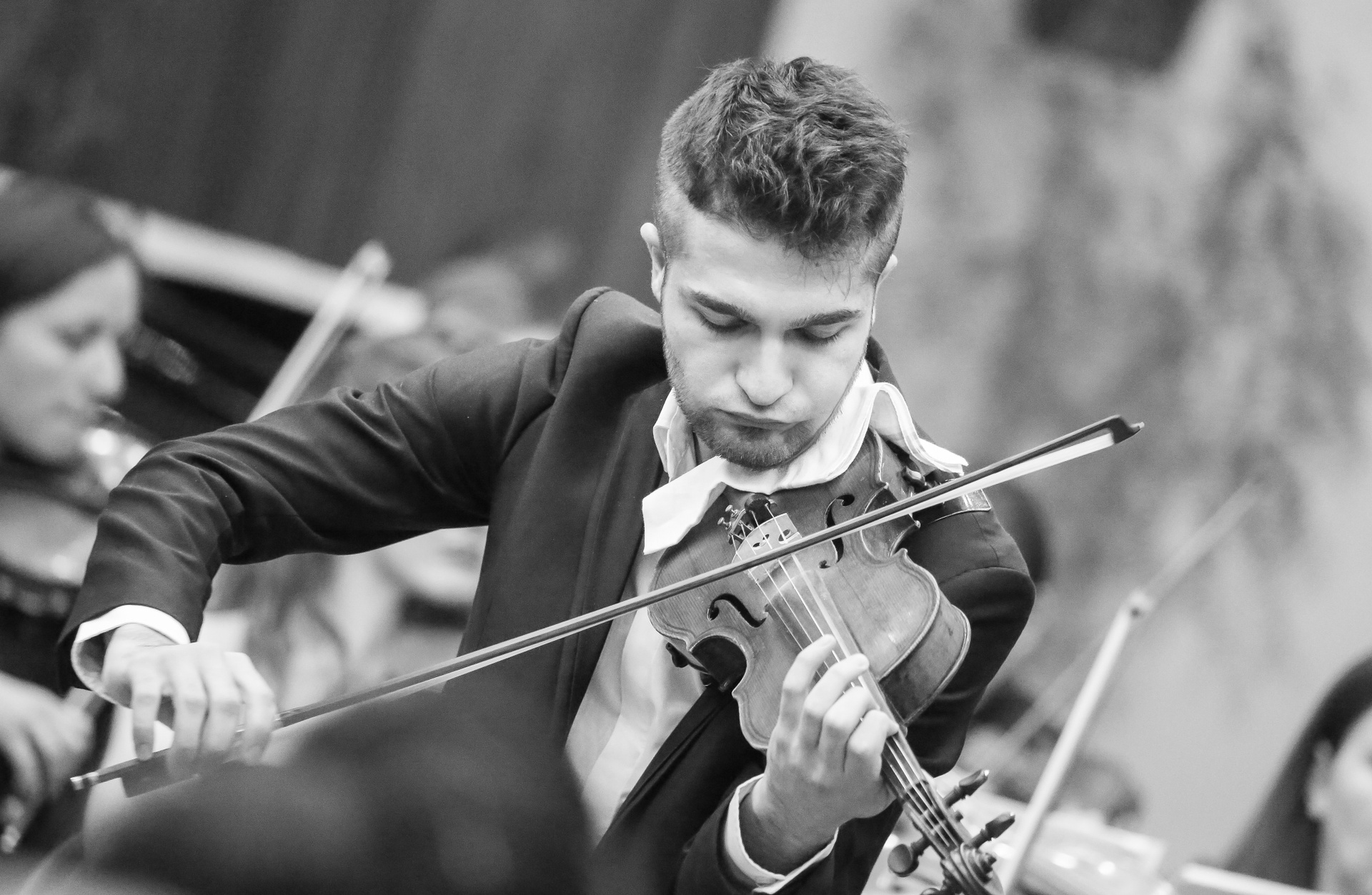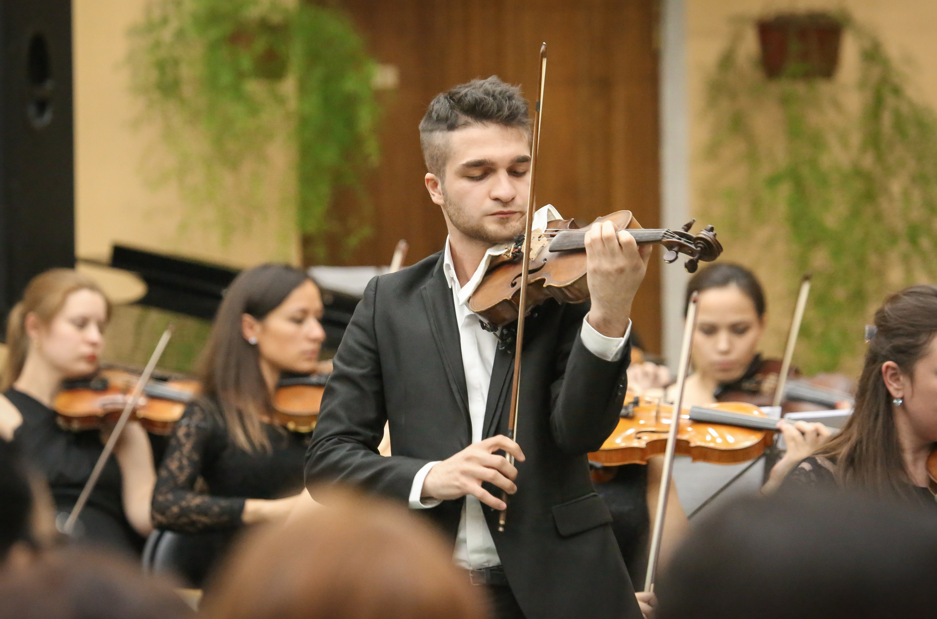 Если первое отделение фестиваля, как вы понимаете, являло собой царство пианизма, то второе было преимущественно посвящено скрипичной музыке. Арутюн Пилоян (Армения) и Ахмед Наврузов (Азербайджан) избрали для своих выступлений известнейшие, программные произведения, соответственно, Фантазию Венявского на темы «Фауста» и первую часть скрипичного концерта Мендельсона. В 19 веке многие виртуозы баловались тем, что сочиняли парафразы на популярные оперные мелодии, и Генрик Венявский тут не был исключением: в своей фантазии для скрипки он развил знаменитые темы оперы Гуно — арию Фауста под окнами Маргариты, дьявольские куплеты Мефистофеля и шикарный вальс, венчающий композицию, что требует от исполнителя всей возможной искусности, которую Арутюн с лихвой продемонстрировал. Мендельсон же отдавал предпочтение фортепиано, и его скрипичное наследие в принципе невелико, зато он сумел создать одно из прекраснейших произведений для данного инструмента, что у Ахмеда прозвучало, быть может, не так технично, как Фантазия Венявского у его коллеги, зато чрезвычайно страстно и взволнованно.
