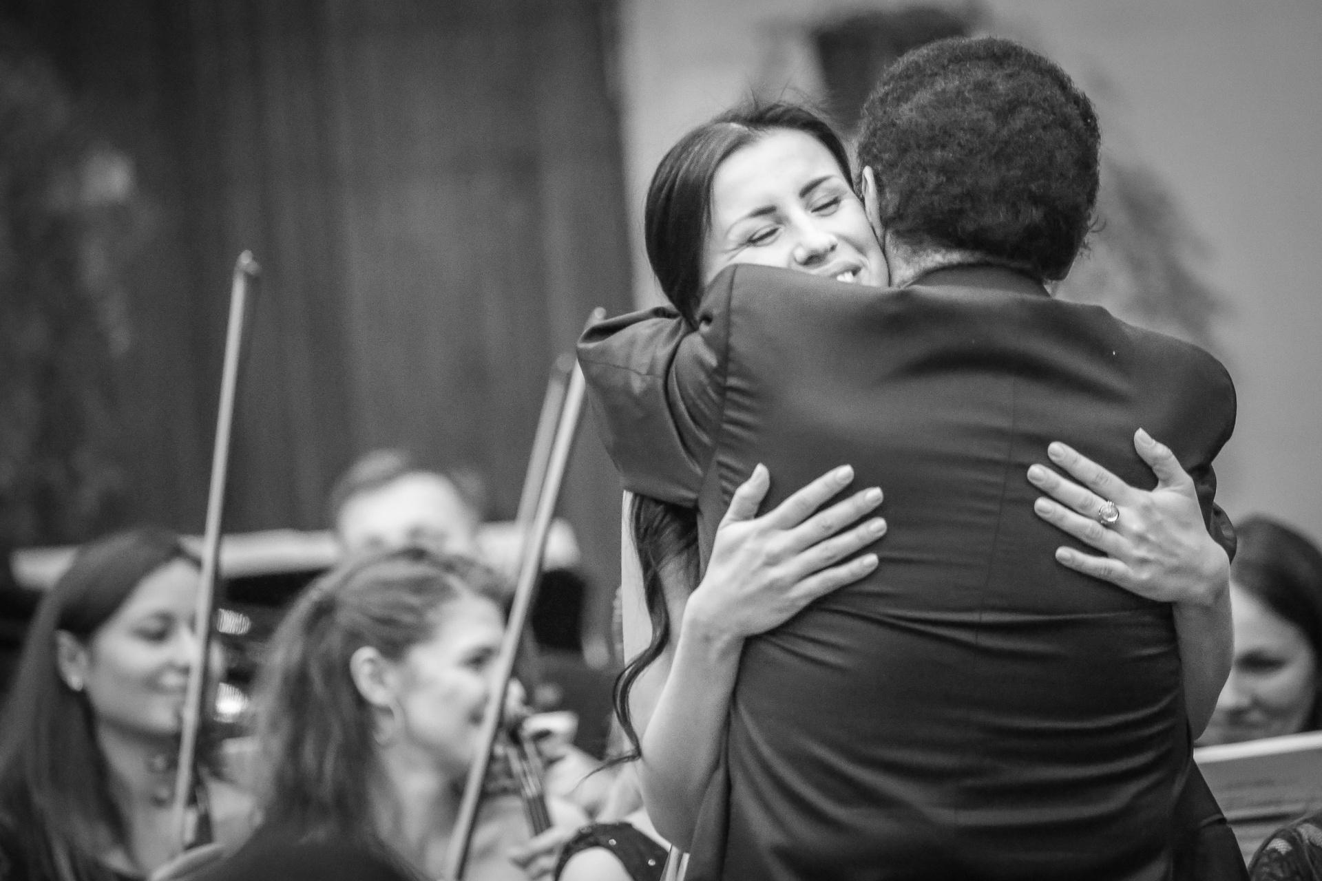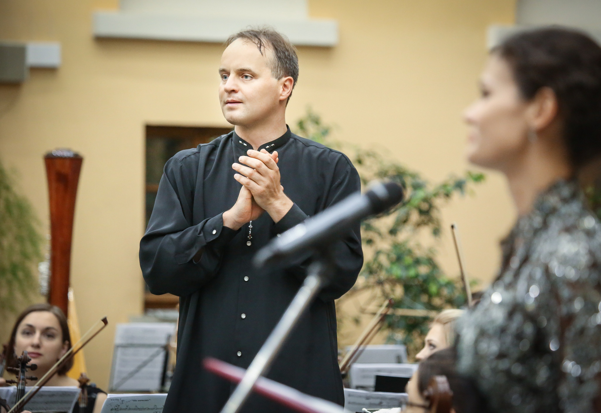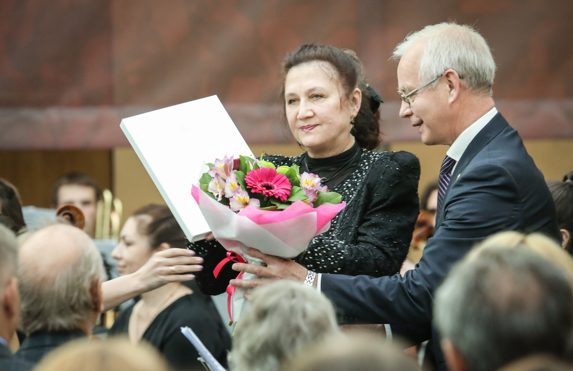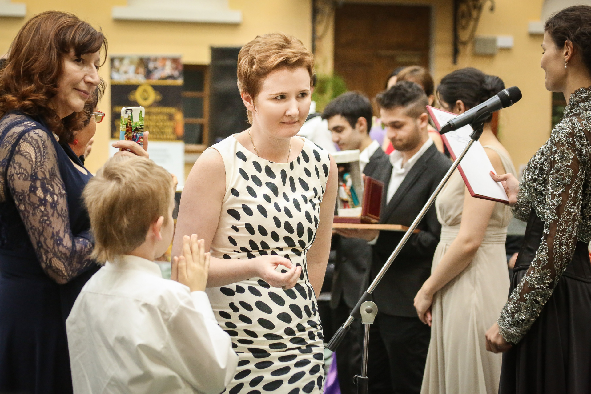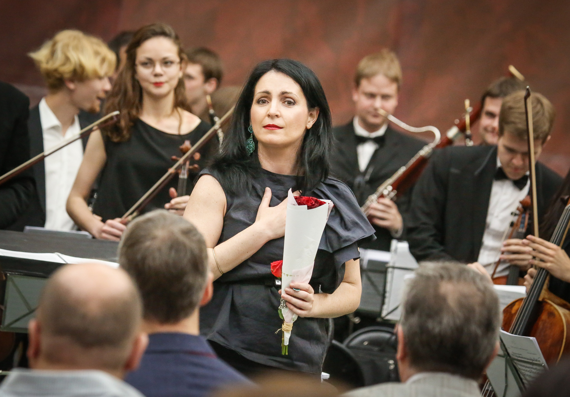 И было бы чрезвычайно несправедливо, упомянув всех солистов, не сказать об оркестре и замечательных дирижерах, а их, как и на прошлом фестивале, было двое — вместе с Василием Валитовым концертную программу вновь разделила прекрасная Анна Гулишамбарова. С ней, к слову, связан интересный эпизод, который на самом концерте я не заметила, но обнаружила во время обработки фотографий — оказывается, во время исполнения произведений Шарифуллина Анна потеряла одну из своих серег, вот с такой самоотдачей, с таким неистовством она дирижировала. А Василий Валитов в принципе вынес на руках (в данном случае не только в переносном смысле) этот грандиозный музыкальный марафон, поскольку порой, мне кажется, легче исполнить симфонию, чем такое количество разрозненных номеров, а ему, тем не менее, всякий раз удается создать из них спаянное и цельное музыкальное действо. Более того, у него получилось объединить вокруг фестиваля огромное количество людей — не только коллег Мансурова, Полпредство Татарстана, спонсоров оркестра, но и всех неравнодушных ценителей и почитателей, причем из самых разных городов и стран… Каждый год почти во всех анонсах и рецензиях о «Талантах Содружества» повторяется протокольная фраза, что «в основу фестиваля легла географическая широта творческих связей Фуата Мансурова». Мне она не слишком нравится, но должна признать: способность устанавливать творческие связи и расширять их, в том числе географически, это умение, вернее, чудесный талант, который Василий определенно перенял у своего учителя и которым может гордиться.