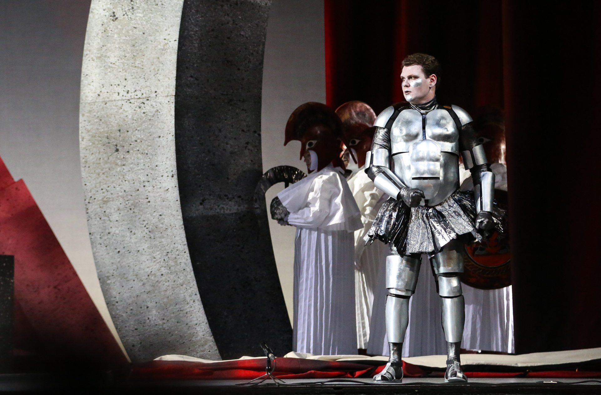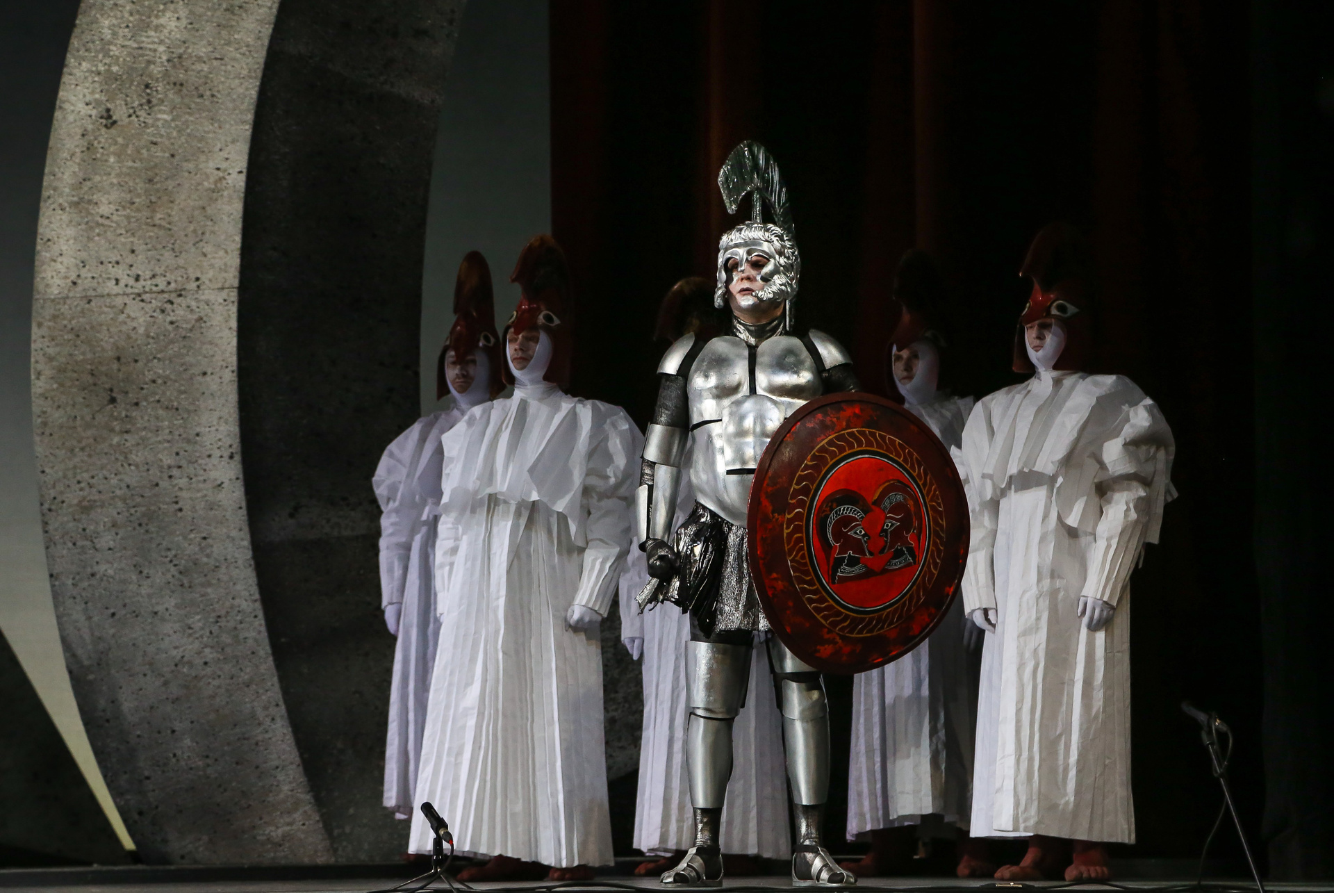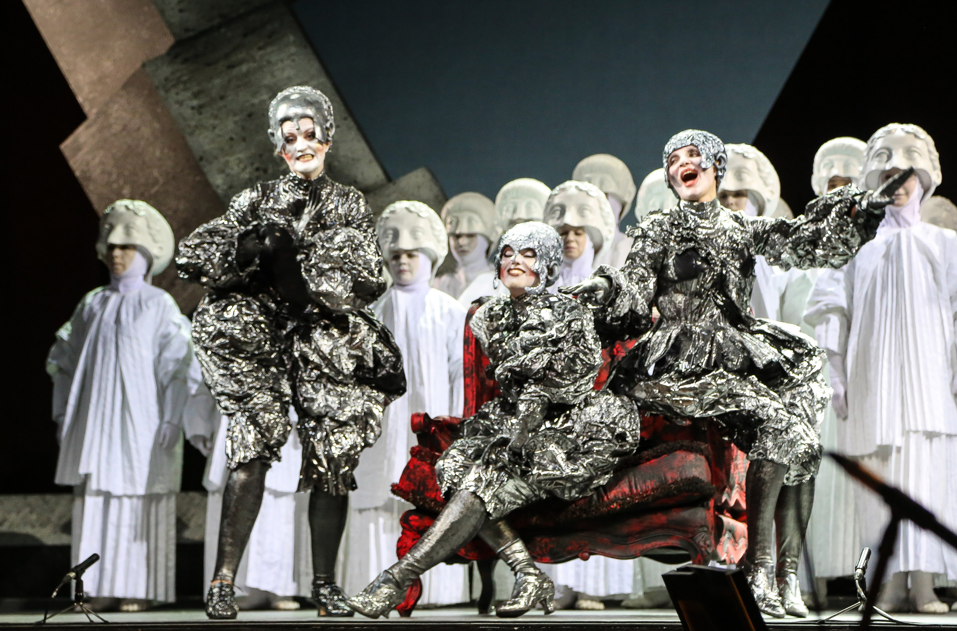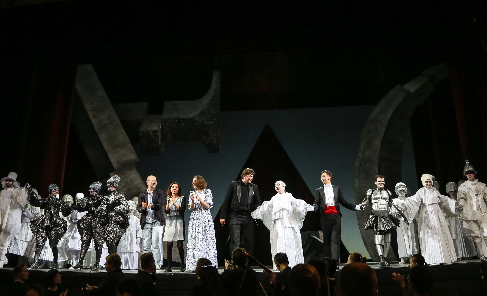 Надо сказать, актерский состав этой постановки — настоящий дрим-тим. В первую очередь речь, конечно, о безусловной звезде — Виктории Яровой, обладательнице редкого колоратурного меццо, чей голос в первой части действия в соответствии с образом звучал очень прозрачно, а в партии же Дидоны преобразился в драматически насыщенный и глубокий. Ее кульминационный заключительный монолог и знаменитая ламентация «When I Am Laid in Earth», переходящая в прекрасный финальный хор, поражали своей выразительностью и силой скорби. Противоположен ей по характеру голос Ирины Костиной — очень светлый и легкий, в котором привлекает потрясающая подвижность и красивое вибрато. Достойнейше справился с партией Энея Илья Кузьмин! Безусловно, «Новая опера» богата хорошими баритонами, но даже на таком фоне Илья выделяется своим звучным и плотным тембром, который уже сам по себе является услаждением для слуха. Трио же Колдуньи и двух ведьм в исполнении Валерии Пфистер, Елены Митраковой и Ирины Ромишевской хоть и не казалось таким уж устрашающим, но выглядело и звучало очаровательно.