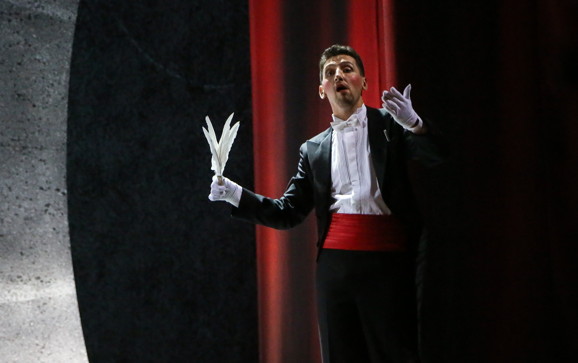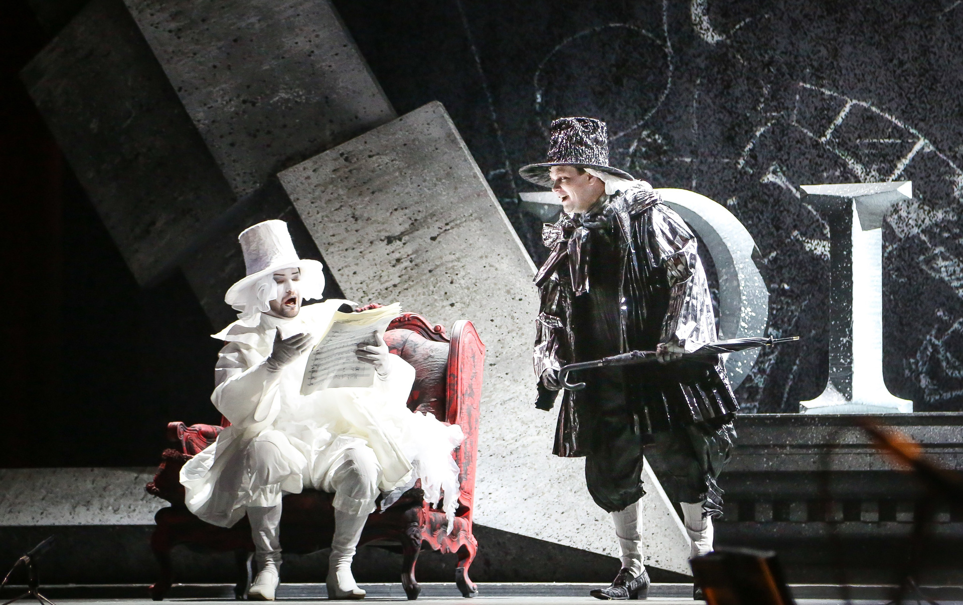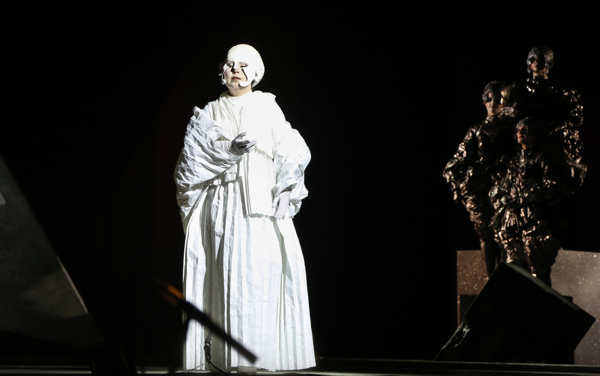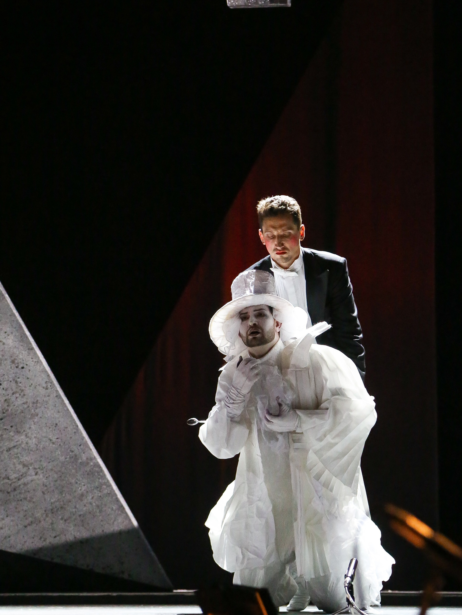 Отличная режиссерская находка — вставной номер в середине действия, ария Духа Холода (в оригинале — Гения Холода) из семи-оперы Пёрселла «Король Артур», которую активно включают в свой репертуар контратенора, хотя изначально она была написана для баса. Вот и в «DIDO», восстанавливая историческую справедливость, ее исключительно спел Евгений Ставинский — его стаккато в большой октаве звучало поистине леденяще!