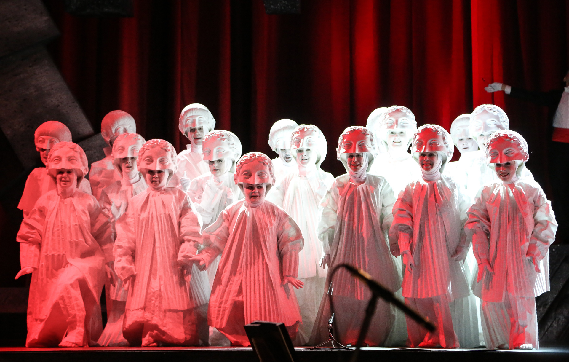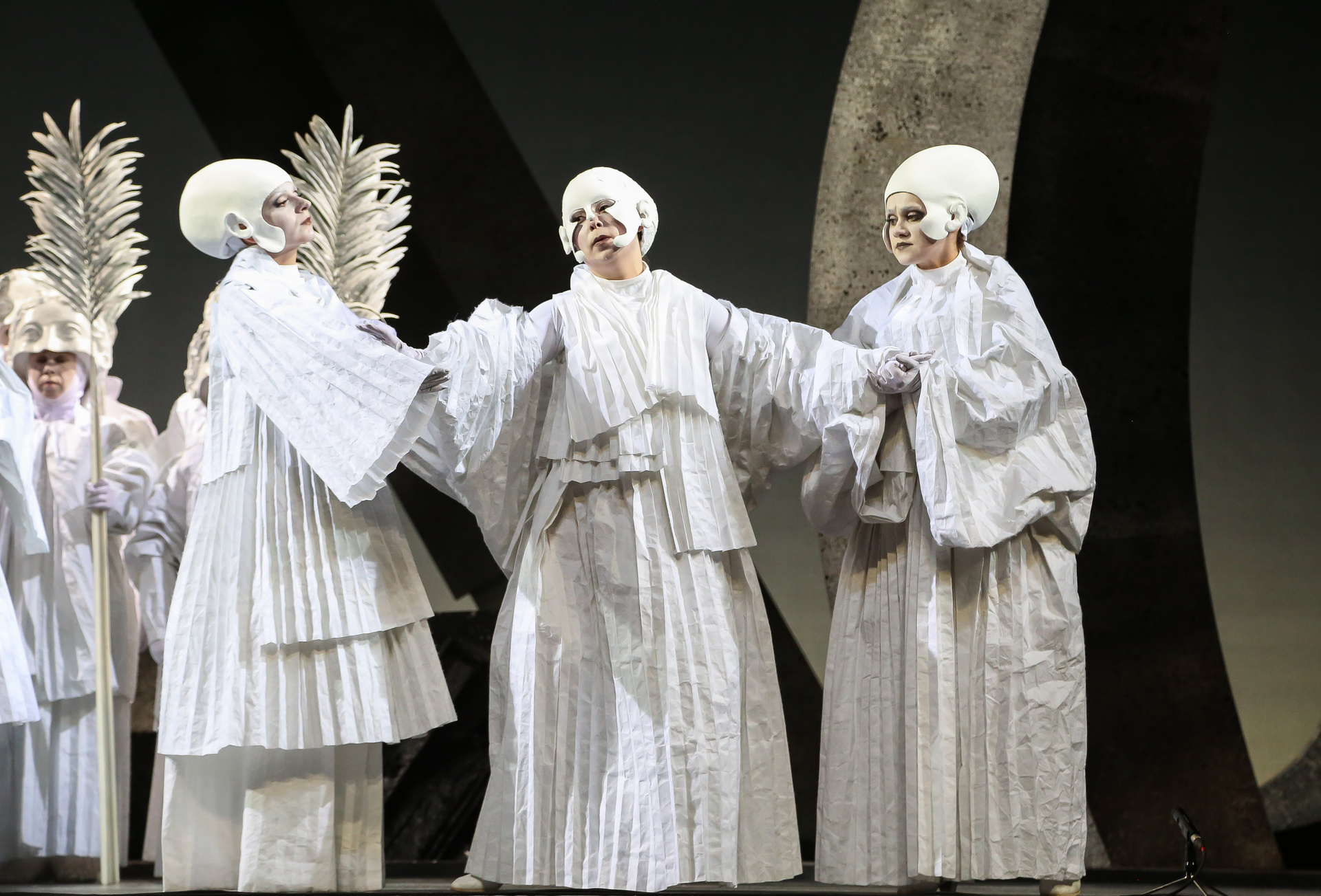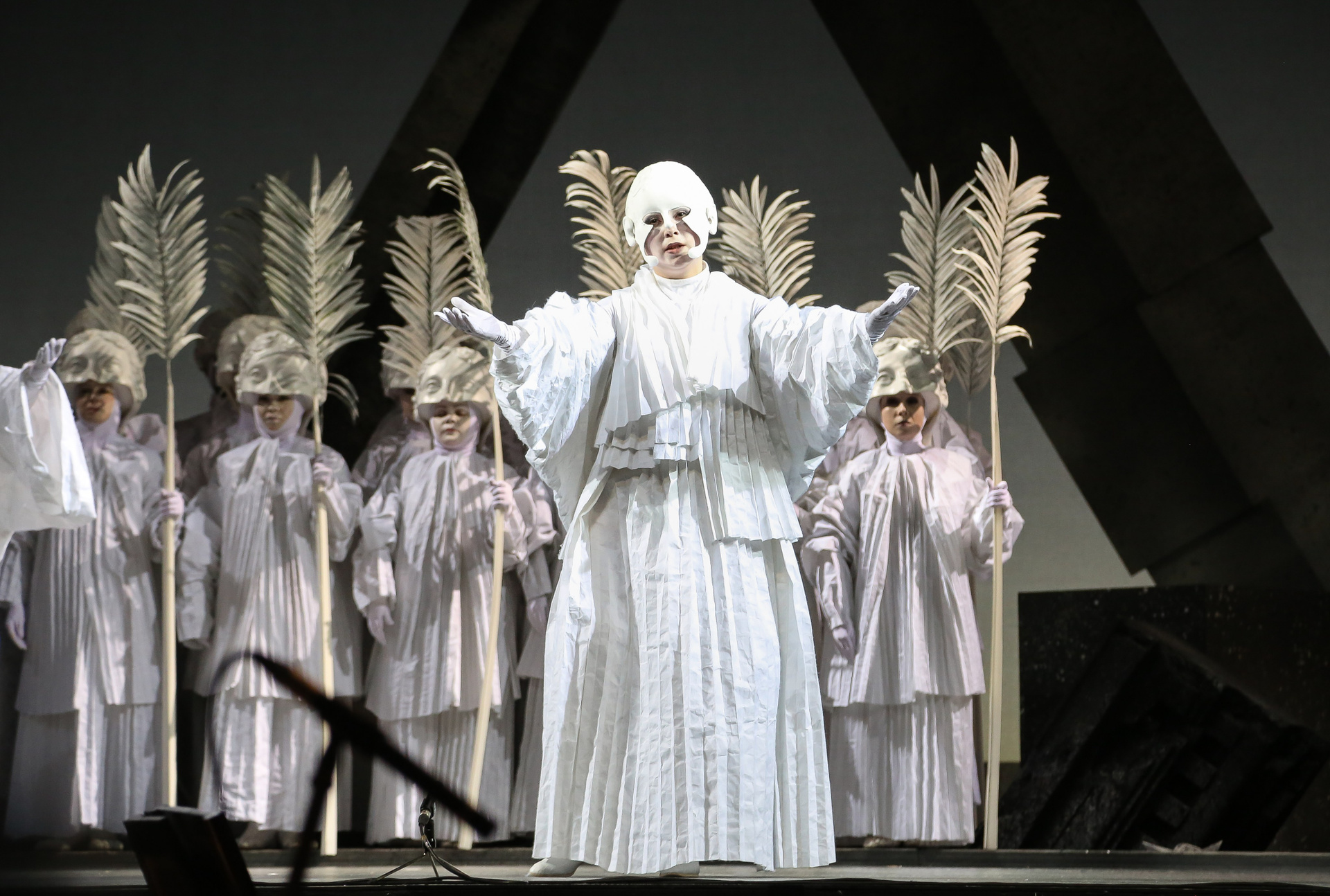 Своеобразным «связующим звеном» всех мизансцен, персонажем, который практически постоянно присутствует на сцене, является Дух, которого играет контратенор Владимир Магомадов. Он изнутри дирижирует происходящим (порой вполне буквально — с помощью чайной ложечки!), в каком-то смысле обеспечивая логичность драматического развития действия.