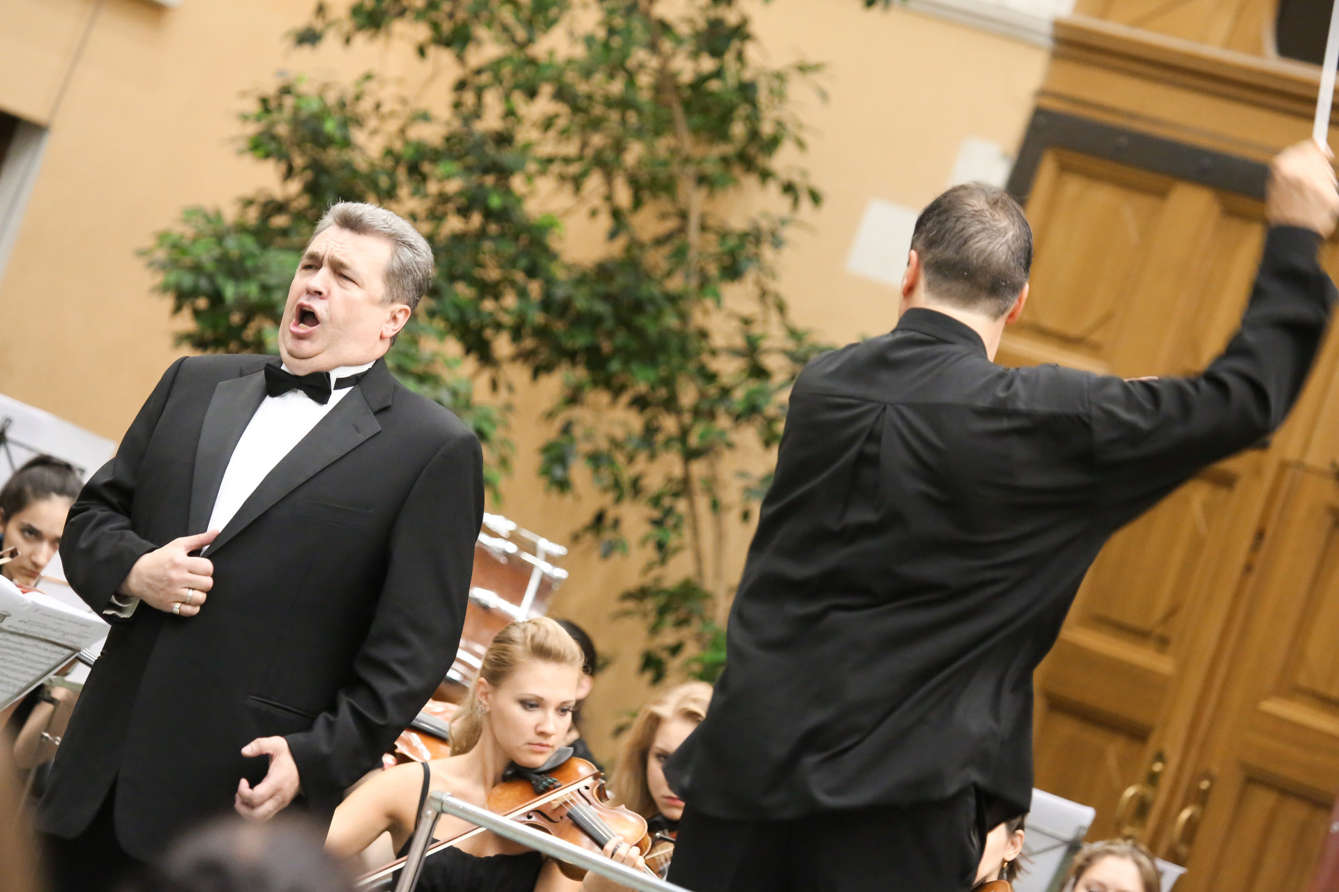 Своим участием поддержали фестиваль и оперные звезды — солисты Большого театра, некогда работавшие с маэстро Мансуровым, Зураб Соткилава, Олег Кулько и Елена Зеленская. Зураб Лаврентьевич, хоть и не репетировал с оркестром, но всё же решился выступить под аккомпанемент фортепиано, и в итоге пел больше всех — арию «Родриго» Массне, грузинскую и неаполитанские песни. Правда, как и в случае со многими вокалистами его возраста, было очевидно, что артист использует всевозможные приемы, чтобы сохранить голос… Верхние ноты берет криком, поет на связках, прокашливаясь в паузах. Тем не менее, публика принимала его очень тепло, в том числе и из уважения к его прошлым заслугам и вкладу в оперное искусство. Что касается Народного артиста Олега Кулько, мне всегда не очень нравилось, что в его исполнении из всех динамических оттенков планомерно преобладает «форте», как и в этот вечер в «Плаче Федерико» из «Арлезианки» Бизе и в Песенке Герцога из «Риголетто», хотя в целом это было сделано на довольно высоком уровне. И совершенно дивно выступила одна из ведущих солисток БТ — Елена Зеленская, драматически насыщенные партии Тоски и Аиды — это определенно ее репертуар, в котором она звучит очень впечатляюще.