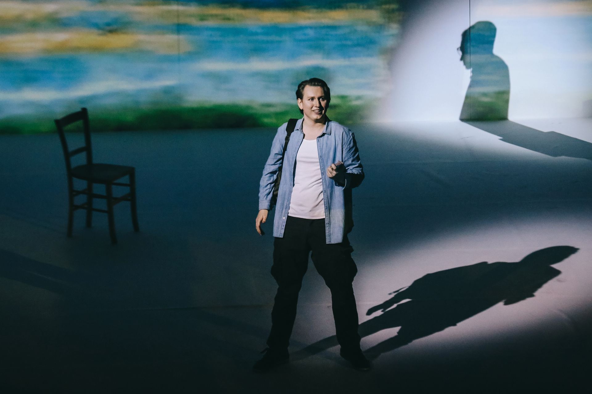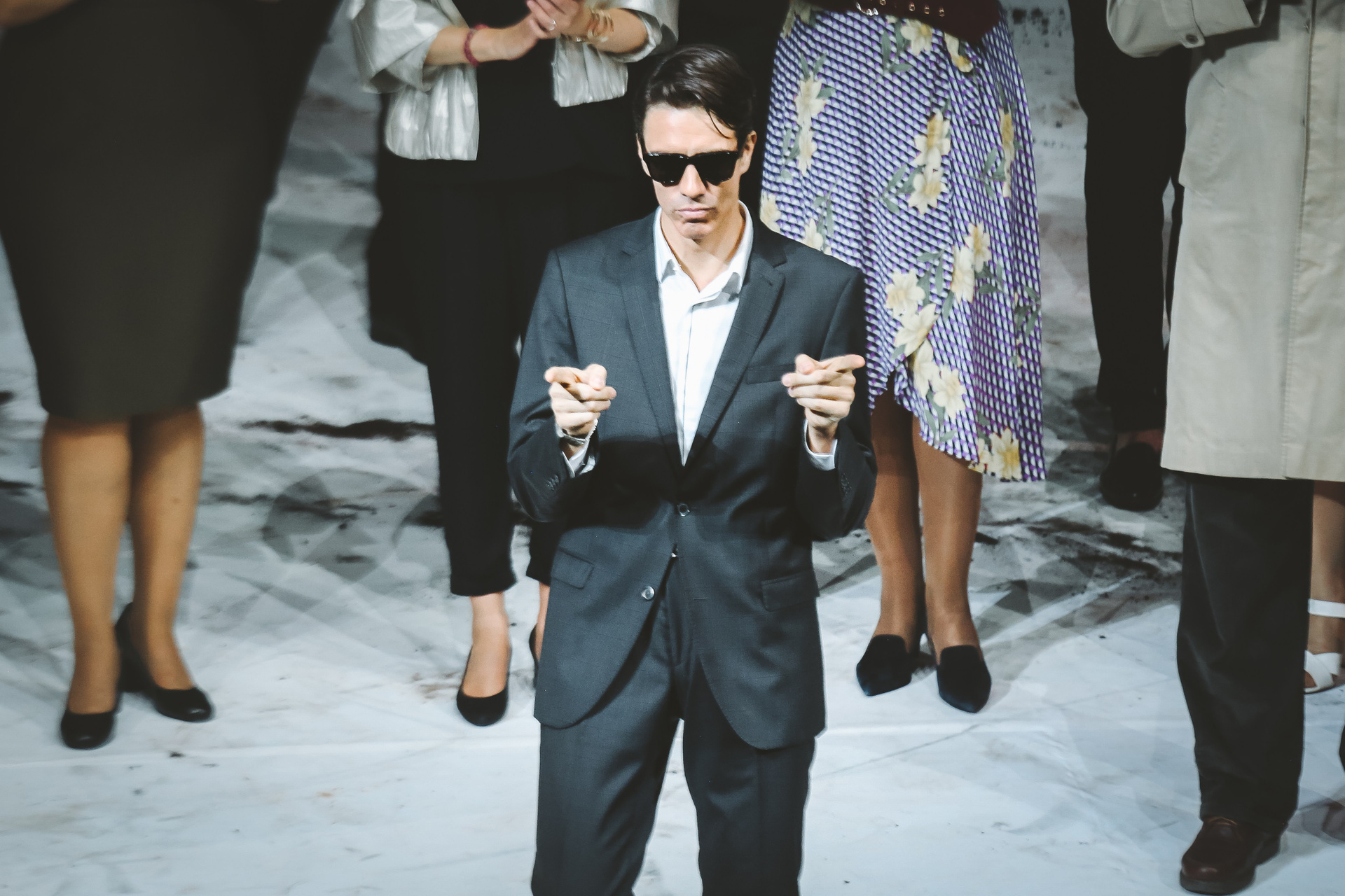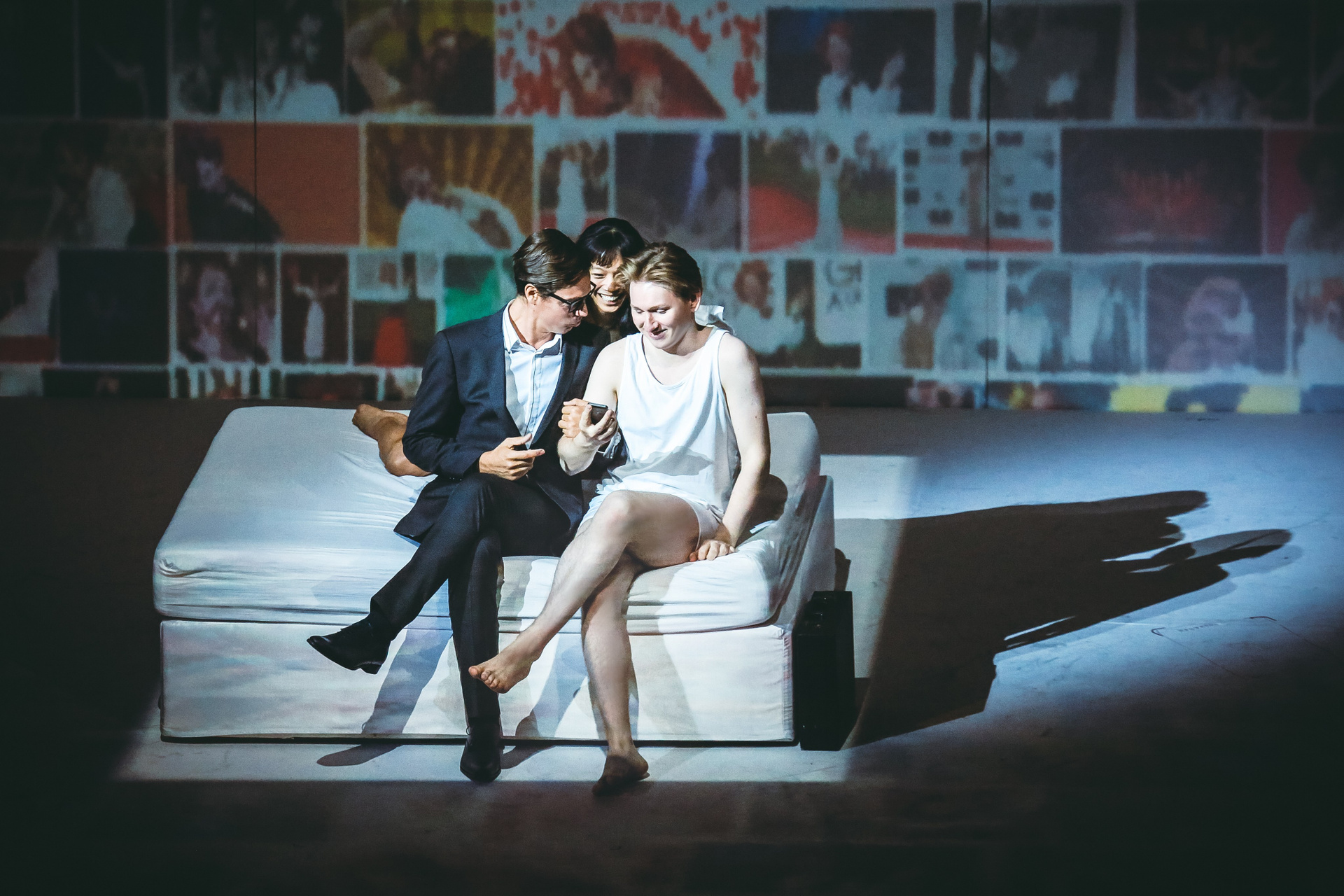 Проводя аналогии, Саймона Макберни можно назвать тогда постановщиком-иллюстратором — его «Похождения повесы» настоящая высокотехнологичная визуальная симфония (отдельные аплодисменты команде создателей: художник-постановщик — Майкл Левин, видео — Уилл Дюк, костюмы — Кристина Каннингем и свет — Пол Андерсон). Суммируя достижения предыдущих прочтений, Макберни проецирует их на сегодняшний день, когда бал правят прямые эфиры в Инстаграме, и рассказывает историю о человеке, поддавшемся искушениям медиареальности.