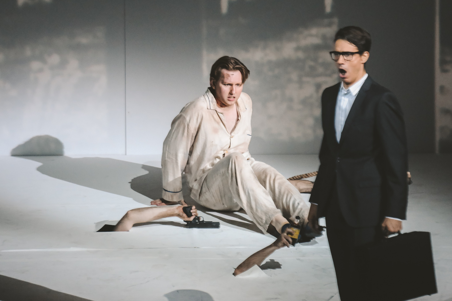 Впрочем, начинается действие в стерильно белом пространстве. Пустой бумажный куб, конечно же, многозначен — с одной стороны, это намек на новую точку отсчета (Стравинский писал «Повесу» в эпоху, когда мир только оправился от катастрофы глобальной войны и жаждал начать всё с чистого листа). Это же и символ пока что безгрешной души Тома Рейкуэлла — вполне себе аналог портрета Дориана Грея — отражающий моральное падение героя. С каждой сценой различные предметы и персонажи будут проделывать в бумажной реальности всё новые зияющие чернотой дыры и оставлять грязные следы, превращая ее в оскверненное пространство. Которое в финале Том будет пытаться отчистить и залатать — отчаянно и безуспешно.