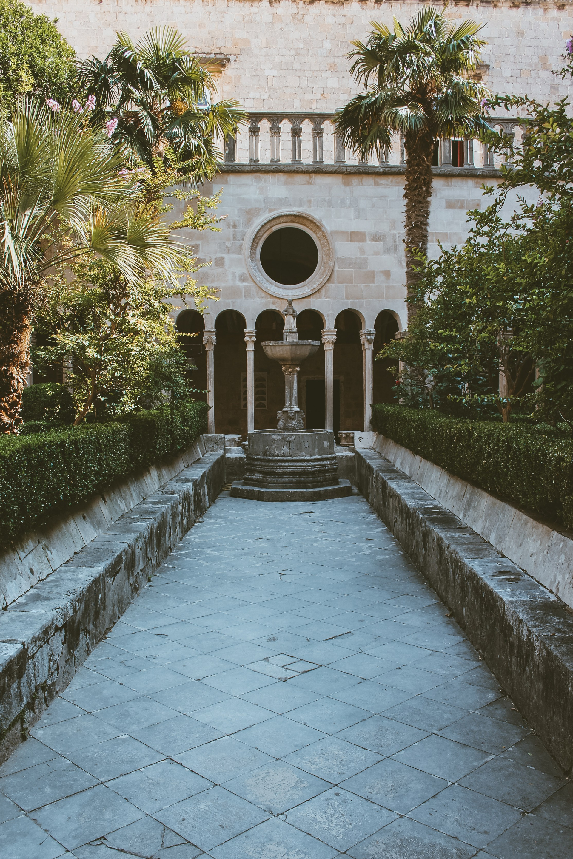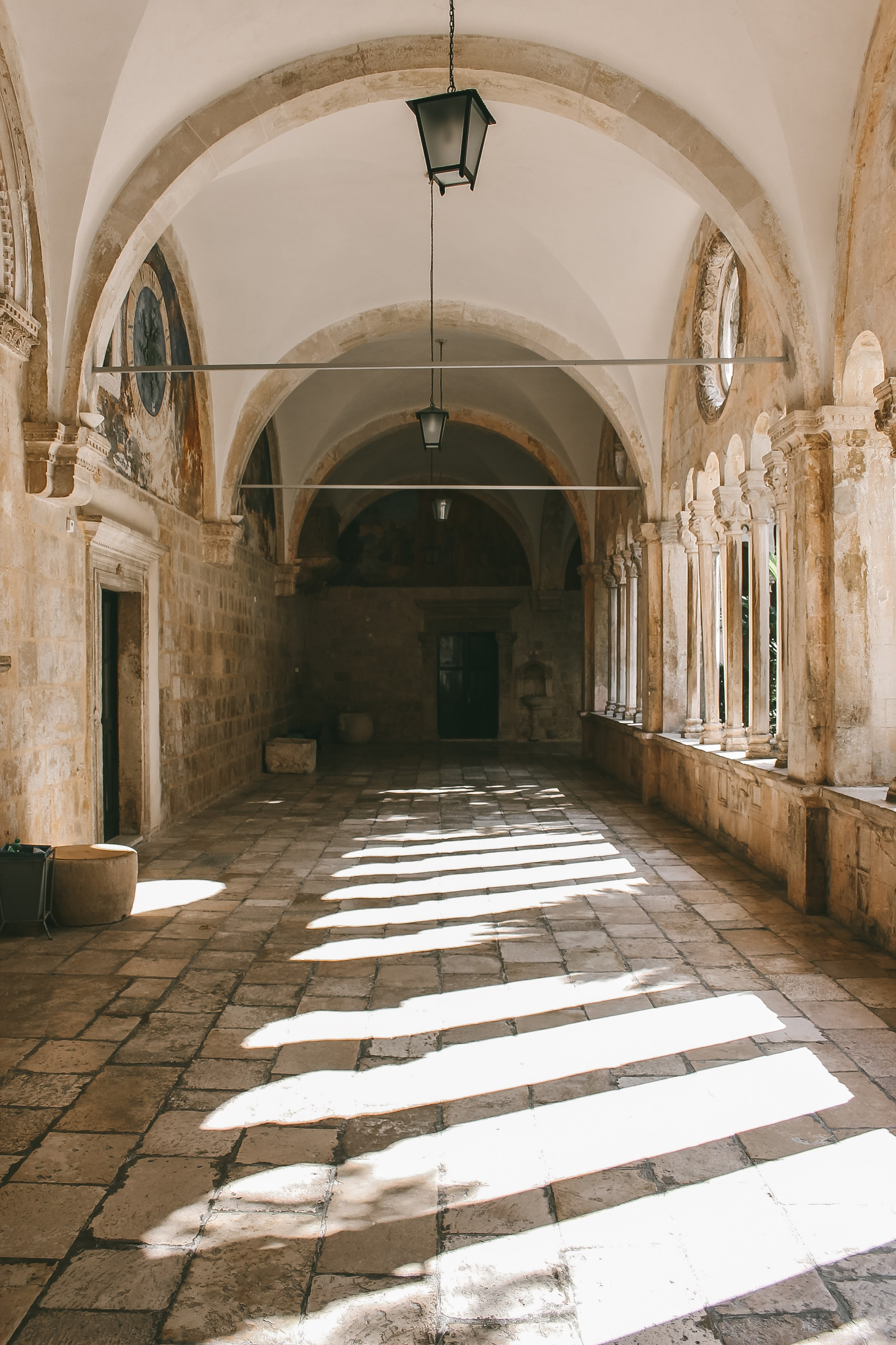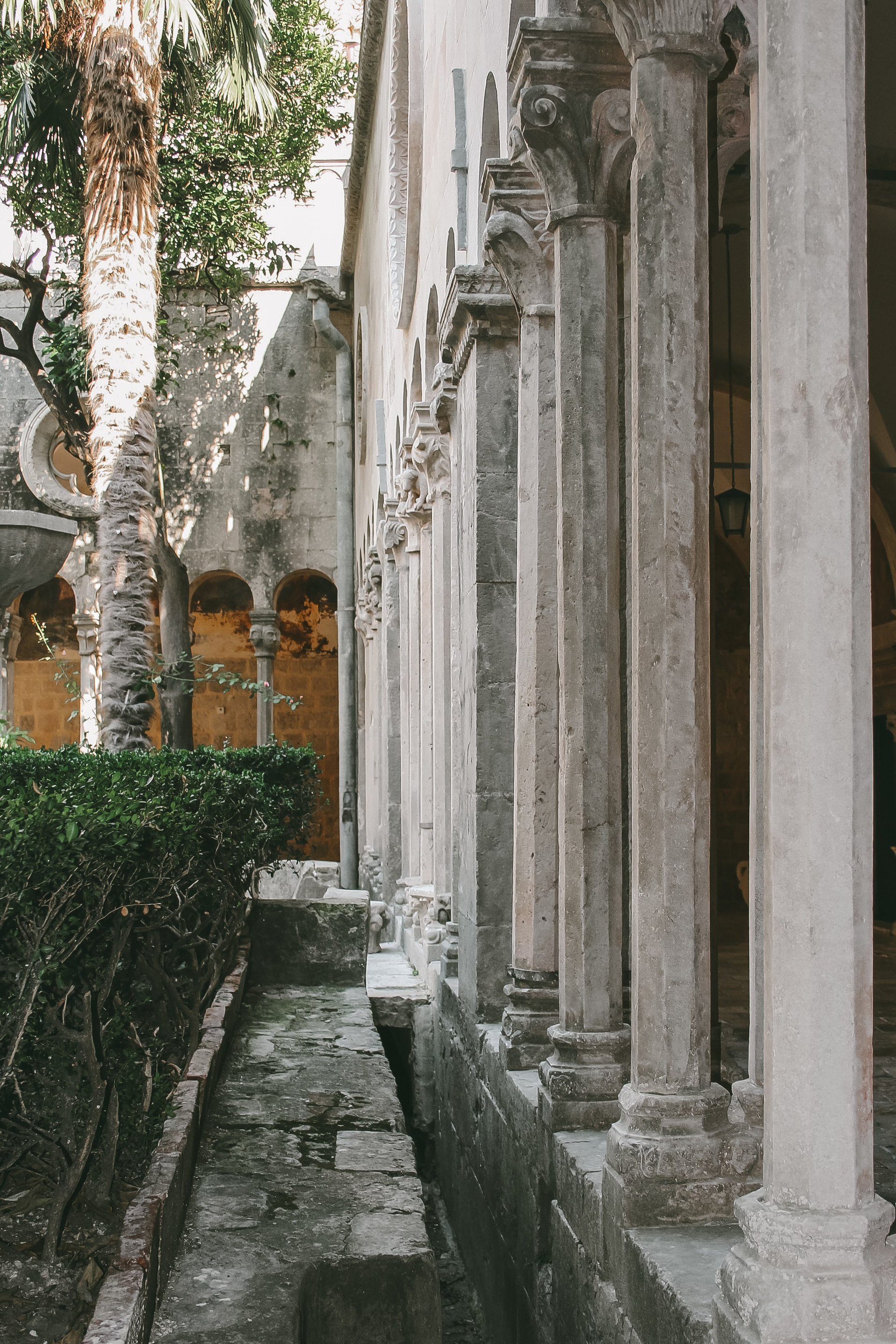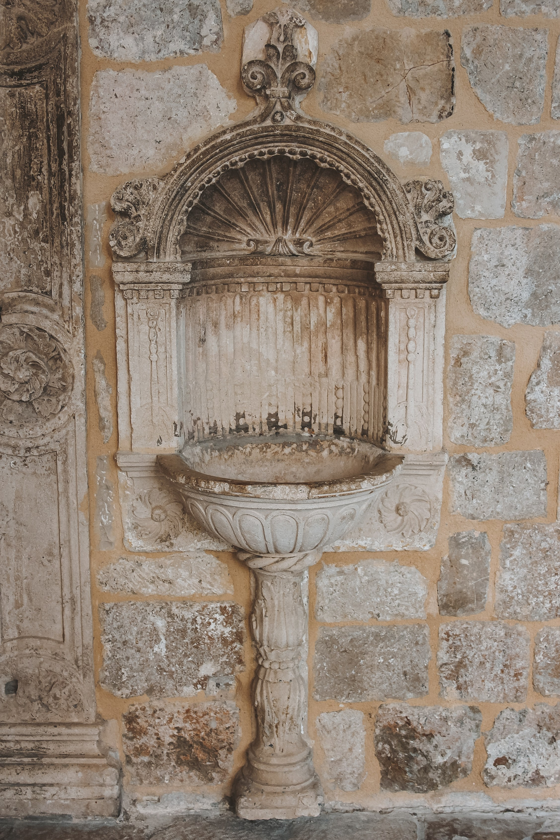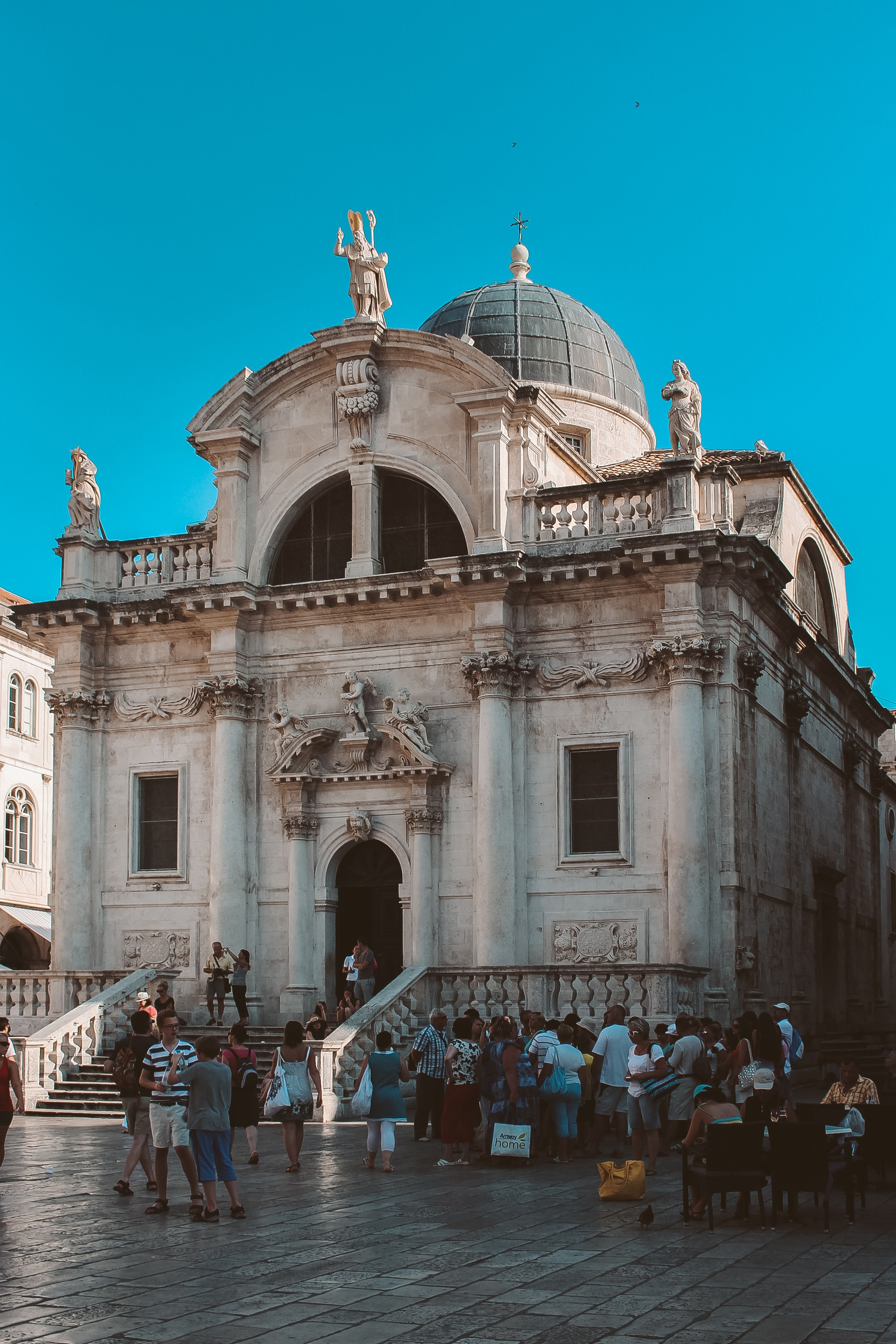 У центрального входа в старый город — ворот Пиле — нас встречает покровитель Дубровника, высеченный из камня на тех же воротах, — святой Влахо (он же Блазиус, он же Власий). Сразу при входе небольшая площадь, но на первый взгляд, если честно, в этом площадь не определишь — так, небольшое пространство, справа от которого неизменно толпятся у фонтана Онофрио мучимые жаждой горожане, а слева возносится ввысь францисканский монастырь (надеюсь, ни для кого не секрет, что Хорватия — католическая страна). Проскользнув в небольшую дверцу, мы попадаем внутрь самого монастыря: здесь и пустынные галереи (если туристов нет!) с красочными фресками, и маленький садик, и даже музей, где наряду с прочими экспонатами хранятся и мощи святых — мне лично удалось опознать мощи того же Влахо, а также святой Урсулы и святого Владислава.