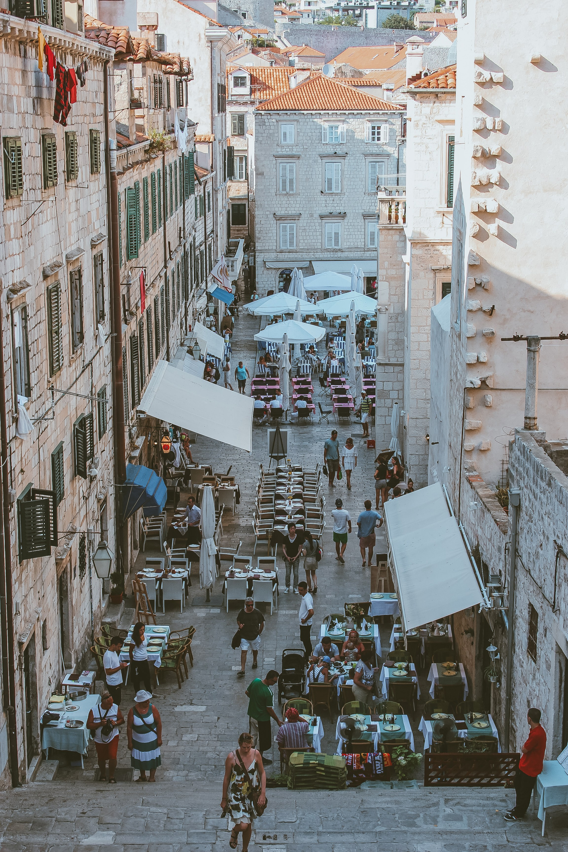 Покидая монастырь, мы попадаем на главное и наиболее любимое место туристов — центральную улицу Страдун (давным-давно на ее месте находилась водная протока, которая была засыпана, а впоследствии улица превратилась в одну из основных достопримечательностей Града). Хотя, если честно, мне больше по душе пришлись маленькие, узкие боковые улочки — такие уютные, со ступенями, фонарями и зеленью повсюду — вьющейся по стенам, стоящей в горшках на балкончиках и прямо на лестницах. Пройдя по одной из таких улочек, я набрела, кстати, на православный храм сербской общины. Снаружи он не слишком походил на наши церкви, но с архитектурной точки зрения был гораздо строже немного вычурной барочности католических соборов Дубровника. Еще мне сказали, что в городе обязательно имеются также мечеть и синагога, — я несколько дней безуспешно бродила в поисках оных, но так и не нашла… Ну, значит не судьба.