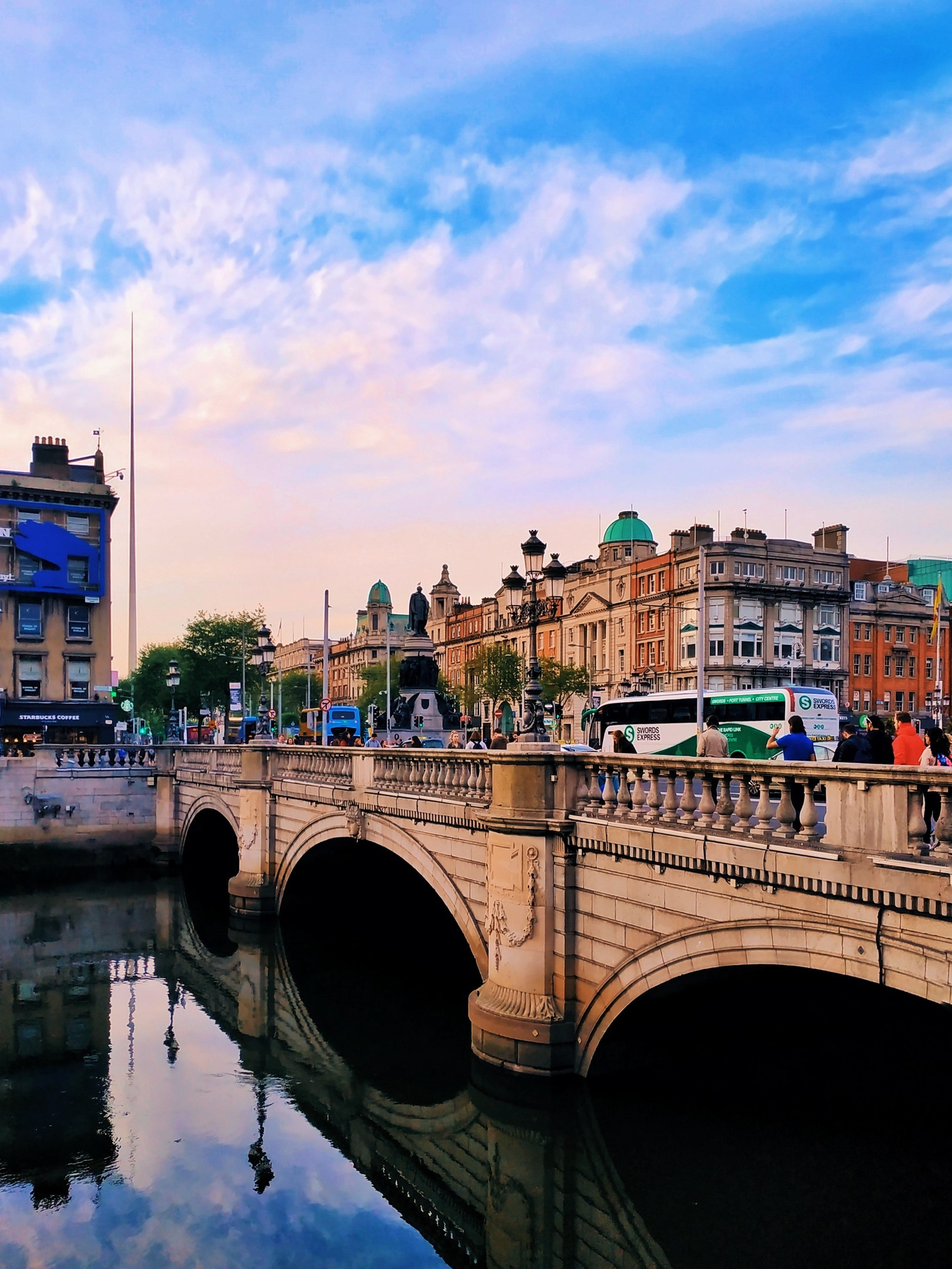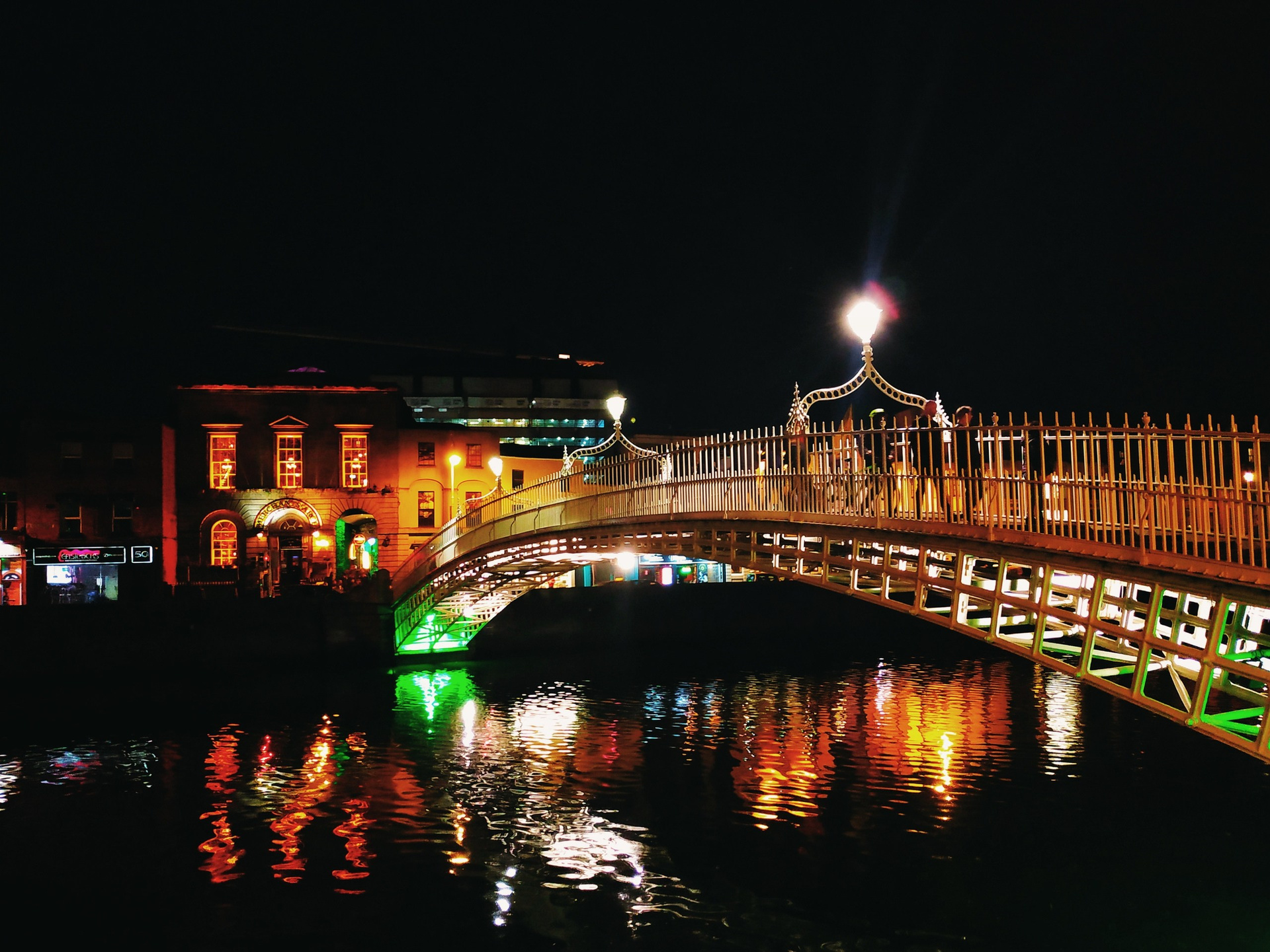 Но как и прежде, вдоль реки жизнь бьет ключом. А лучшее, что есть в Дублине, это мосты над Лиффи — аж 24 штуки! Новехонькие — арфа и мост Джойса; основательный каменный мост Граттана, фонари которого украшают фигуры с головами лошадей и рыбьими хвостами — то ли гиппокампусы, то ли ирландские келпи; старейший и самый широкий мост О’Коннелла, продолжающий одноименную улицу и до сих пор являющийся пристанищем попрошаек (кто-нибудь читал пронзительный рассказ Бредбери «Нищий с моста О’Коннелла»?); и мой любимый — белоснежный, ажурный, кажущийся игрушечным горбатый мостик Полпенни, получивший свое прозвище из-за того, что сто лет назад проход по нему был платный. И особенно хороши все они в огнях и красках ночного города!