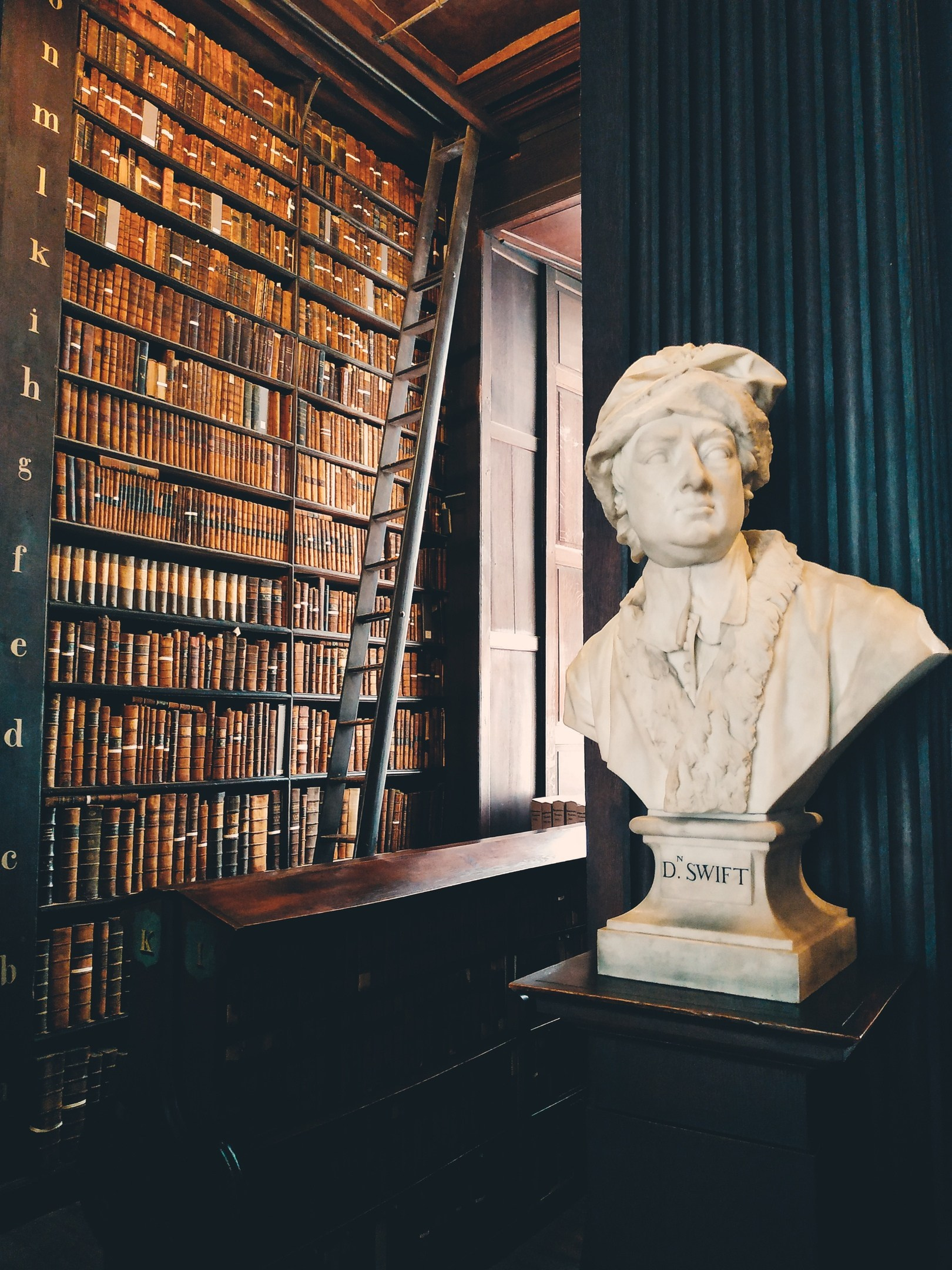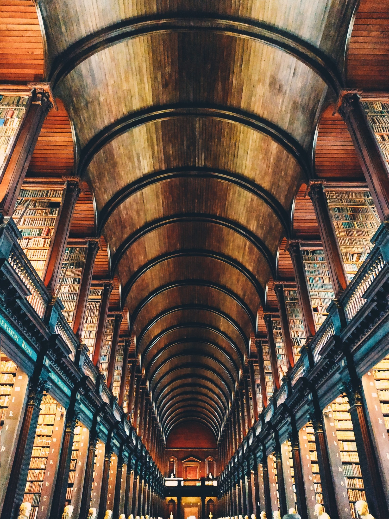 В Старую библиотеку меня привел новый друг Алекс — сейчас уже счастливый студент Лейденского университета, а тогда, в мае, без пяти минут выпускник Тринити-колледжа. Оказывается, у тамошних сотрудников и учащихся есть преимущество проводить своих гостей без очереди. Да и сам Алекс, кажется, был рад лишний раз наведаться в данный корпус — по его словам, за все годы учебы он нечасто туда заглядывал. Поскольку, во-первых, все архивы оцифрованы (!), а во-вторых, знаменитое книгохранилище скорее похоже на музей, чем место учебы. В самом начале даже есть экспозиция, посвященная бесценным артефактам средневековой литературы: там выставляется Книга из Дарроу 7 века, Кодекс Ардмаханус 9 века и многие другие манускрипты, в том числе легендарная «Book of Kells», Келлская книга, — древний фолиант с филигранно выполненным орнаментом и рисунками, содержащий четыре Евангелия, пролог и комментарии к ним.