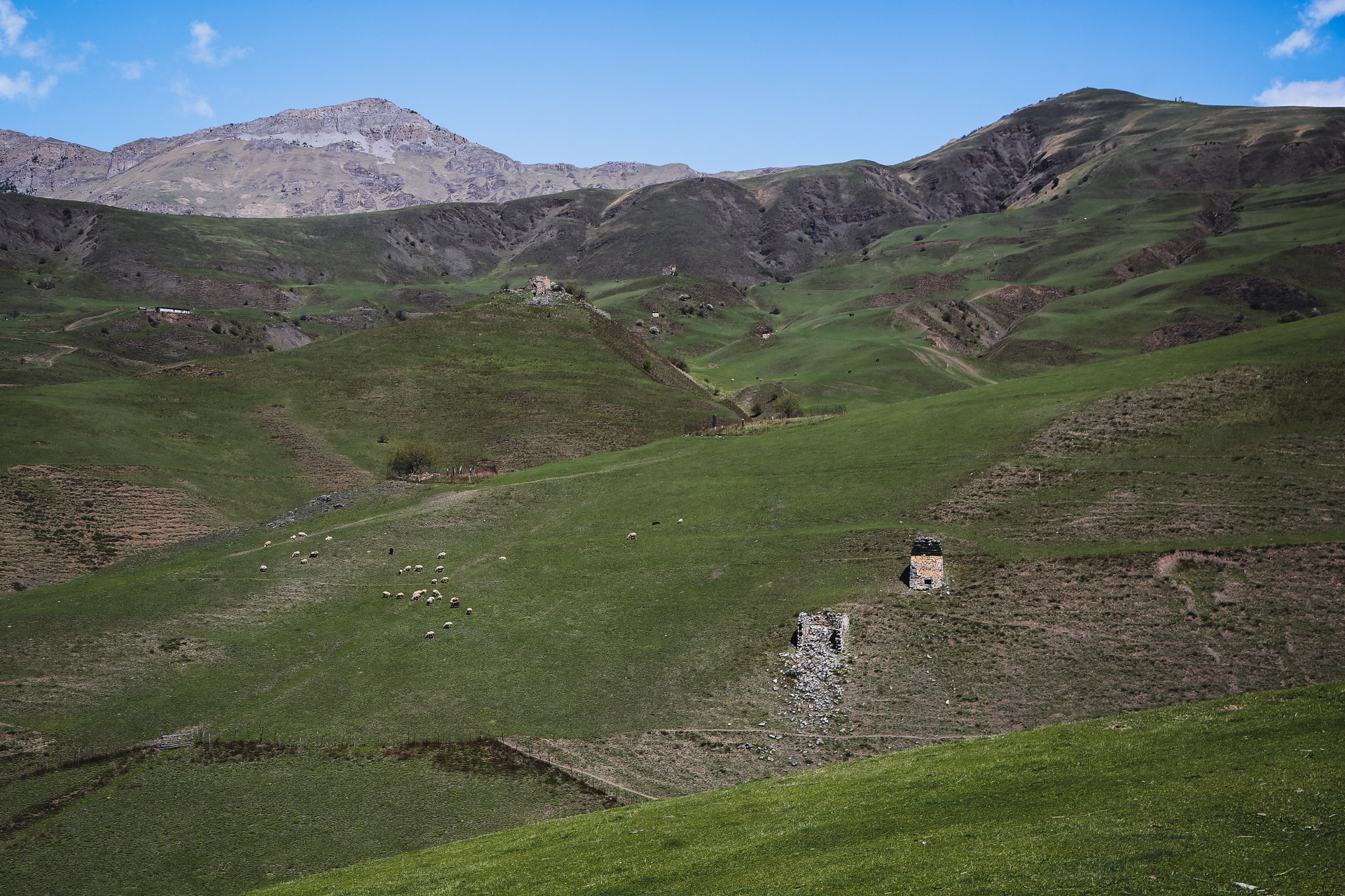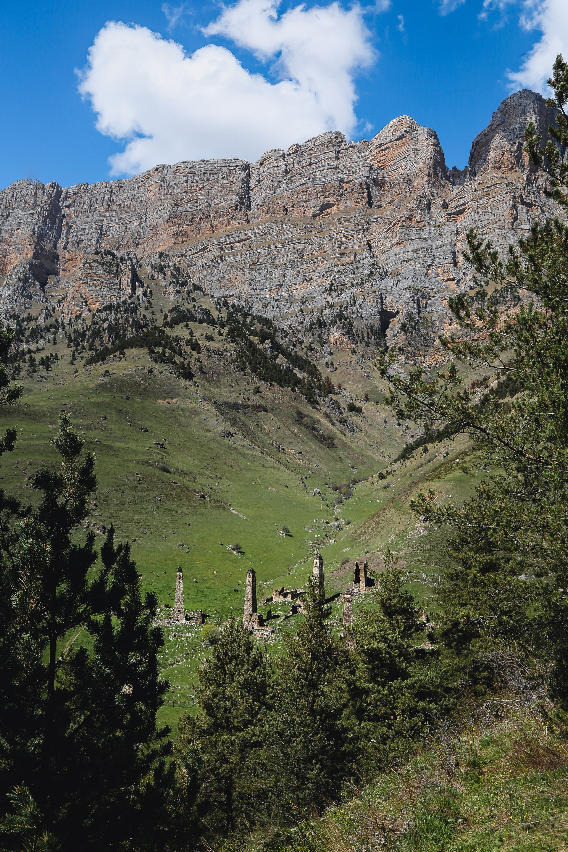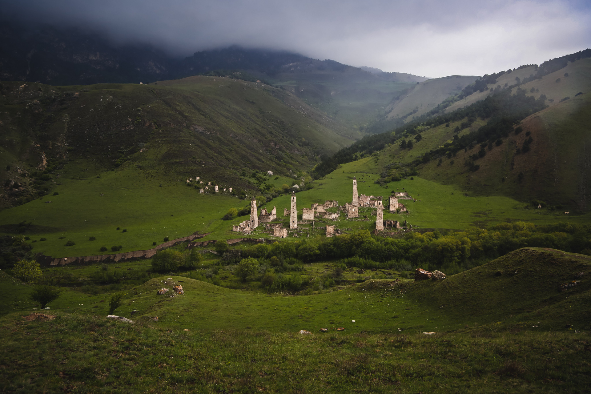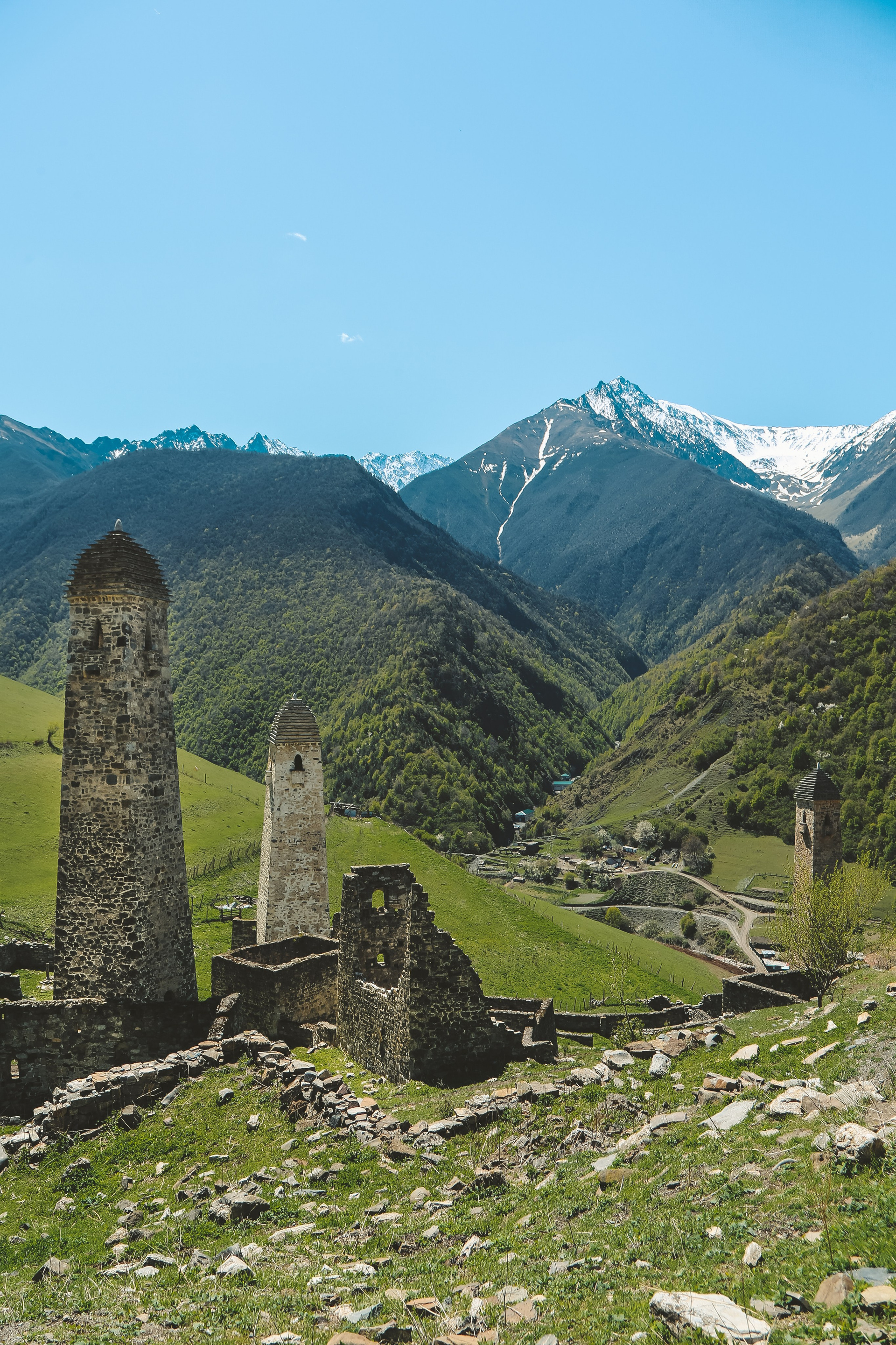 Вообще, территория заповедника огромна — 640 квадратных километров, на которых находится почти полтысячи башенных комплексов; объехать все, наверное, невозможно, однако самые знаменитые мы изучили достаточно подробно — Таргим, Хамхи, древний покинутый город Эгикхал, комплекс Эрзи, что значит «Орел», замковый комплекс Цори, боевые Вовнушки, без фундамента, будто вырастающие из скал.