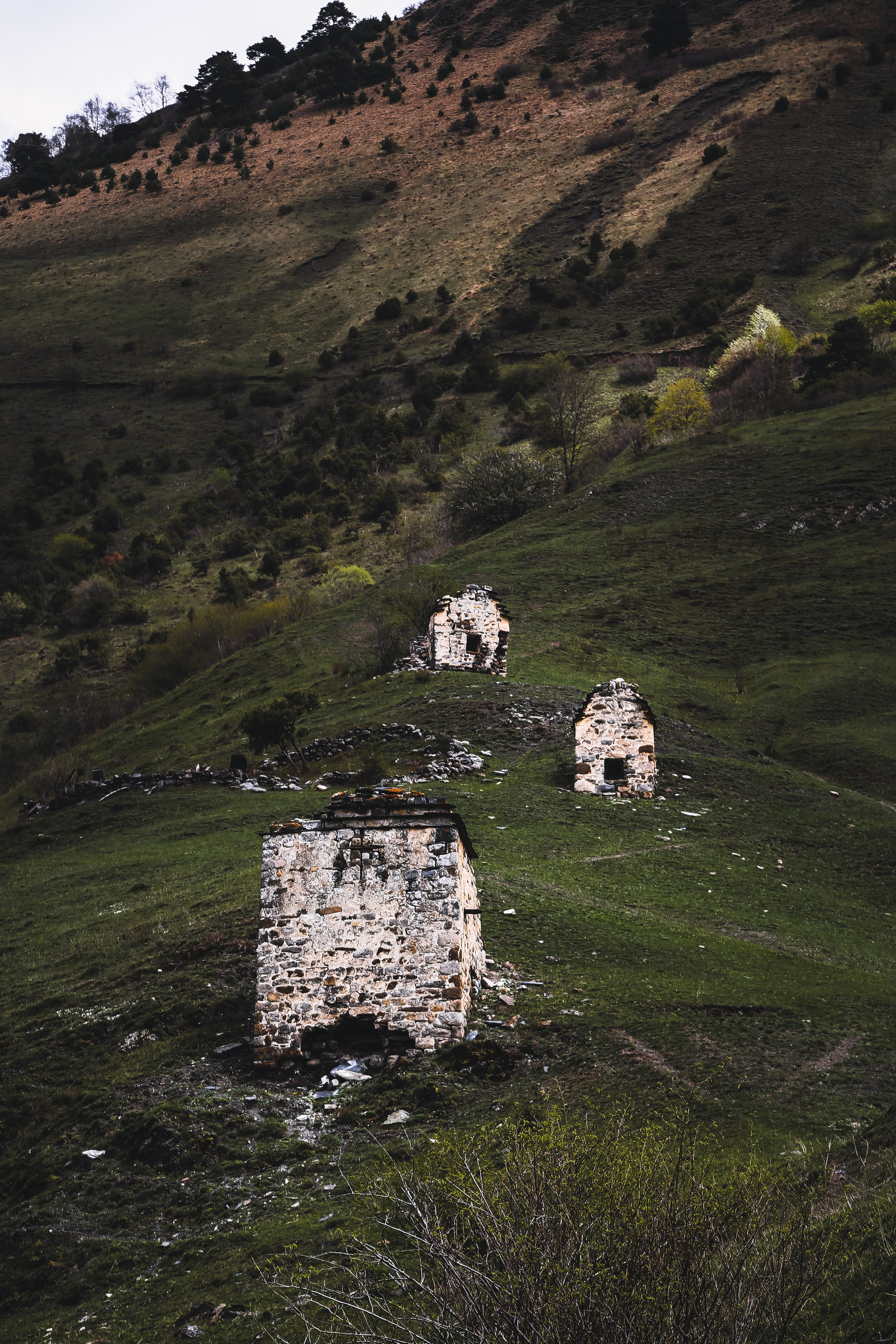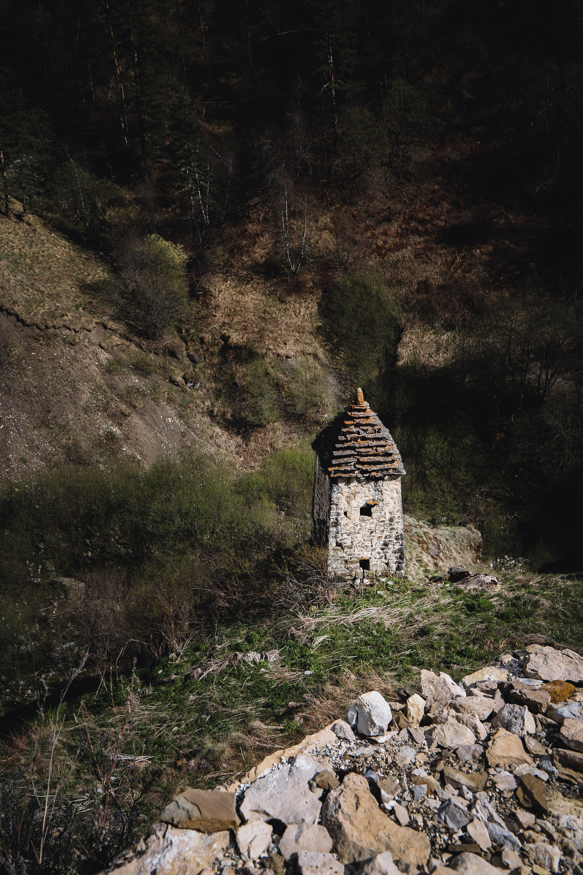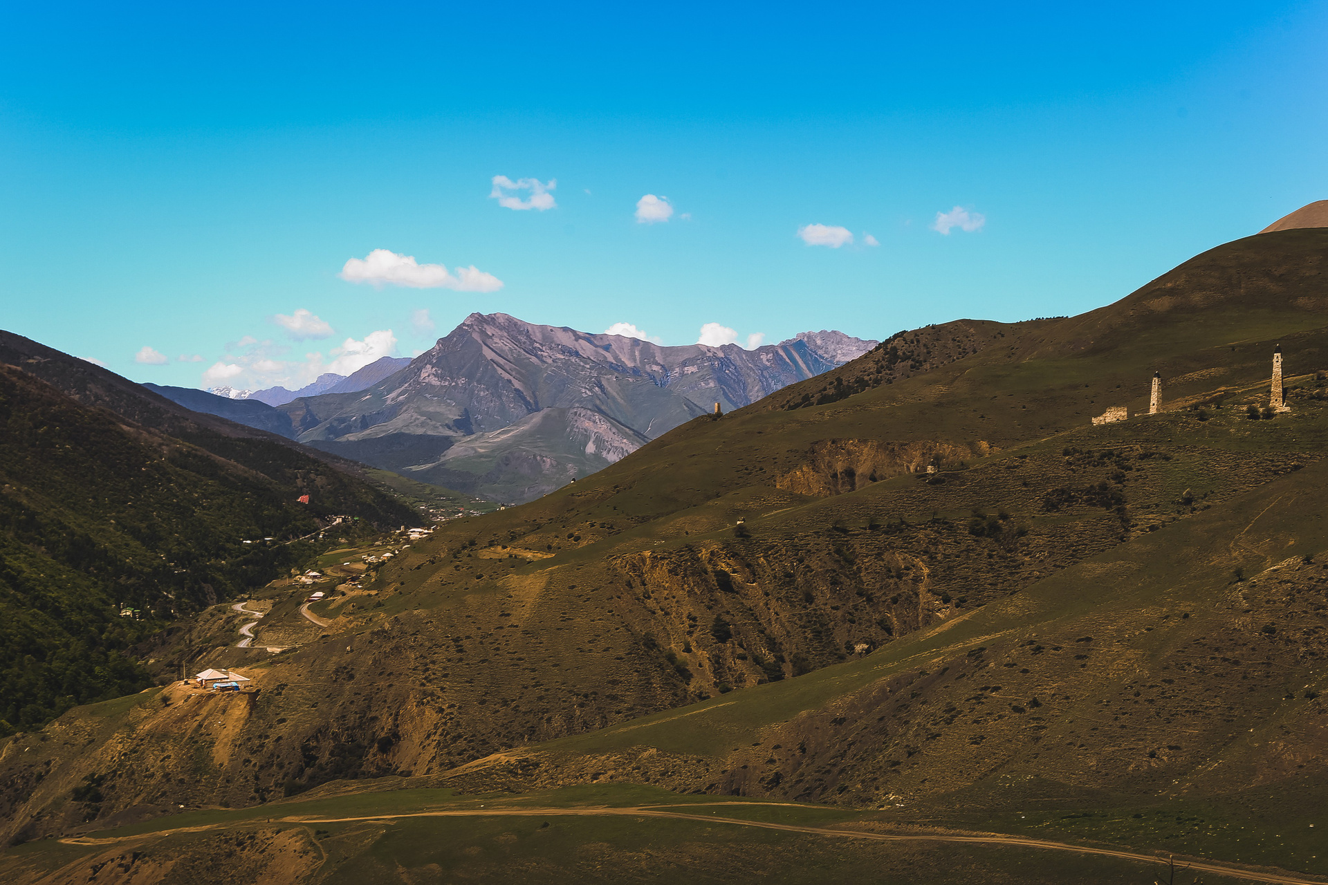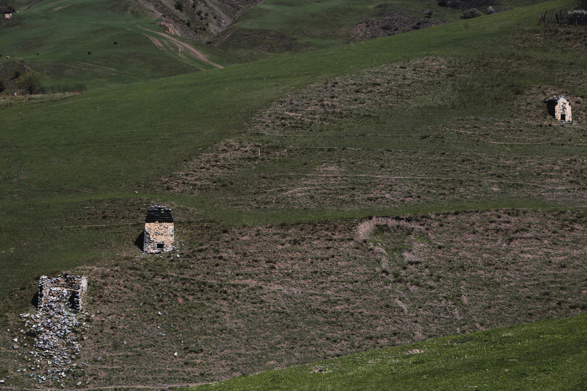 Вообще, территория заповедника огромна — 640 квадратных километров, на которых находится почти полтысячи башенных комплексов; объехать все, наверное, невозможно, однако самые знаменитые мы изучили достаточно подробно — Таргим, Хамхи, древний покинутый город Эгикхал, комплекс Эрзи, что значит «Орел», замковый комплекс Цори, боевые Вовнушки, без фундамента, будто вырастающие из скал.