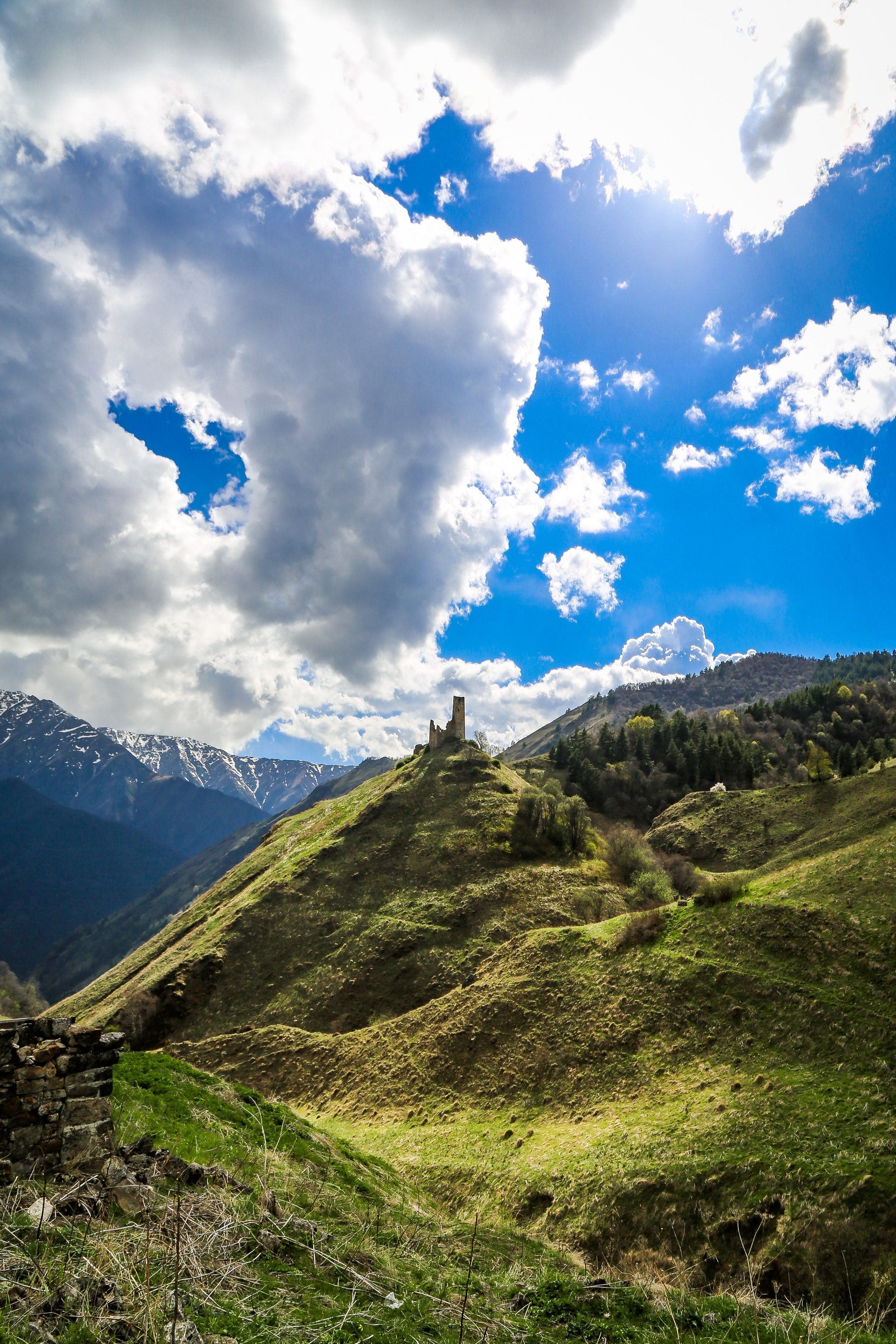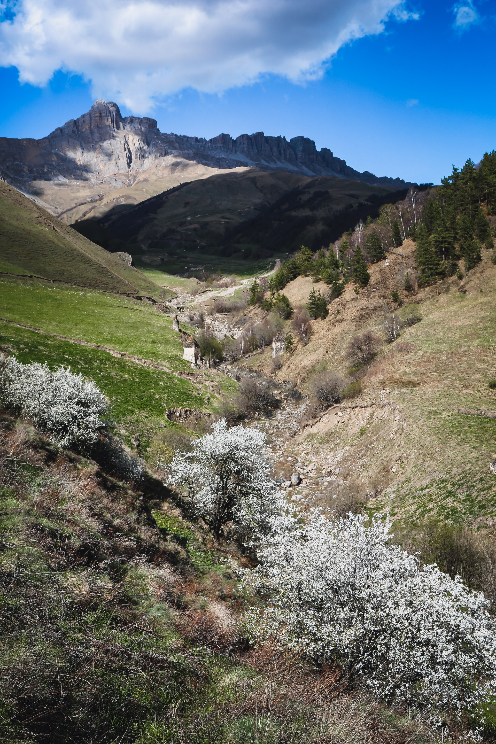 Но помимо чудес зодчества Ингушетия это еще и небывалое природное богатство: горы, ледники, отвесные скалы, ущелья, леса, альпийские луга, цветущие яблоньки, ручьи, водопады… И ты прокладываешь через все эти красоты «путь к небесам, что стенами из камня зажат», по дороге с облаками!