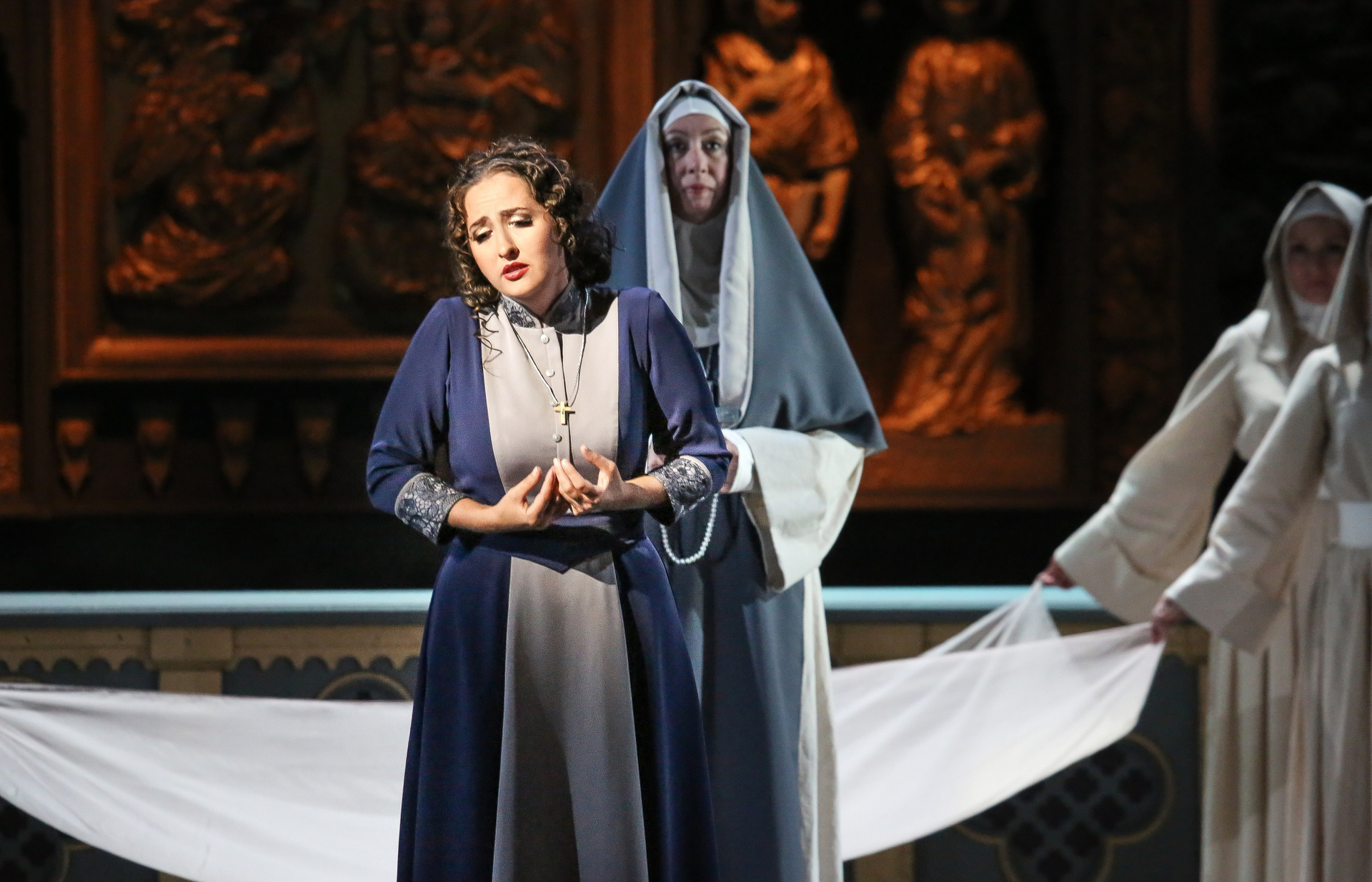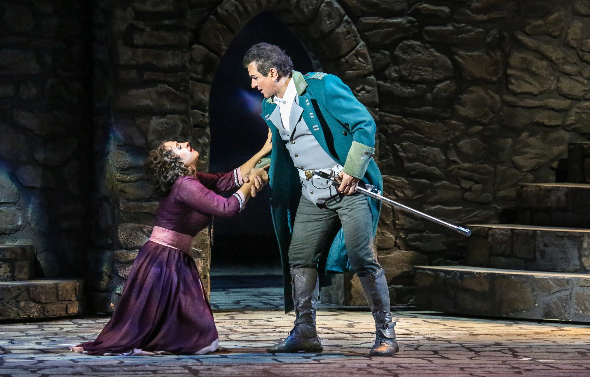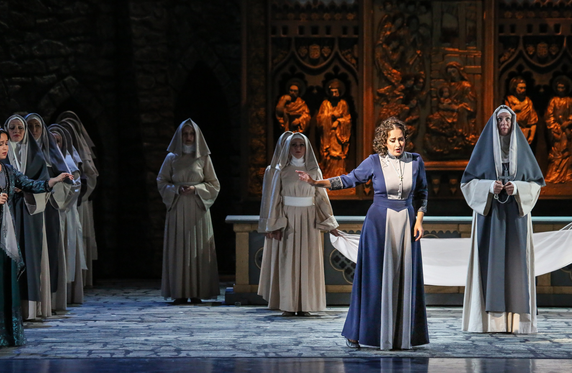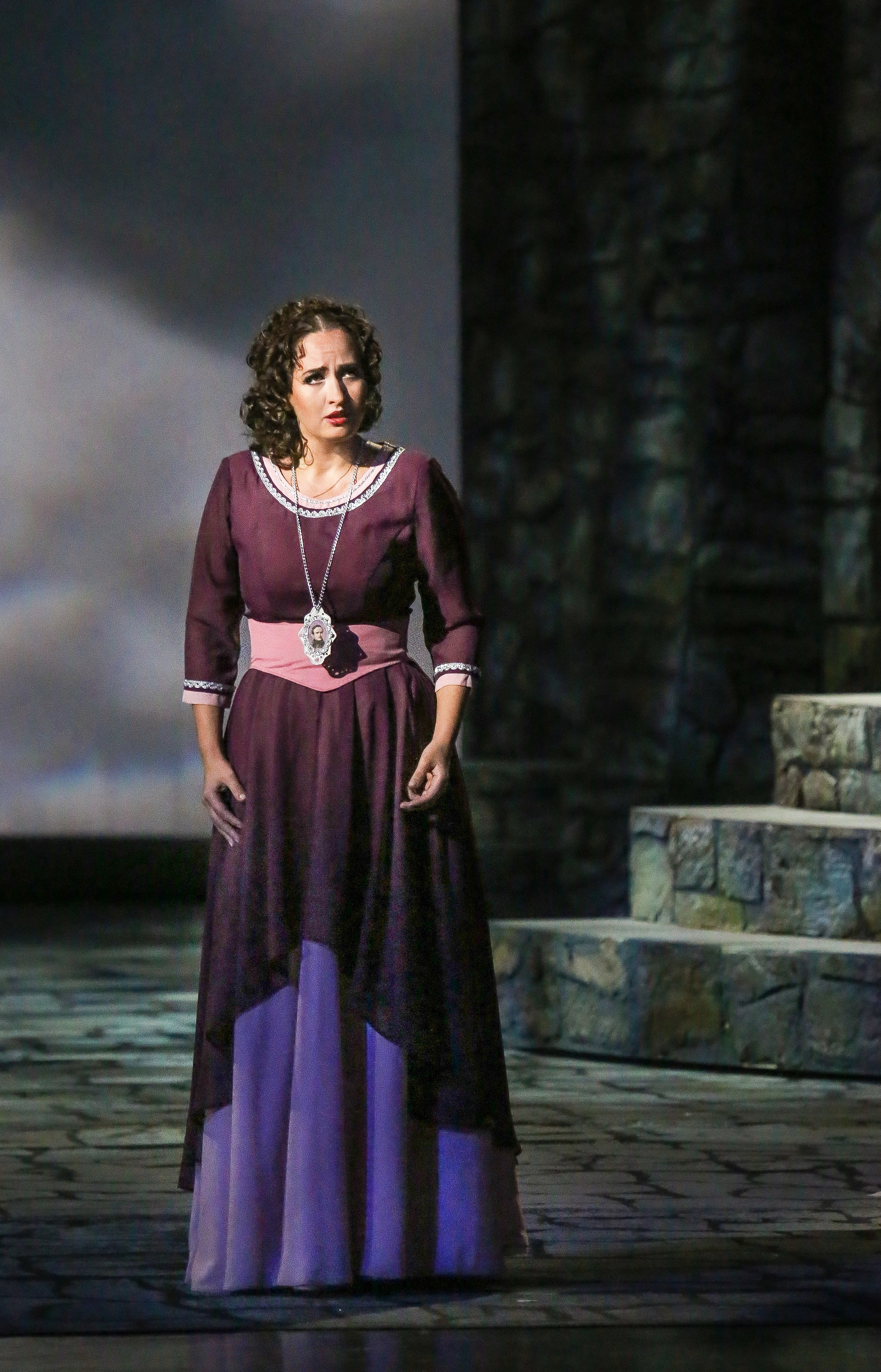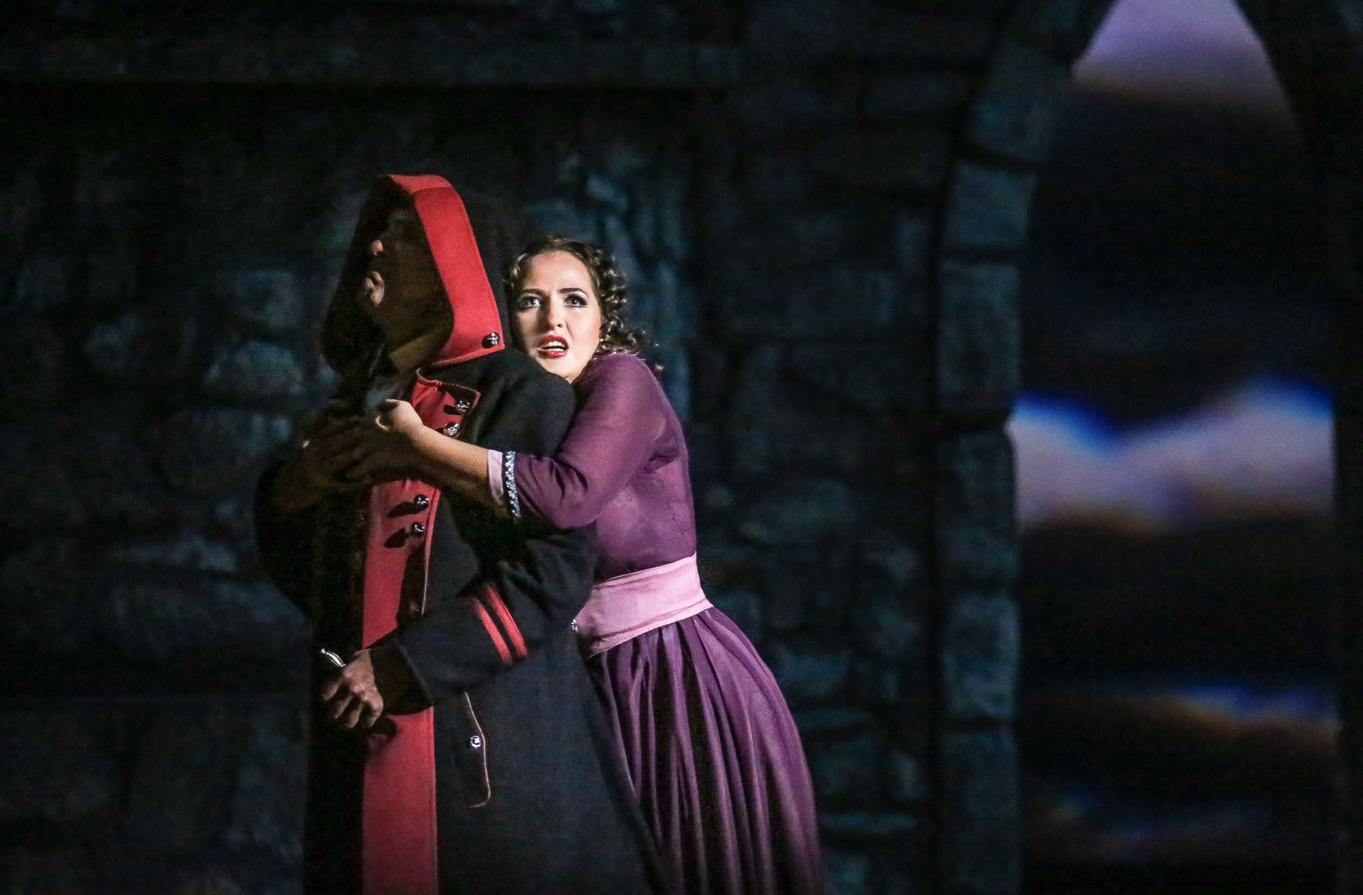 И наконец, о главной героине. Поскольку хоть опера и называется «Трубадур», ее центральная фигура все же не Манрико, а Леонора — в том числе потому, что ее партия не только самая объемная, но и экстраординарная по трудности, со сложнейшей тесситурой, немыслимым количеством фиоритур и межрегистровых модуляций. К тому же из всей компании нелогичных одержимых персонажей оперы Леонора единственная вызывает сочувствие. Во всяком случае, вполне возможно представить и понять ситуацию, когда одна лишь мысль о необходимости жить без любимого человека кажется более невыносимой, чем сама смерть, дающая хоть какую-то надежду («Чтоб не жить для других, я хотела умереть за тебя»). Исполнительница данной партии, солистка московского театра «Новая опера» Марина Нерабеева звучала, пожалуй, даже лучше, чем в некогда аналогичной новооперной постановке: вызывало восхищение ее владение голосом, сильным и ровным на всем диапазоне, с серебристыми верхами и теплым, округлым тембром в средней тесситуре.