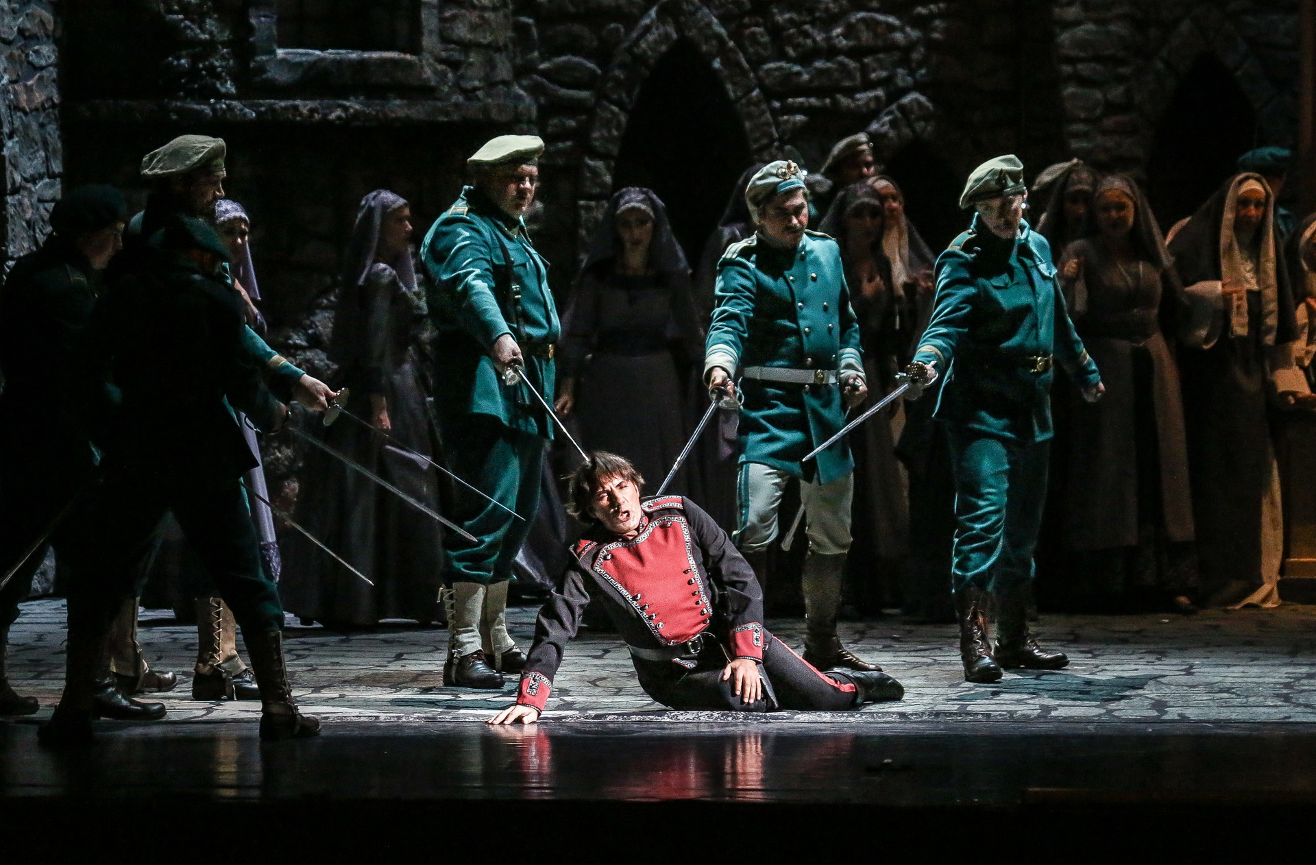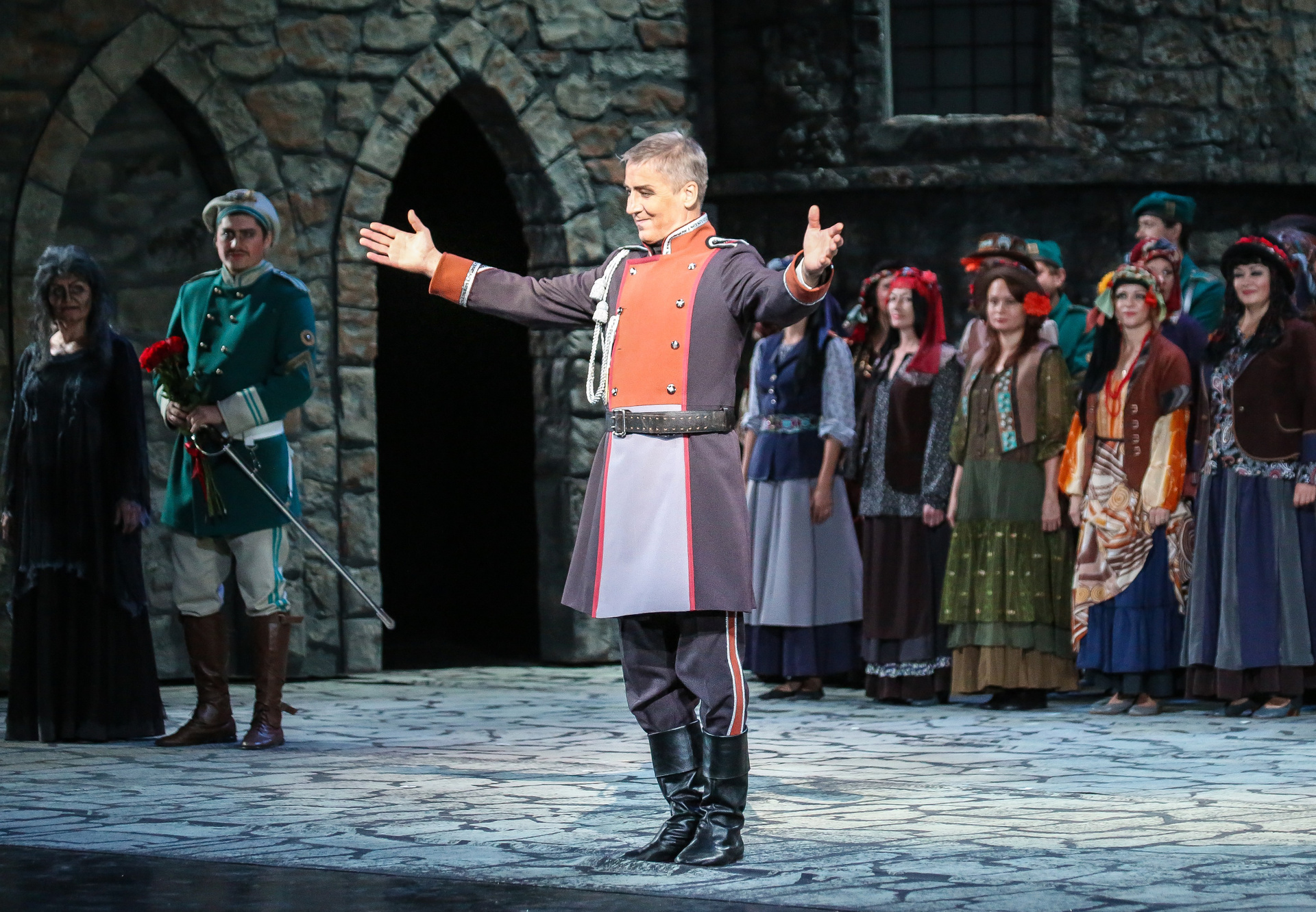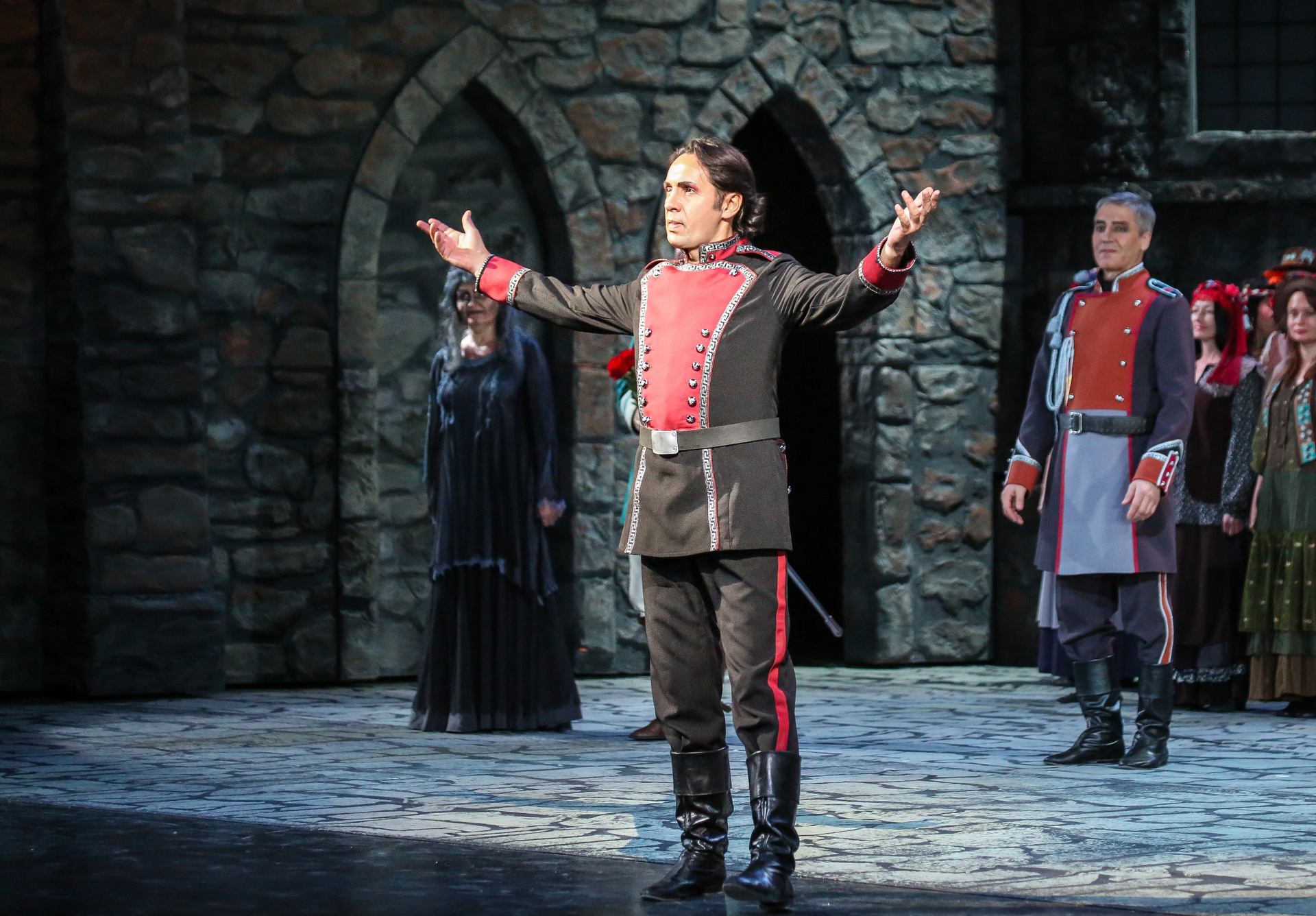 На самом деле для такой оперы, как «Трубадур», существует беспроигрышный «рецепт успеха» — нужно всего-навсего собрать на одной сцене четырех идеальных вокалистов (или как метко выразился Энрико Карузо — «четырех лучших оперных певцов в мире»), поскольку титульные партии были выписаны маэстро из Буссето таким экстремальным образом, что и петь, и убедительно играть, то есть проживать роль, под силу не каждому хорошему (!) певцу. К чести режиссуры надо отметить что ритмопластический рисунок мизансцен в казанском «Трубадуре» солистам по крайней мере не мешал. И четверка протагонистов подобралась если не идеальная, то во всяком случае весьма достойная — каждый из них продемонстрировал осмысление своей роли и выделку партии.