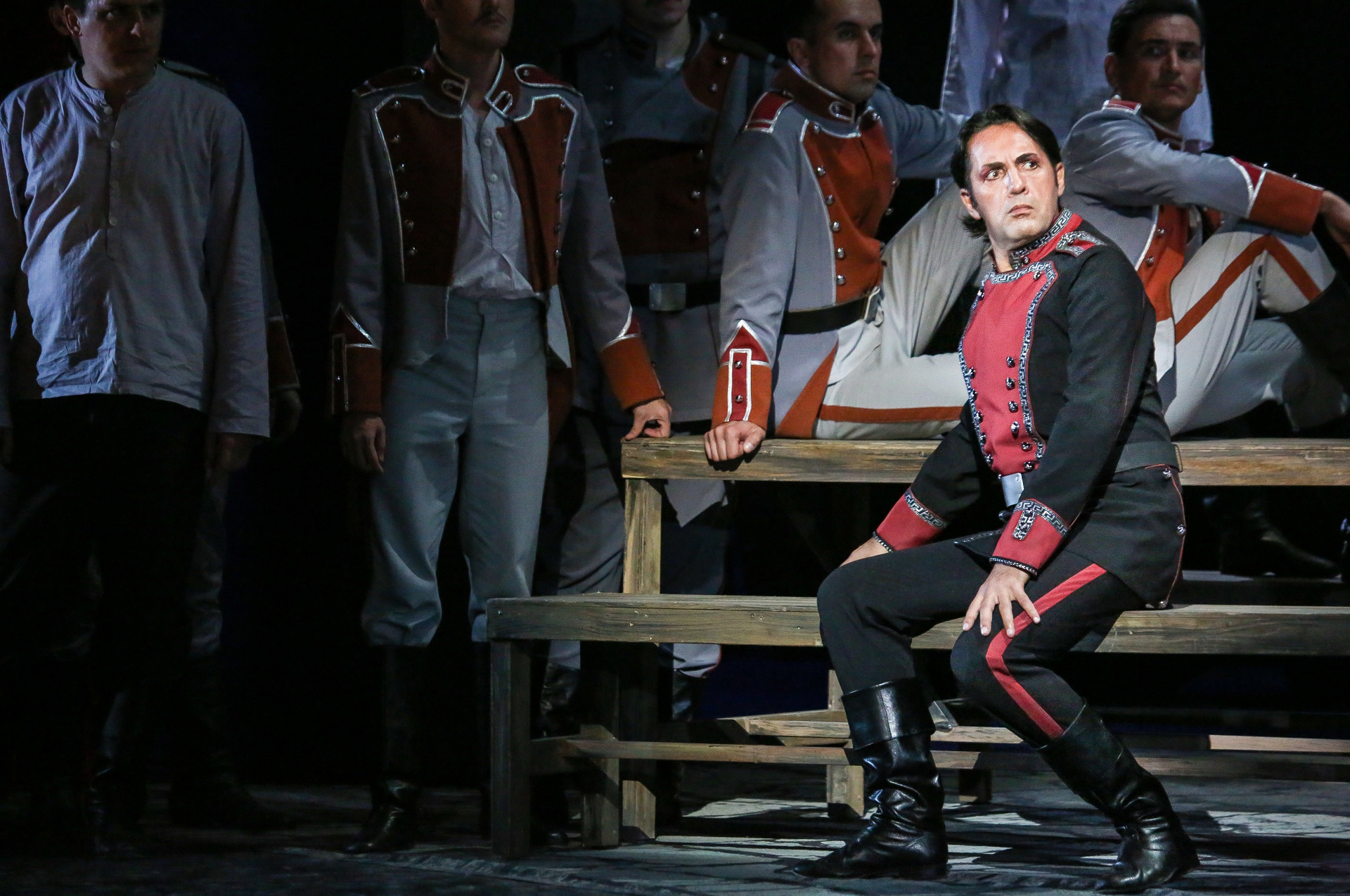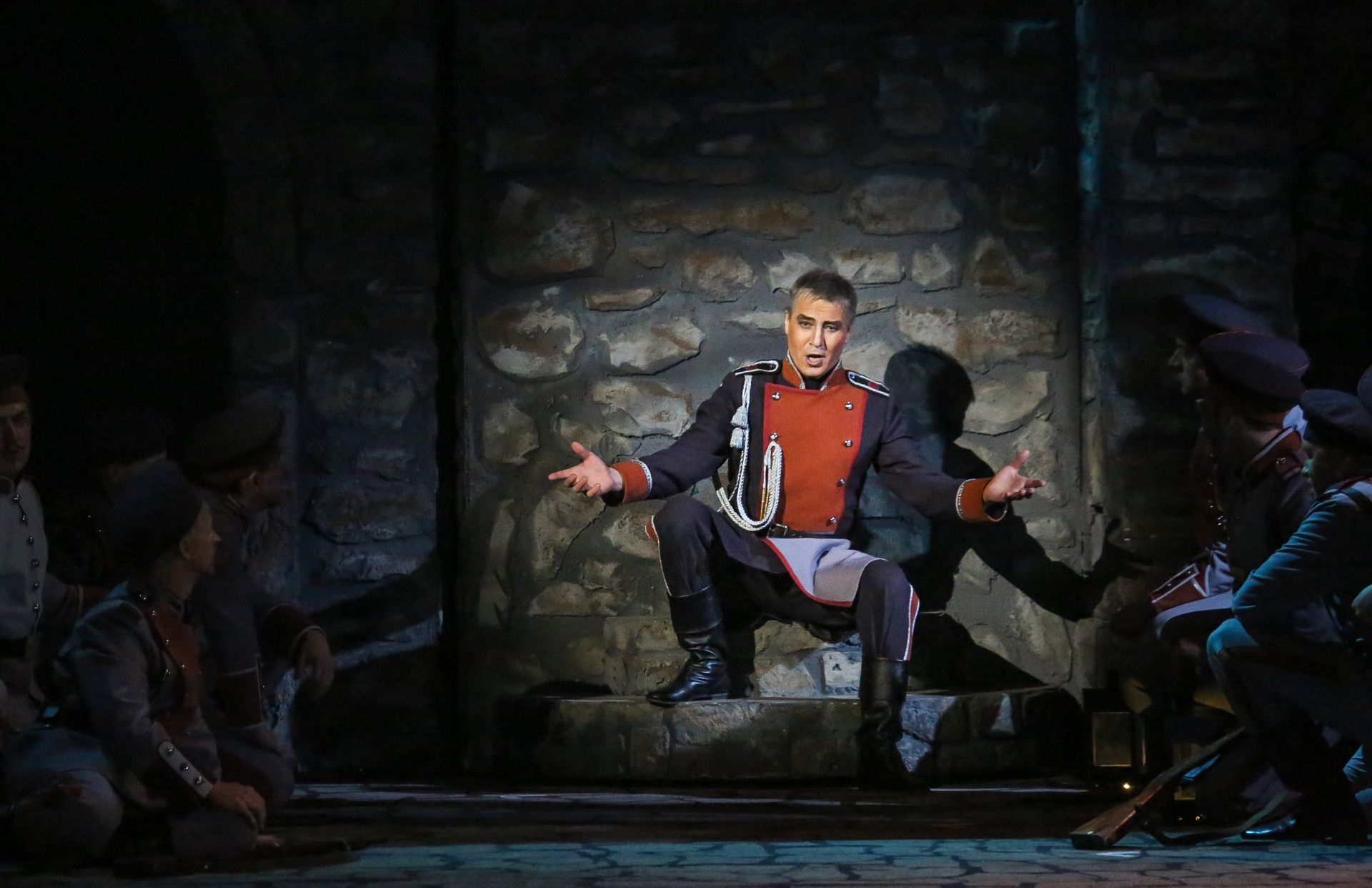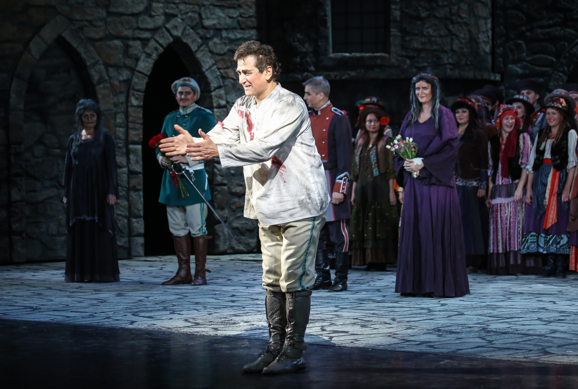 На самом деле для такой оперы, как «Трубадур», существует беспроигрышный «рецепт успеха» — нужно всего-навсего собрать на одной сцене четырех идеальных вокалистов (или как метко выразился Энрико Карузо — «четырех лучших оперных певцов в мире»), поскольку титульные партии были выписаны маэстро из Буссето таким экстремальным образом, что и петь, и убедительно играть, то есть проживать роль, под силу не каждому хорошему (!) певцу. К чести режиссуры надо отметить что ритмопластический рисунок мизансцен в казанском «Трубадуре» солистам по крайней мере не мешал. И четверка протагонистов подобралась если не идеальная, то во всяком случае весьма достойная — каждый из них продемонстрировал осмысление своей роли и выделку партии.