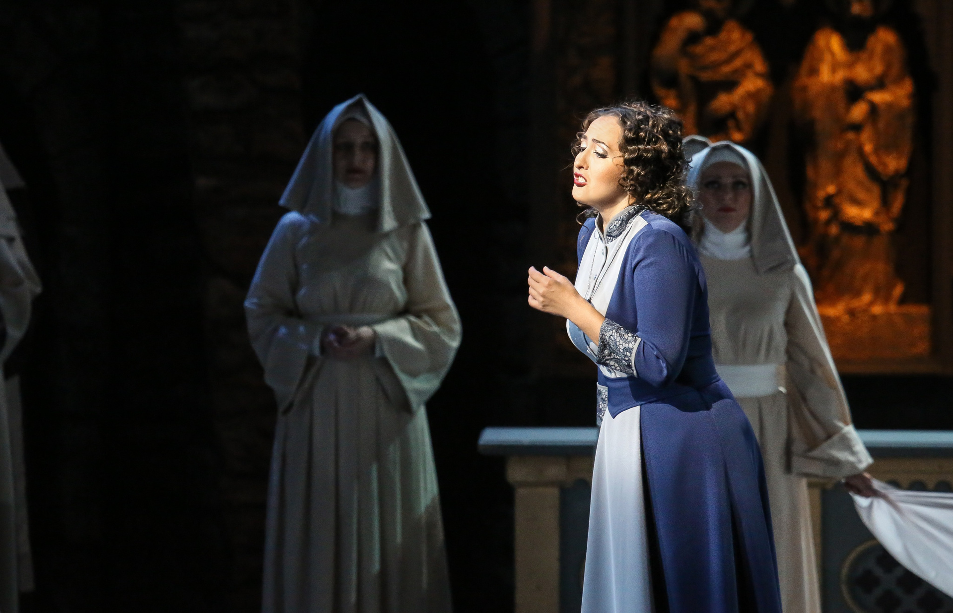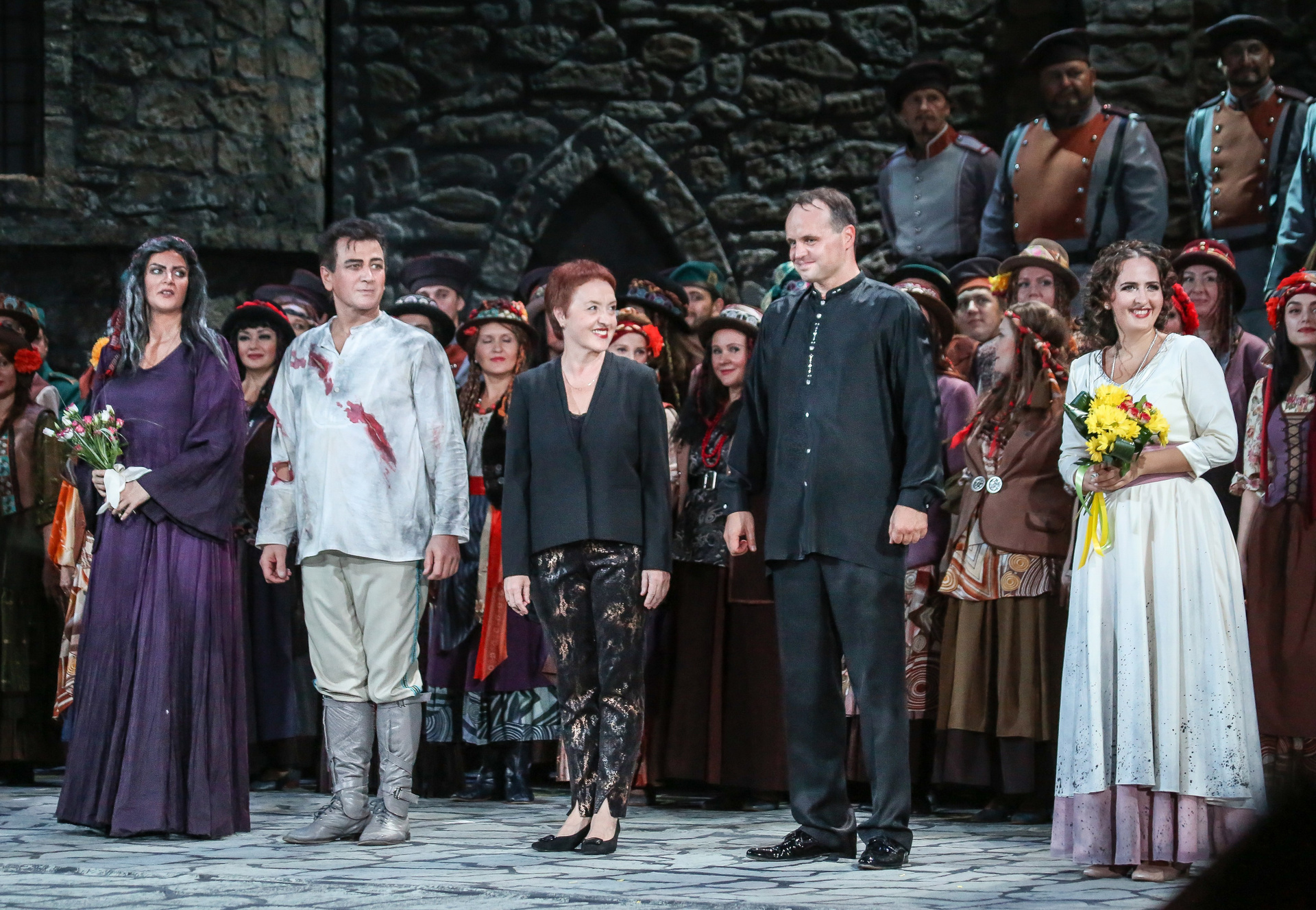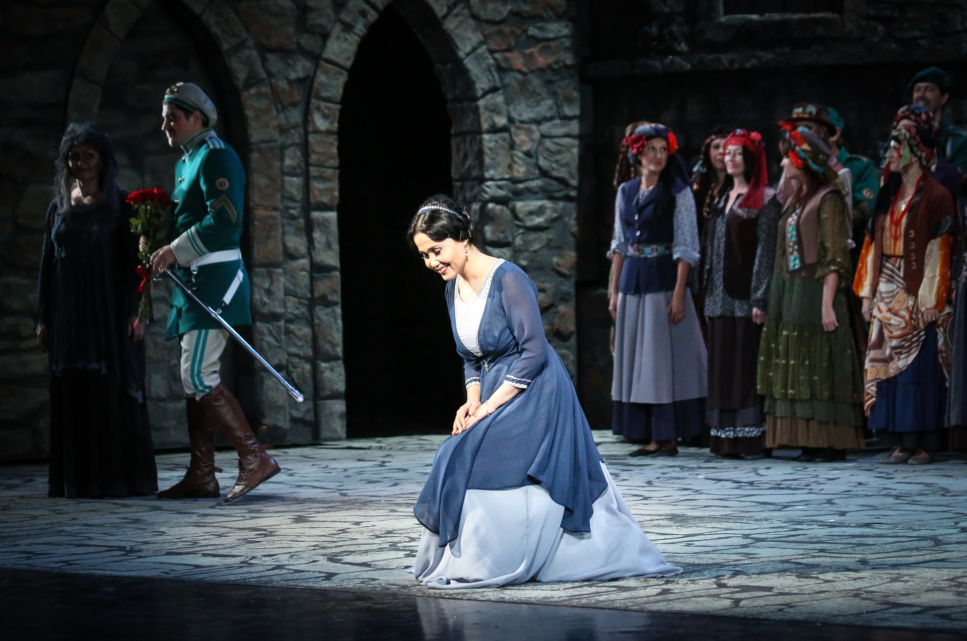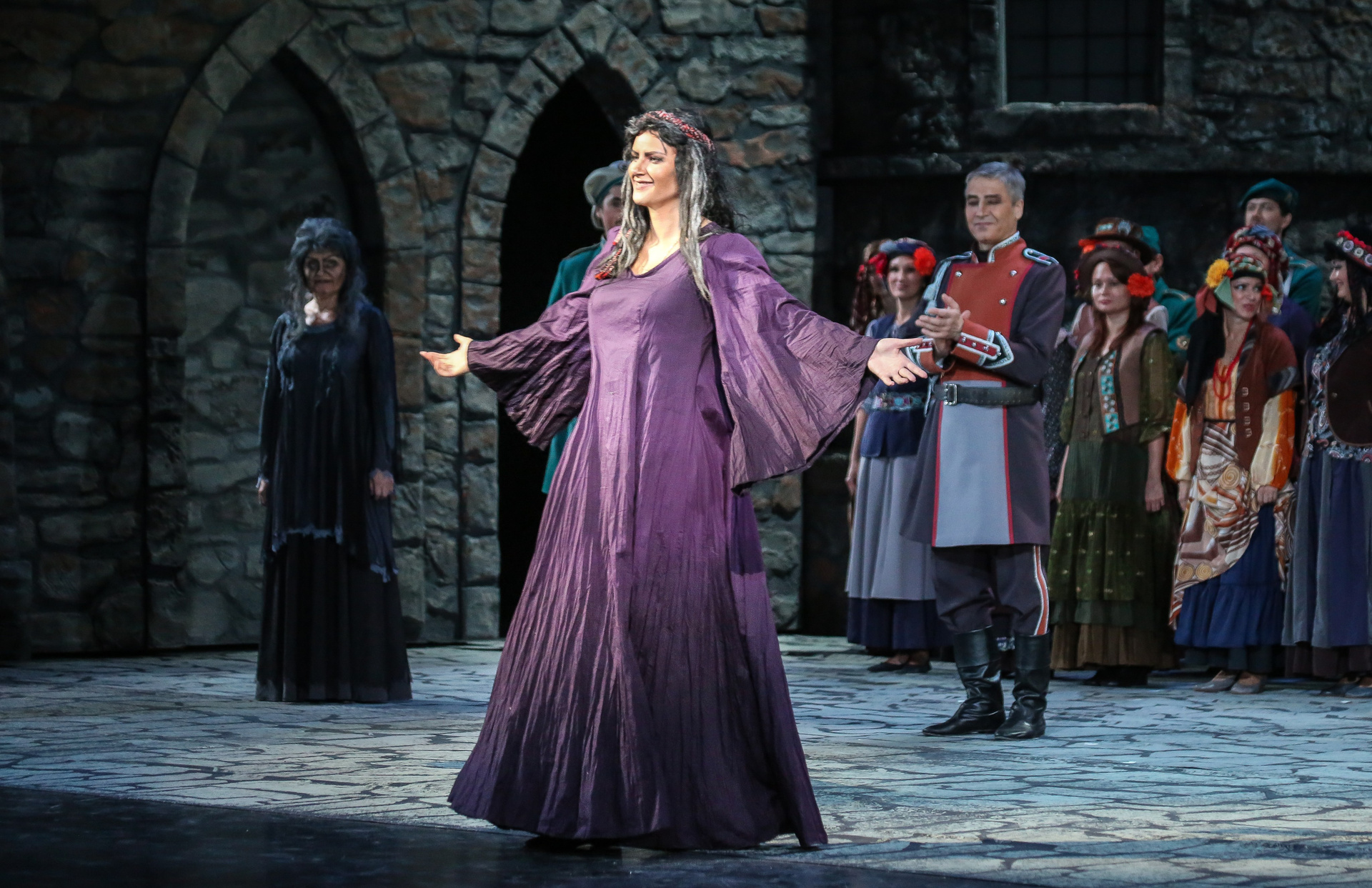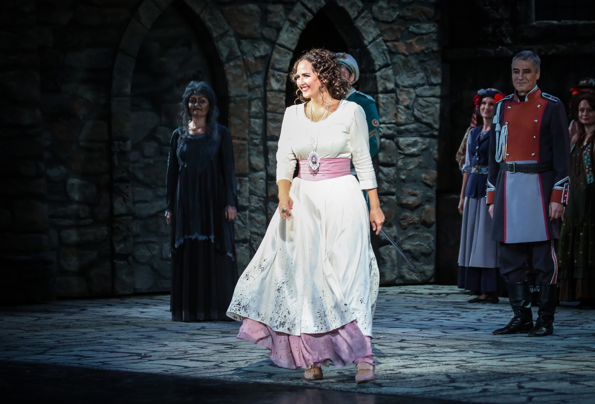 Некоторые опасения, надо признаться, были насчет молодой певицы Оксаны Давыденко — справится ли со столь драматически насыщенной ролью, как безумная цыганка Азучена? Но Оксана уже в первой свой сцене с рассказом о казни и арией «Condotta ell'era in ceppi» развеяла все сомнения подобного рода, спев невероятно страстно, до мурашек, и продемонстрировав как технику, так и яркий, глубокий тембр.