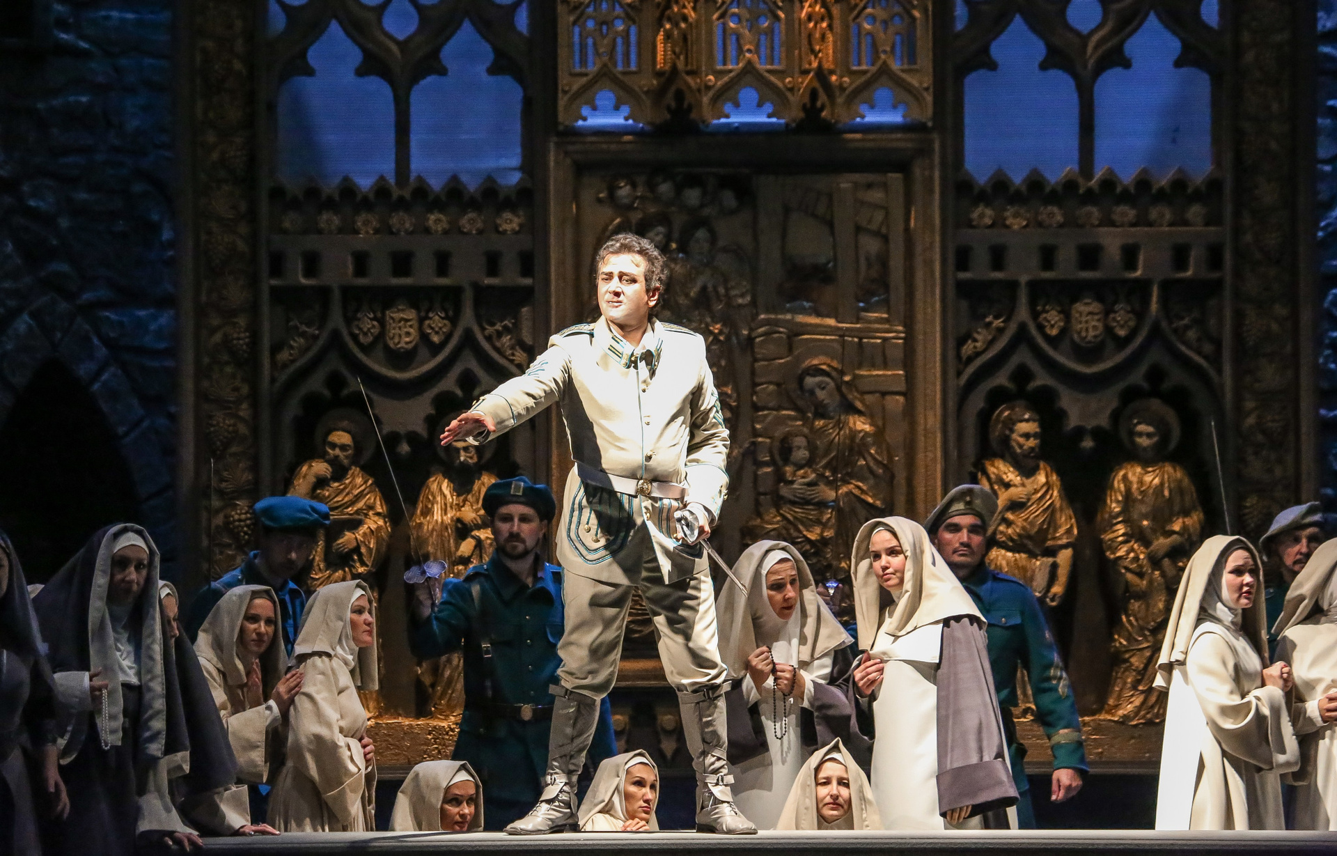 Баритон Юрий Ившин (Граф ди Луна), который оказался на удивление схож со своим «сценическим братом» Ахмедом Агади (Манрико), порадовал публику мощным голосом с широким легато и отточенной фразировкой. Что касается гостя из Мариинки, знаменитого тенора Агади, наделенного чрезвычайной сценической харизмой, то у него партия трубадура Манрико в репертуаре уже давно, поэтому исполнил он ее ожидаемо впечатляюще.