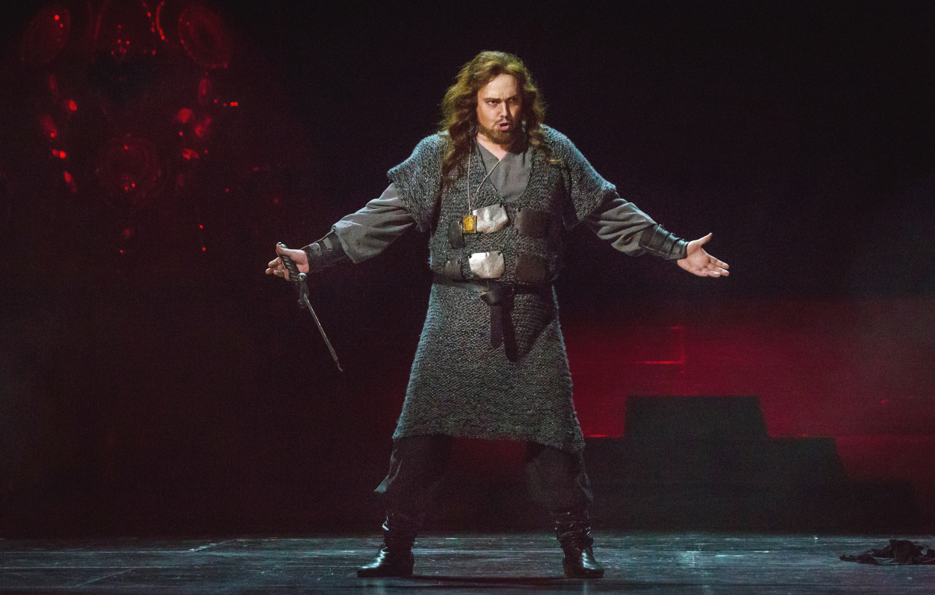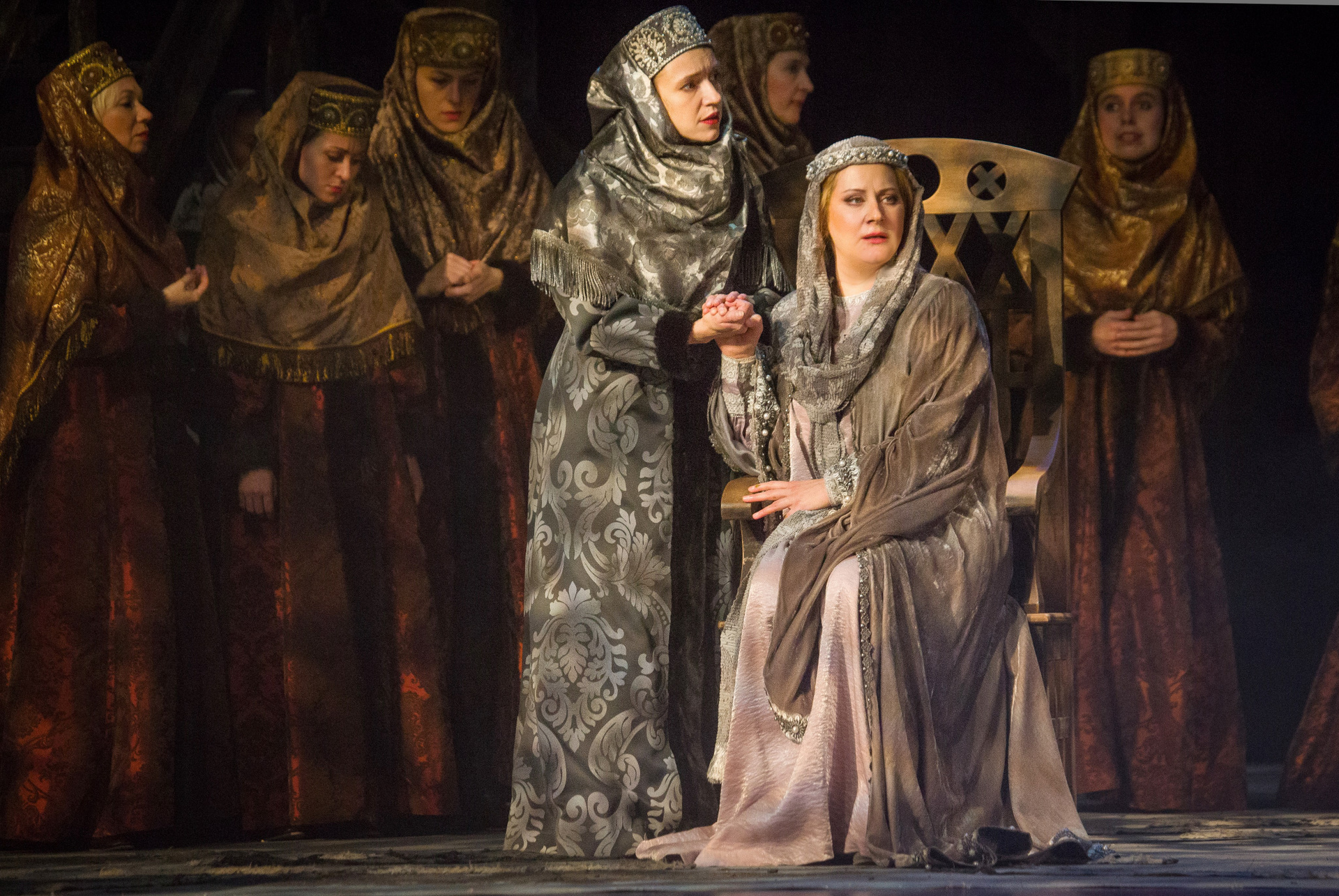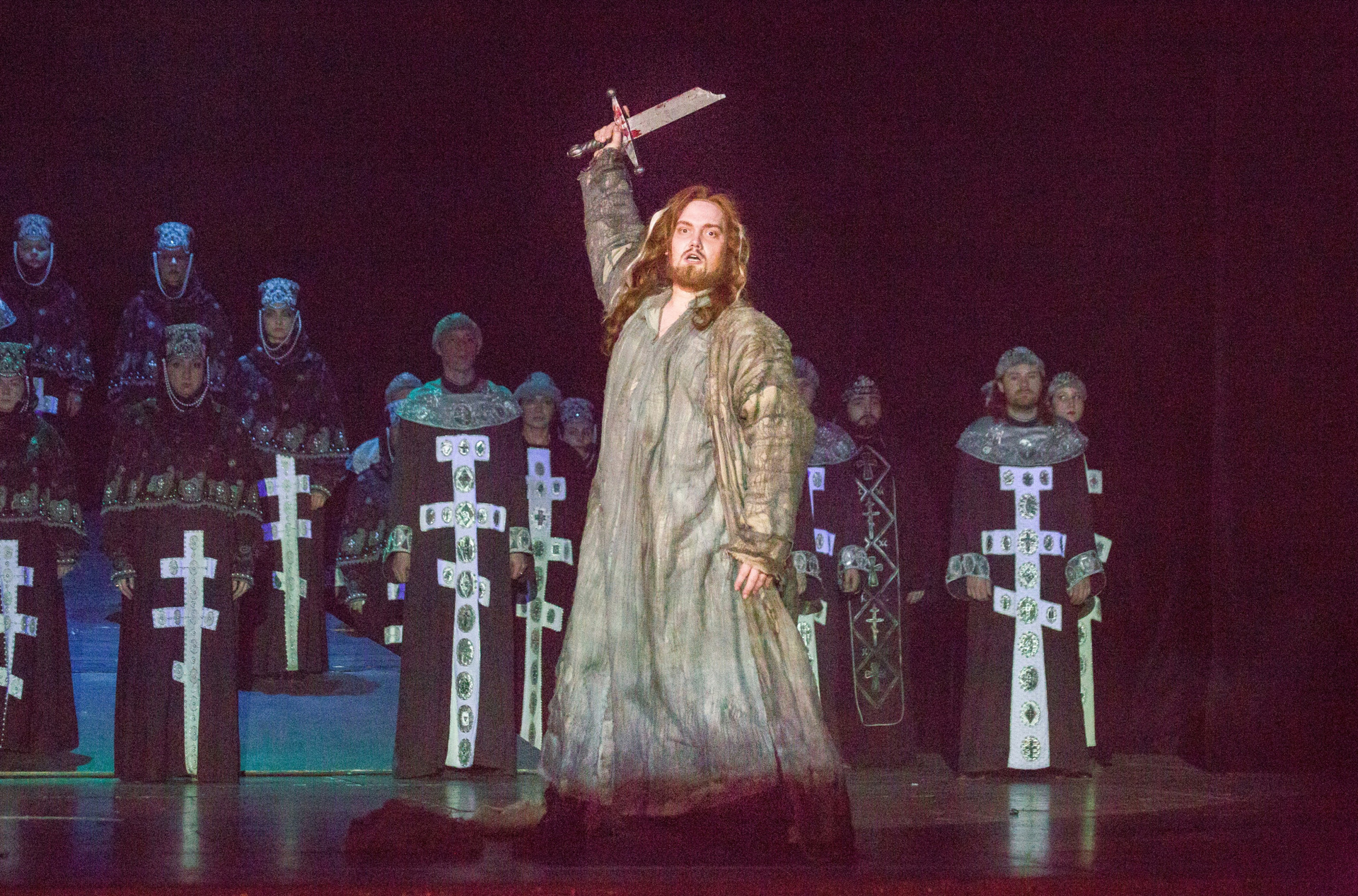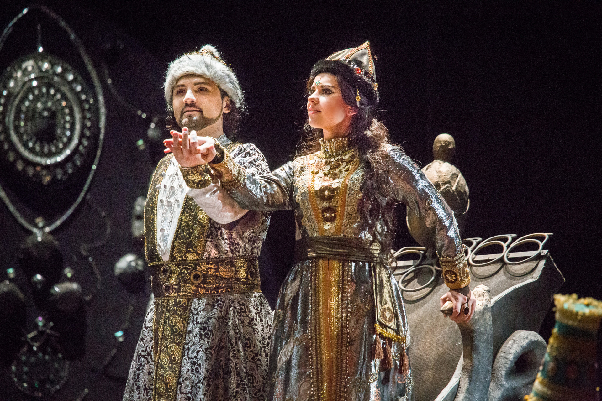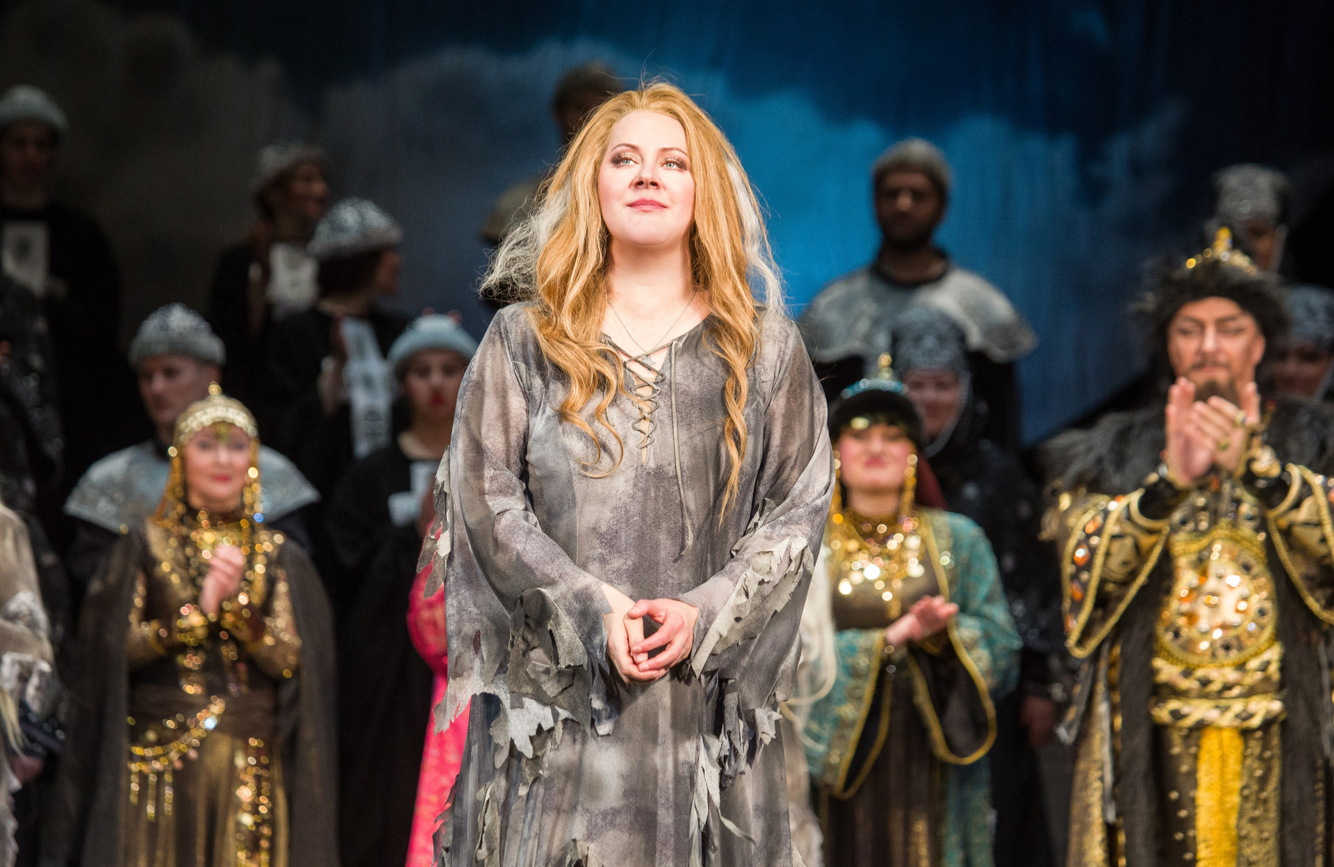 Известно, однако, что на восприятие режиссерской задумки непосредственно влияет исполнительская составляющая. И она была вполне на высоте — впечатляюще провели свои партии басы Евгений Ставинский (Галицкий) и Владимир Кудашев (Кончак), невероятно понравилось исполнение Георгия Васильева (Владимир Игоревич), который обладает звонко-полетным и свободно льющимся голосом, в общем, лирический тенор лучшего качества. Отменным получился его дуэт с Валерией Пфистер, чей обволакивающий тембр и колоритная внешность прекрасно соответствовали образу Кончаковны. А вот с протагонистом всё сложнее — на октябрьском спектакле, когда состоялся дебют Андрея Борисенко в роли Игоря, можно было надеяться, что он еще освоится в данном образе, найдет уникальные краски и представит своеобразное прочтение, но, увы, его исполнение оказалось все еще очень клишированным и неубедительным, такой князь сочувствия не вызывал нисколько. Зато Ярославна — Елена Поповская — даже невзирая на резкие крайние верхние ноты, хорошо прозвучала в своей сложнейшей, практически колоратурной партии, и при этом сумела показать всю глубину внутренних терзаний без лишней аффектации.