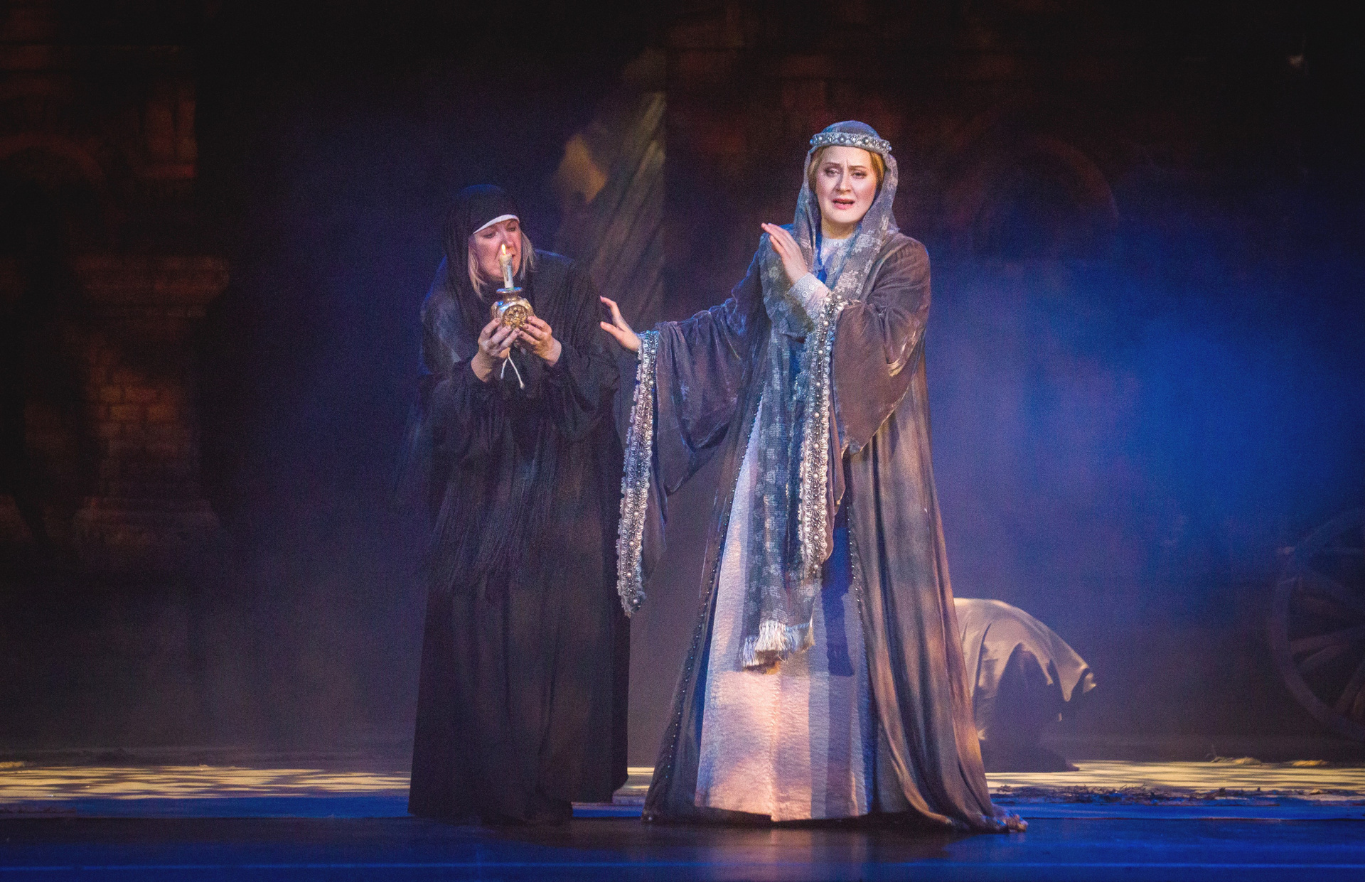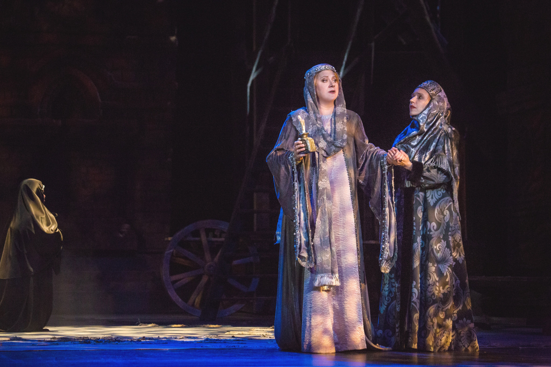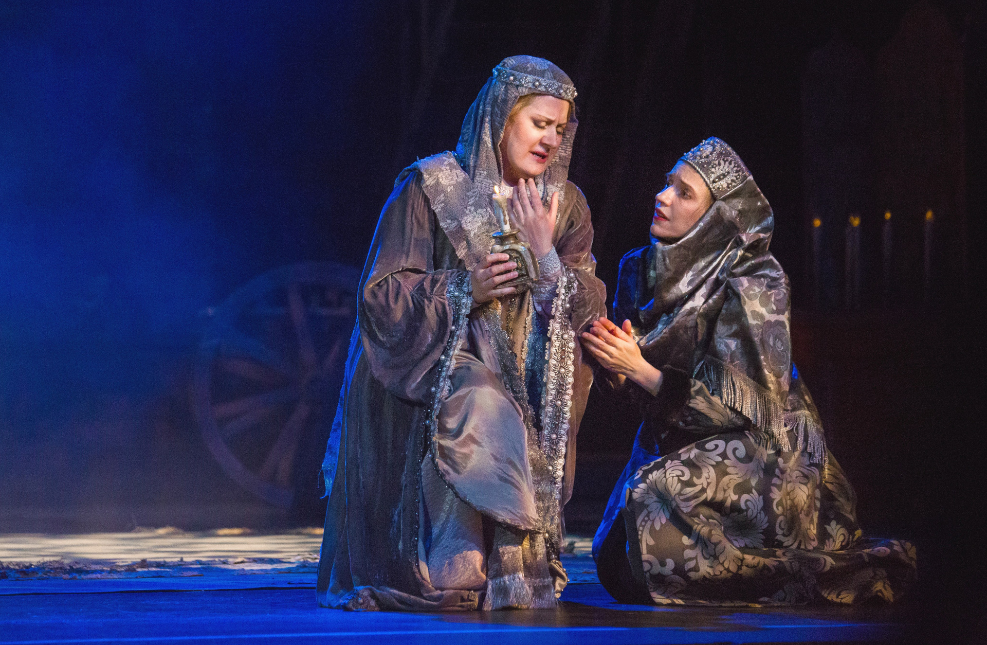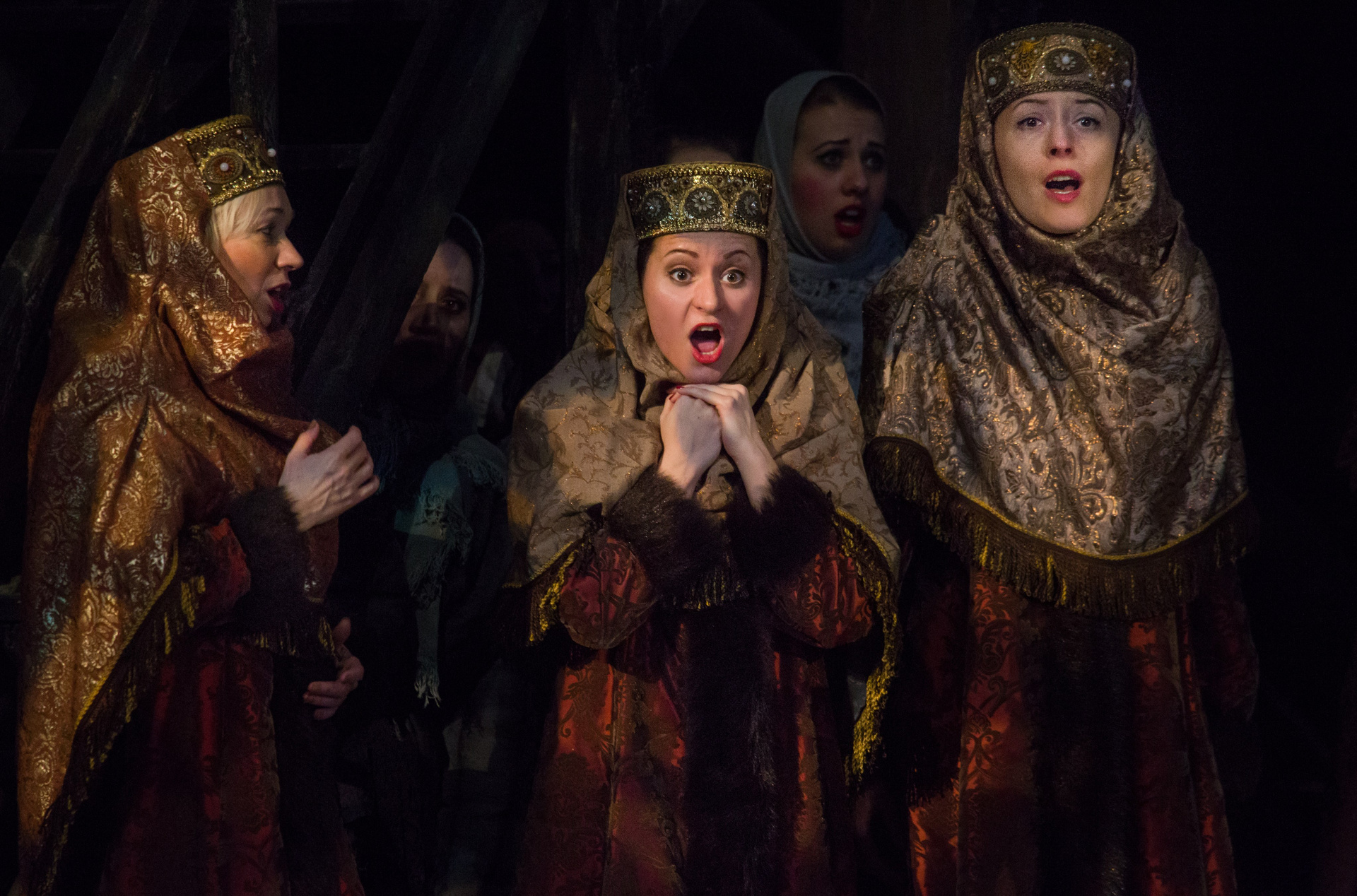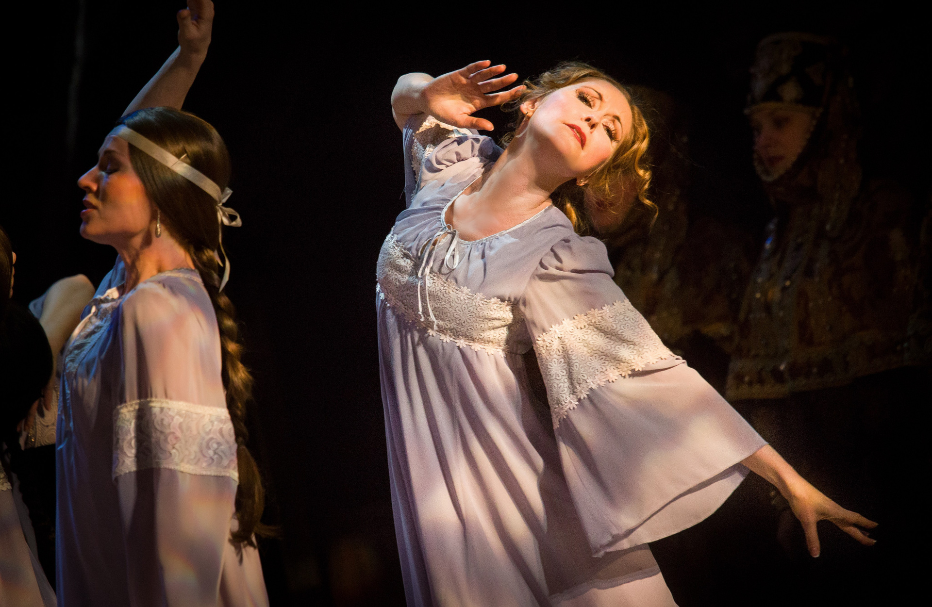 Известно, однако, что на восприятие режиссерской задумки непосредственно влияет исполнительская составляющая. И она была вполне на высоте — впечатляюще провели свои партии басы Евгений Ставинский (Галицкий) и Владимир Кудашев (Кончак), невероятно понравилось исполнение Георгия Васильева (Владимир Игоревич), который обладает звонко-полетным и свободно льющимся голосом, в общем, лирический тенор лучшего качества. Отменным получился его дуэт с Валерией Пфистер, чей обволакивающий тембр и колоритная внешность прекрасно соответствовали образу Кончаковны. А вот с протагонистом всё сложнее — на октябрьском спектакле, когда состоялся дебют Андрея Борисенко в роли Игоря, можно было надеяться, что он еще освоится в данном образе, найдет уникальные краски и представит своеобразное прочтение, но, увы, его исполнение оказалось все еще очень клишированным и неубедительным, такой князь сочувствия не вызывал нисколько. Зато Ярославна — Елена Поповская — даже невзирая на резкие крайние верхние ноты, хорошо прозвучала в своей сложнейшей, практически колоратурной партии, и при этом сумела показать всю глубину внутренних терзаний без лишней аффектации.