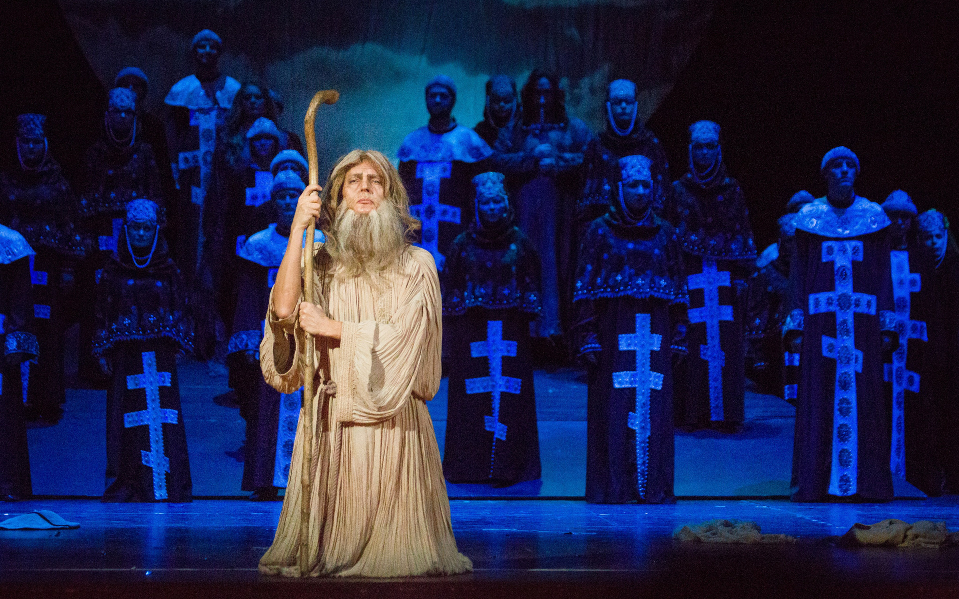 Чтобы ответить на вопрос, хороша ли постановка «Князя Игоря» в театре «Новая опера», нужно сперва понять, почему же Александр Бородин избрал в качестве источника своего величайшего творения этот древний сюжет о неудачном походе Новгород-Северского князя Игоря на половцев, и в чем вообще значение «Слова о полку Игореве» — не только для истории или лингвистики, но для русской культуры в целом. А значение это в том, что «Слово» архетипично не менее, чем какая-нибудь «Старшая Эдда» или «Беовульф», поскольку также содержит первичные образы и характерные черты, положенные в основу культуры и переходящие из поколения в поколение. Хотя по своим особенностям оно ближе, конечно, не к раннесредневековому, архаическому эпосу, а к героическому — как «Песнь о Роланде» или «Песнь о Сиде», где сюжетное ядро также составляет борьба с иноземными захватчиками.