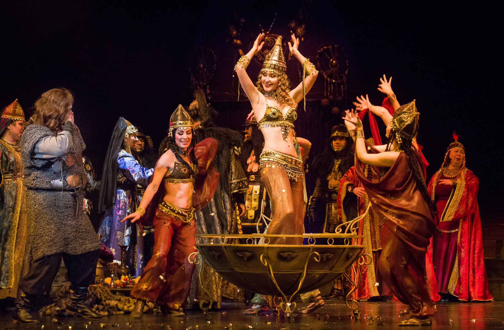 Хотя смысловые акценты Александров действительно серьезно смещает, при этом осуществляя также музыкальную редакцию. Современные постановщики, надо сказать, в принципе не считают особым грехом перекраивание «Игоря», оправдывая это тем, что Бородин так и не завершил свою работу — увертюра и фактически все третье действие были воссозданы на основе эскизов Глазуновым, он же оркестровал оперу вместе с Римским-Корсаковым. Правда, каноническая редакция все-таки существует, и при том настолько цельная и последовательная, что любые отступления от нее должны быть весьма и весьма оправданными. И в этом плане к версии Александрова остается множество вопросов. Например, стоило ли вставлять увертюру после пролога? Дело даже не в том, что во времена Бородина и Глазунова оперные увертюры имели вполне функциональное назначение, тут смысл еще и в том, что зритель сразу должен погрузиться в определенный музыкальный контекст. Впрочем, на спектакле 5 марта оркестр, за пультом которого в этот раз стоял дирижер Василий Валитов, исполнил увертюру столь ярко, изумительно, с интересными смысловыми акцентами и впечатляющими соло в оркестре, — как большую картину, написанную сочными красками и сильными мазками, что уже не важно было, до пролога она прозвучала или после, главное — как!