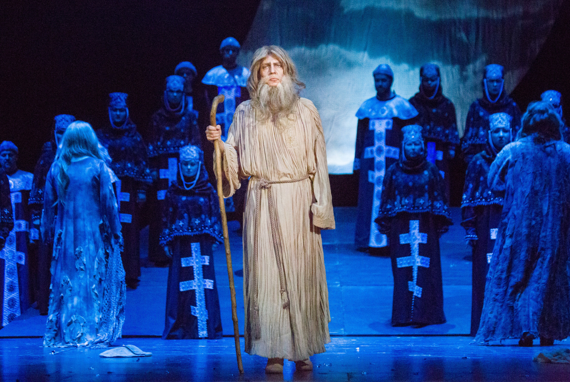 Следующий вопрос к режиссеру касается купированного третьего действия — ясно, что это было необходимо для непротиворечивости его концепции, но, к сожалению, мы лишились множества музыкальных красот, таких как половецкий марш и песня Кончака. Из четвертого же действия была изъята сцена с гудочниками Скулой и Ерошкой и заключительный величальный хор (у Бородина он, по правде говоря, действительно драматургически искусственный, просто нужна была апофеозная концовка). По сути, финал решен в пессимистичном ключе — в разрушенный Путивль возвращается из плена полубезумный скиталец Игорь, все еще одержимый идеей вновь собрать войско и пойти на половцев. Но во время их дуэта с Ярославной, когда князь произносит заветную фразу «Я кину клич из края в край, на хана вновь ударю я», перед ним предстает святой старец, уже появлявшийся то и дело на протяжении всей оперы в ключевые ее моменты. Старец опускает осколок Игорева меча, воздетого над головой, так что выходит, будто князь держит в руках крест. В заключительной мизансцене старец с укором смотрит вдаль под звучащий, словно реквием, проникновенный хор поселян «Ох, не буйный ветер завывал». Смысл ясен — не воевать нужно, но стремиться к обретению истинной веры, а правитель должен нести ответственность перед своим страдальцем-народом. Но подразумевался ли Бородиным данный смысл? Все же нет. Актуален ли он в сегодняшние времена? Безусловно, да — сюжет тысячелетней давности, опера 19 века, а будто всё про нас. Допустима ли подобная трактовка? Каждый должен сам для себя это решить.