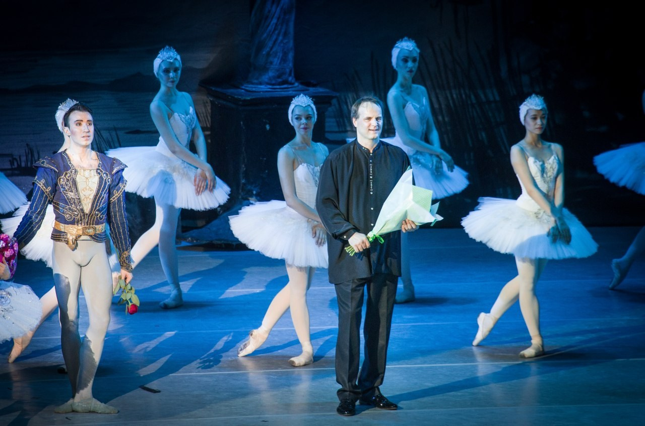 А мне как всегда остается рассуждать о музыкальной части. Что сразу вспоминается и до сих пор будто звучит в ушах — блистательно исполненная сюита характерных национальных танцев из третьего действия с бесподобным скрипичным соло в танце русской невесты. Волнующим у скрипки также получился дуэт с виолончелью в адажио Зигфрида и Одетты. Стоит отдельно отметить духовые — даже медь в тот день была матово-благородной, а особенно отличились, все деревянные (лишь вначале резко прозвучала флейта, но то, впрочем, был скорее недочет подзвучки), и конечно, невероятно хорош был гобой в своей ответственной партии: и в allegro moderato второго действия — Танце маленьких лебедей, и собственно, в трогательно-щемящей «лебединой песне» — теме-лейтмотиве, которая появляется уже в увертюре и варьируется вплоть до финала, являясь как бы связующим звеном между всеми остальными темами, делая балет цельным музыкальным действом, а не множеством разрозненных танцевальных номеров.