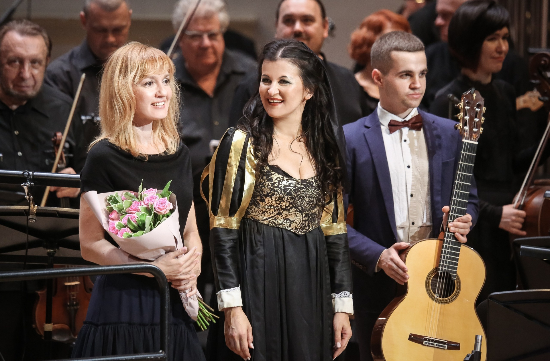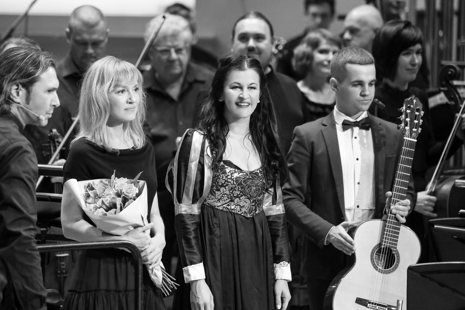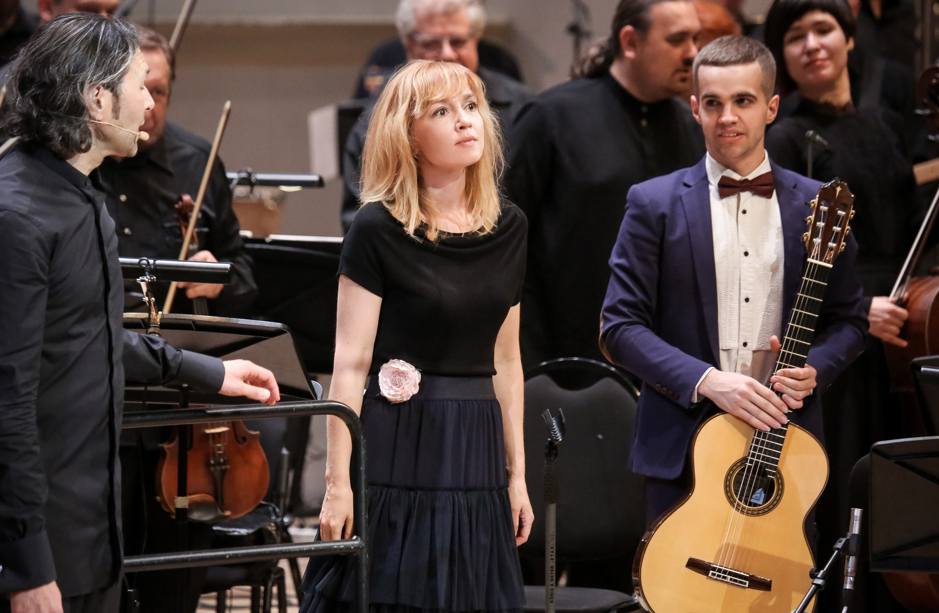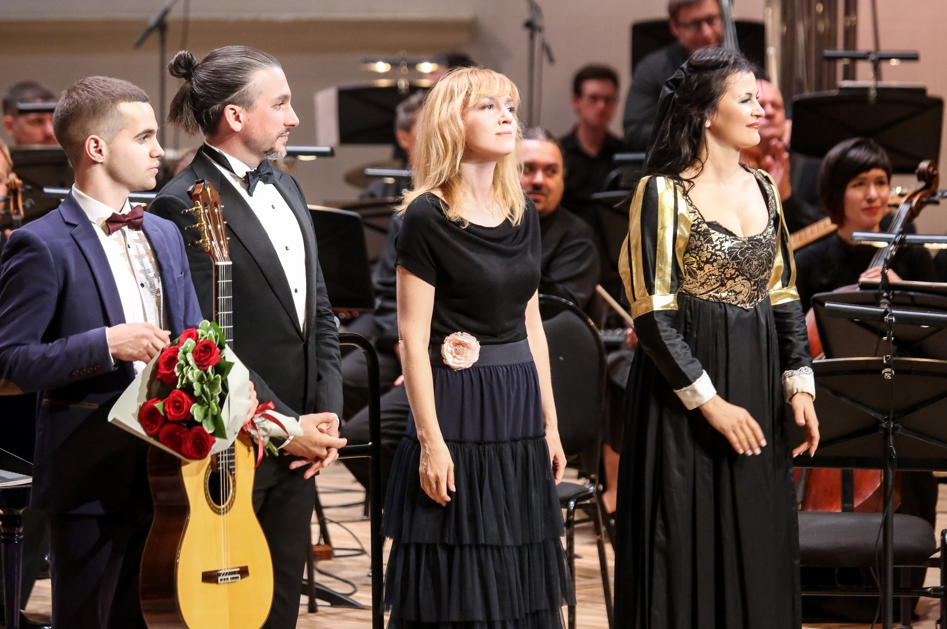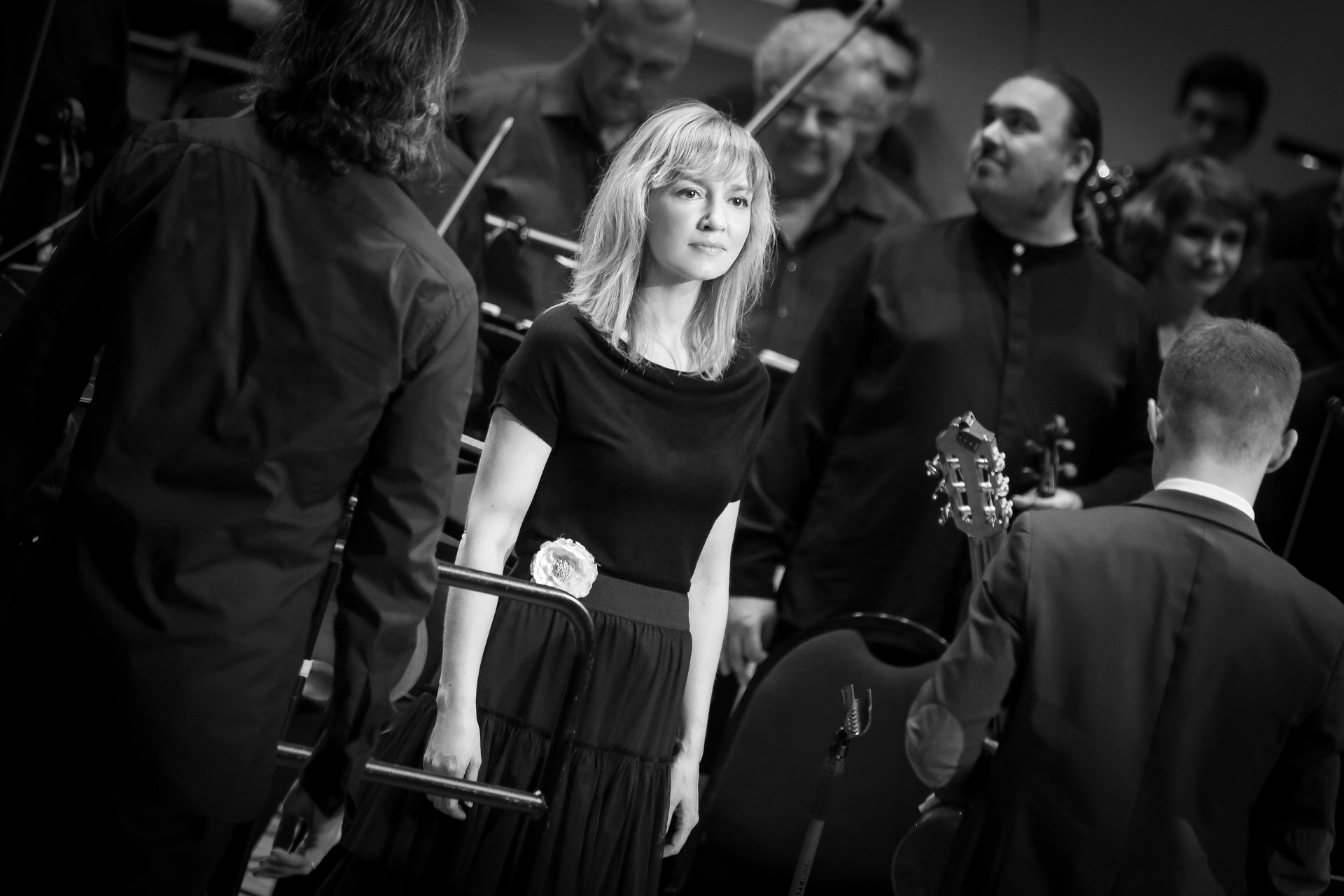 Эта театрализация в принципе сочеталась с оформлением сюиты, представленной не просто как симфоническое произведение, но как синтетическое действо, в исполнении которого помимо оркестра, певицы и приглашенных гитаристов (Артем Дервоед и Никита Неделько) также участвует танцовщица фламенко Ольга Пшеницына, и всё это сопровождает достаточно тонко сделанная нарезка сцен из фильма. А за приведение всех составляющих к общему знаменателю отвечала режиссер концерта Ася Чащинская — она же талантливо поставила сцены из «Бориса Годунова», исполнявшиеся в последний вечер «Историй с оркестром», но об этом уже в следующий раз…