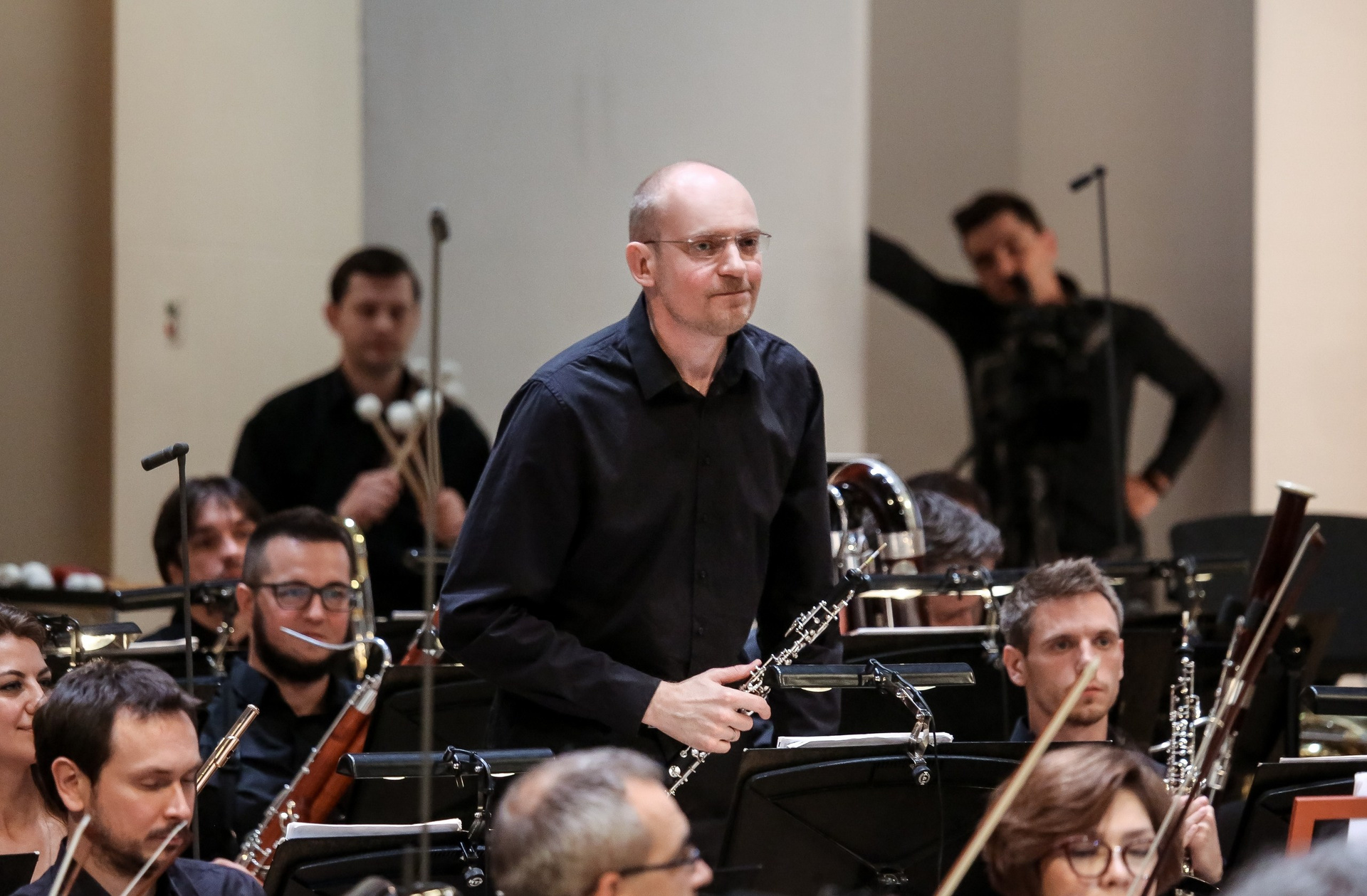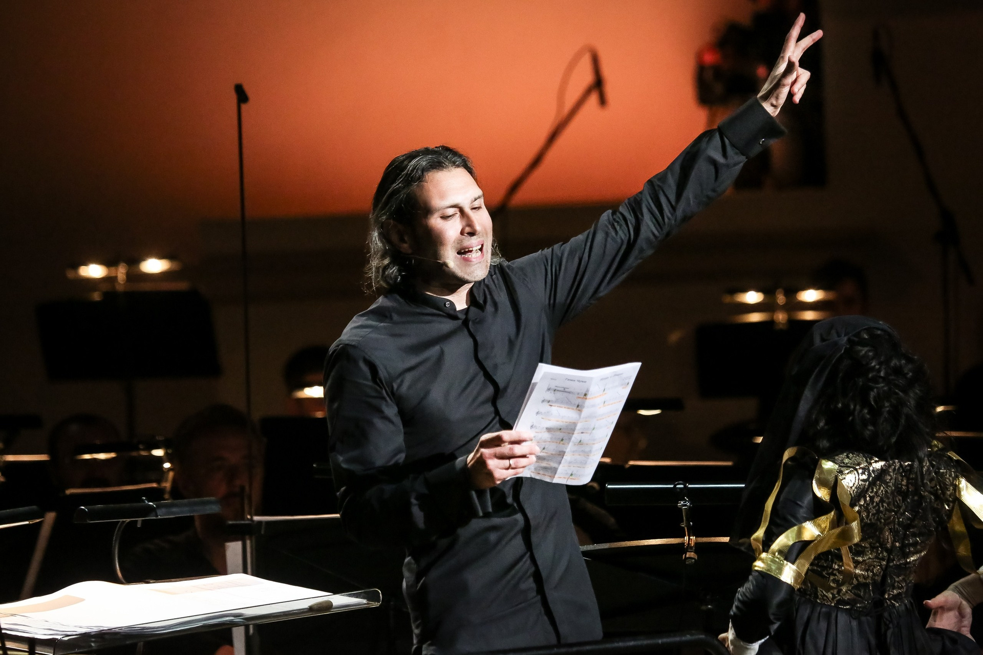Но кульминацией вечера, без сомнения, стал Шнитке, причем вышла фактически мировая премьера — ведь значительная часть написанной музыки так и не попала в фильм. Партитура десятки лет лежала в архивах Оркестра кинематографии, пока ее не заполучил Владимир Юровский, составивший по этому материалу сюиту — абсолютно конгениальную творению композитора! После нее действительно невозможно переключиться на что-то еще: киномузыка Альфреда Гарриевича упоительна, то беззастенчиво красива, то зловеща, с привязчивыми темами и нарочито простыми, застревающими в памяти мелодиями песен (их исполняла известная джазовая певица Анна Бутурлина с очень подвижным, пластичным тембром, благодаря которому она безусловно точно попала в стилистику каждого произведения). И уж вовсе сногсшибательным по своему воздействию стал монолог Вальсингама, который взялся читать сам Владимир Юровский. Даже не будучи профессиональным драматическим артистом, он наполнил его небывалой искренностью и силой, к тому же понял нечто очень важное про этот фрагмент — что Шнитке писал Гимн Чуме скорее всего в расчете на Высоцкого. Взяв на вооружение именно его манеру, а также пушкинские строки «слушайте ж меня: охриплый голос мой приличен песне», маэстро исполнил Гимн просто на разрыв аорты, прекрасно и жутко одновременно.