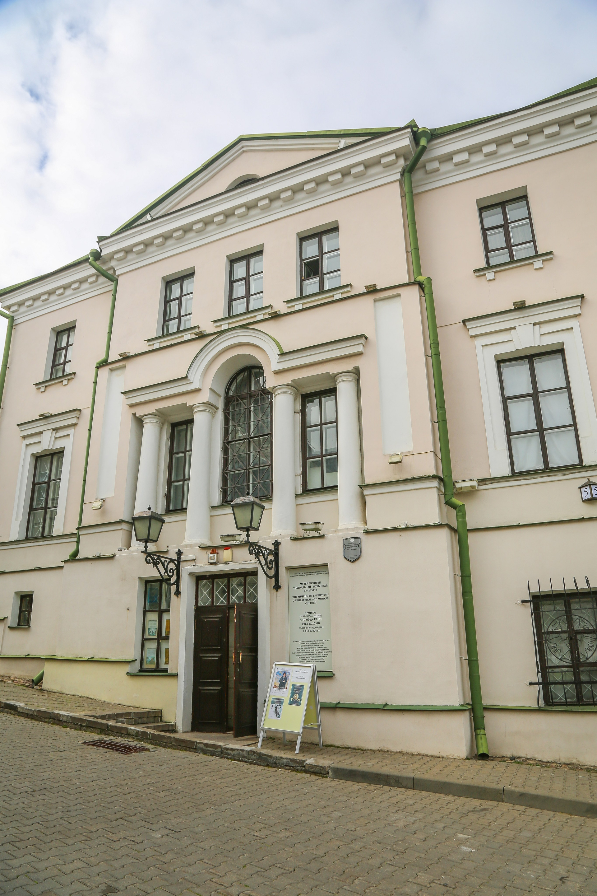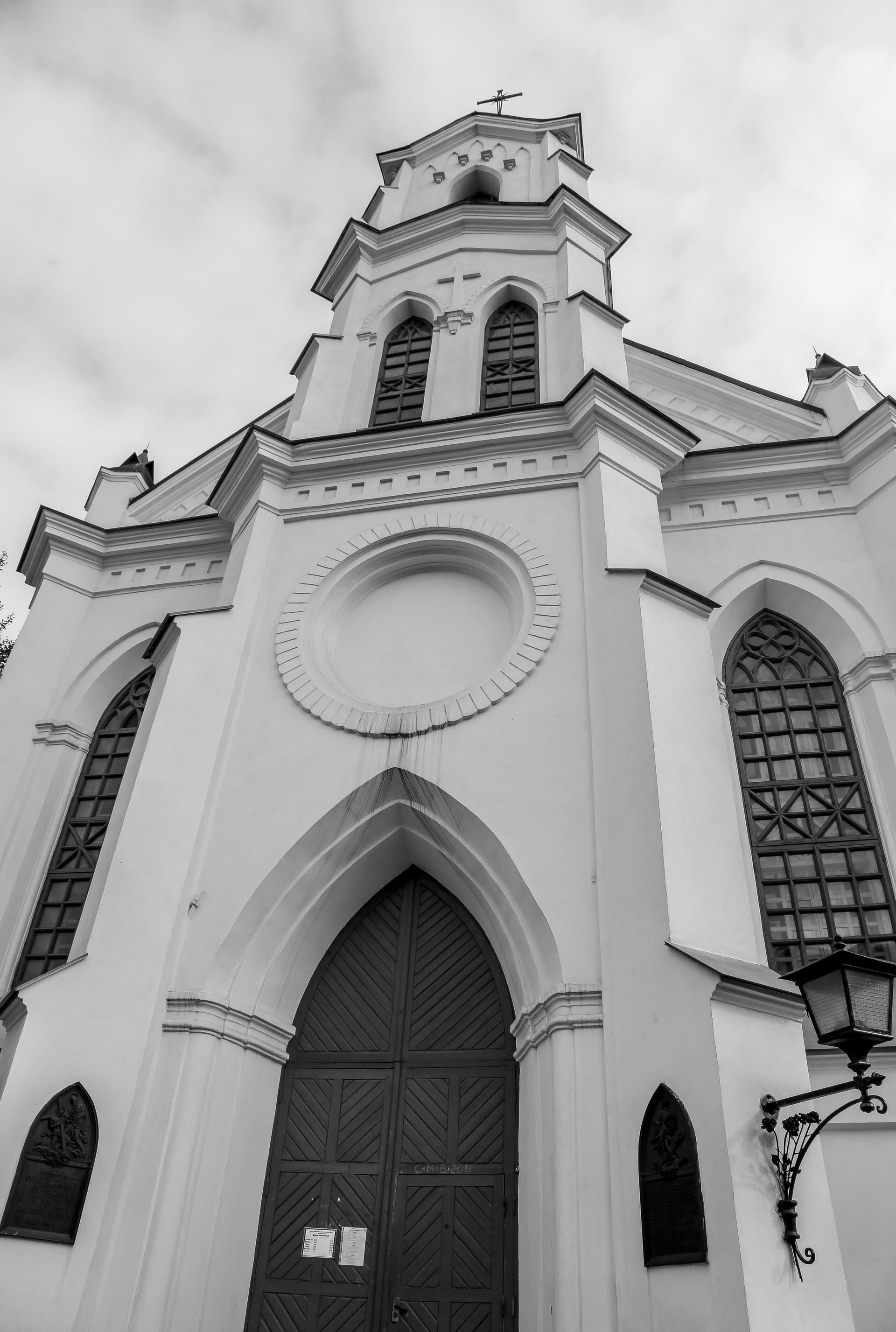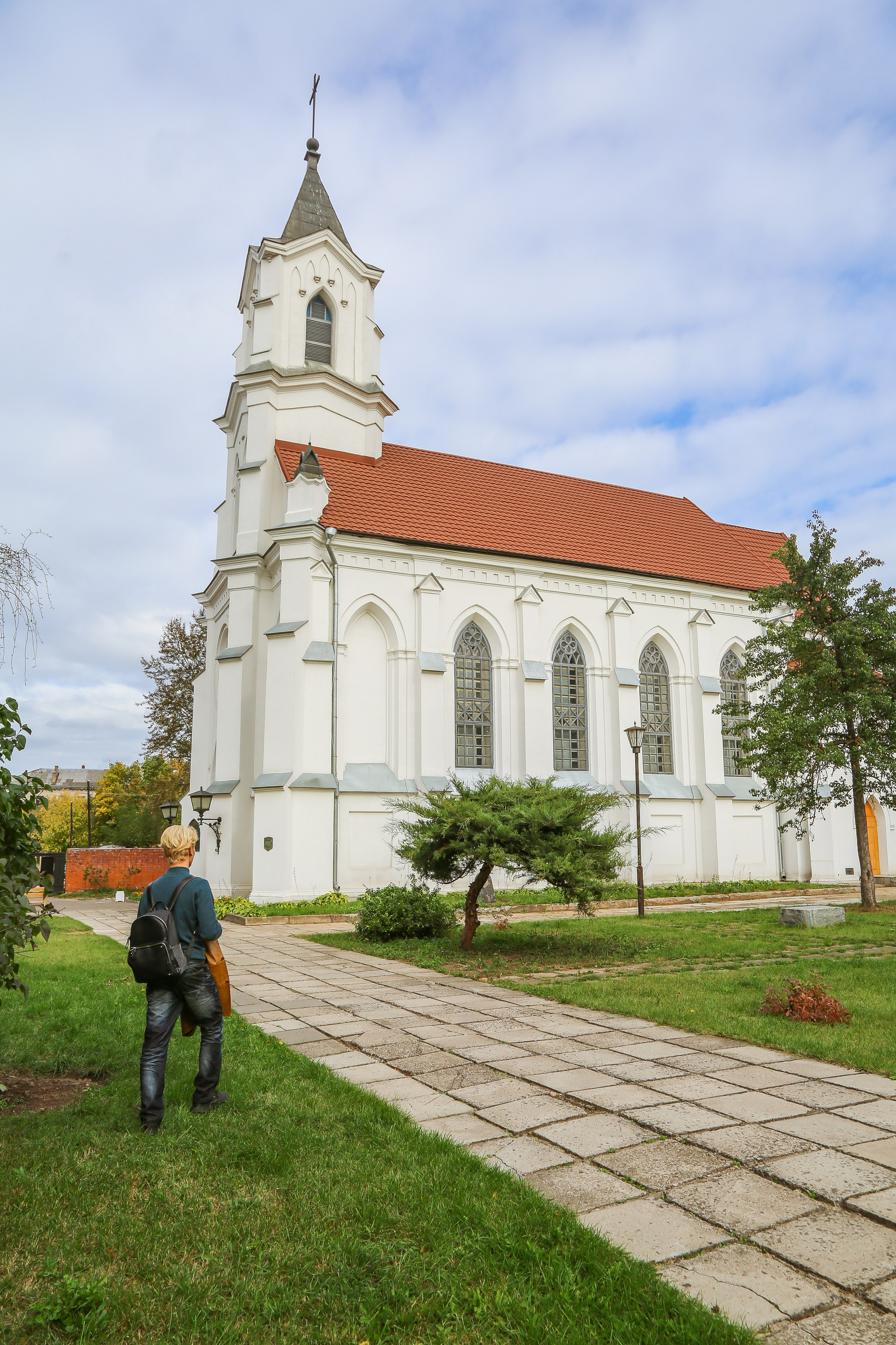 Еще один необычный неоготический храм Минска — Костел Святой Троицы на Златой Горке, куда мы забрели нечаянно: он неожиданно вырос посреди квартала, окруженный останками старого разрушенного кладбища. До вечерней службы было еще далеко, поэтому костел оказался закрыт, но в ответ на стук вышла радушная служительница, которая пустила нас внутрь и рассказала историю этого места: как еще в 14-м веке стоял тут деревянный храм, который сгорел дотла, отстраивался, снова горел, пока в середине века 19-го не возвели каменный костел, посвященный Святому Роху, спасшему, как считалось, город от эпидемии холеры. В советские годы храм переделали в зал камерной музыки Филармонии, поэтому церковный орган до сих пор стоит в алтаре, но десять лет назад здание наконец было возвращено римско-католическому приходу, поэтому вскоре должны и реставрацию завершить, и орган перенести, как положено, на верхний уровень над входом. Напоследок милая женщина даже вручила нам красочный буклет о костеле и, в общем, подтвердила своим примером рассказы о доброжелательности минчан.