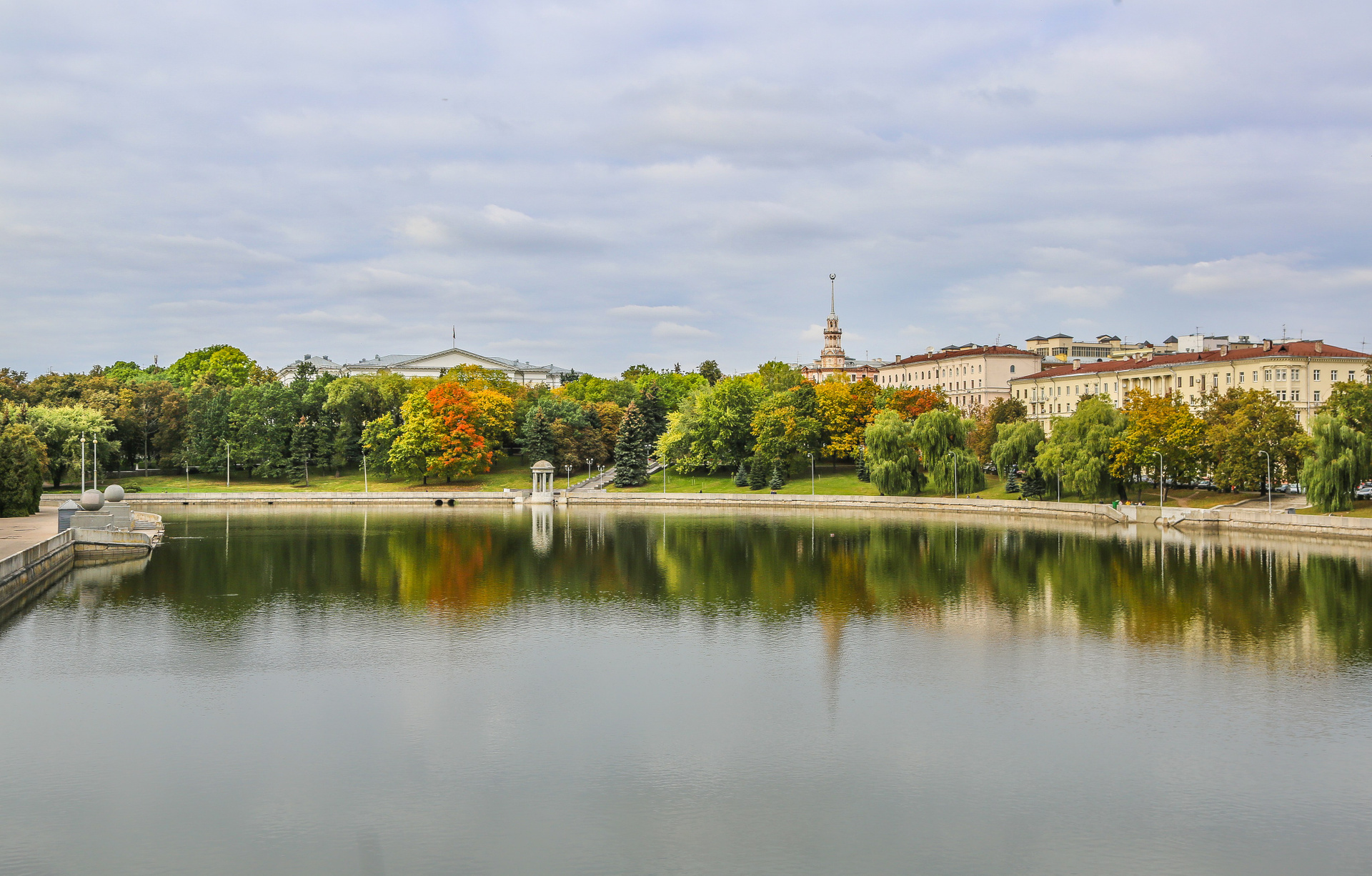 Зато неподалеку раскинулся изумительный Парк Победы — до недавнего времени он стоял заброшенный, а несколько лет назад был возрожден, так что сейчас это удивительное место, уникальное, где есть и нехоженые тропы, и вся необходимая инфраструктура, а также парковые скульптуры, уютные беседки, обилие тихих лавочек, березовые рощи, лодки на реке и фонтаны, порой бьющие прямо из-под земли. Тут Минск кажется особенно прекрасным. Наверное, таким он и запомнится мне навсегда. Запомнится пестрым осенним нарядом, алеющей калиной, что так и манит прильнуть губами, и бесконечной нежностью, от которой щемит сердце…