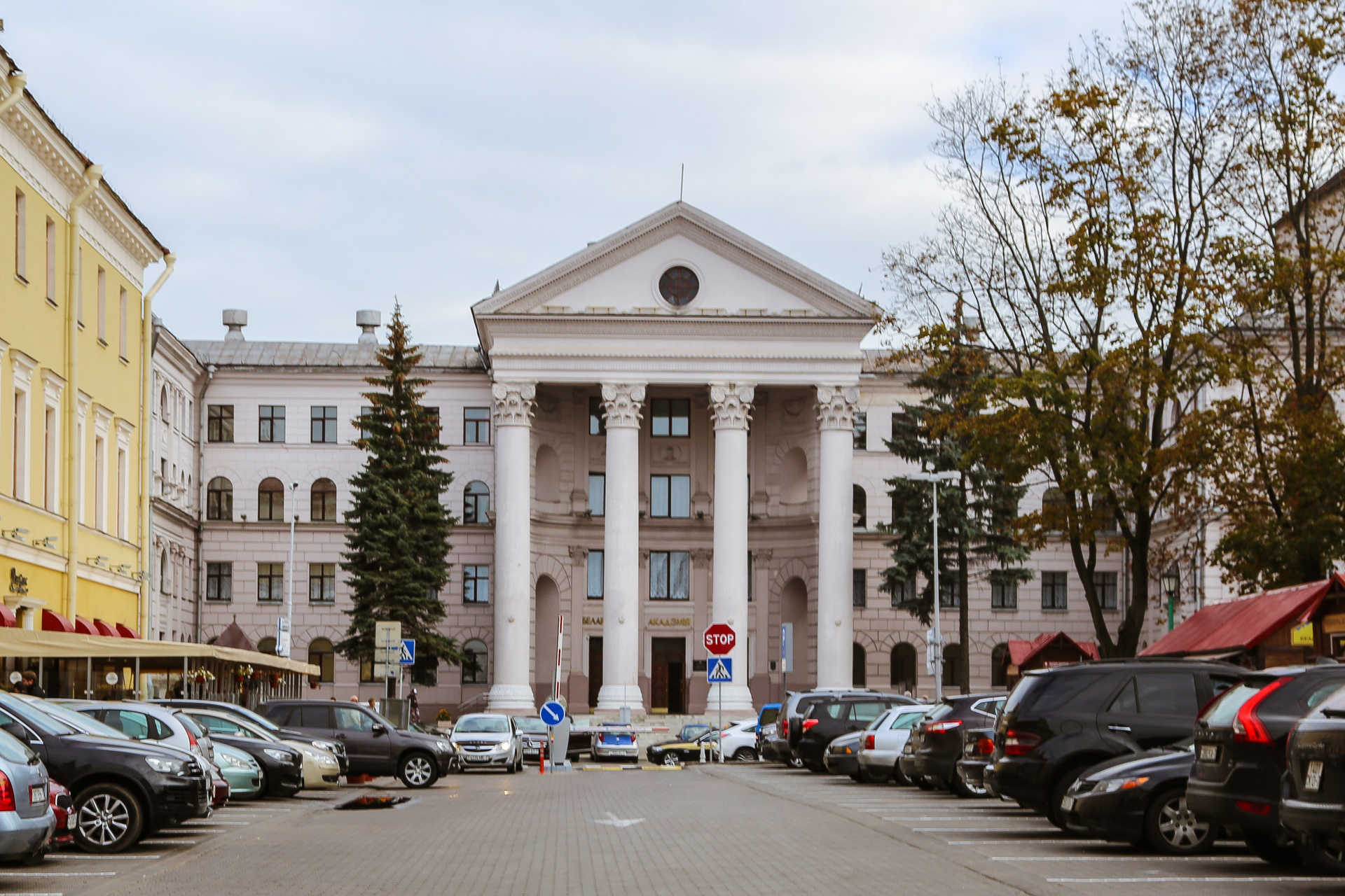 Разношерстный минский центр, конечно, напоминает о том, что после бомбежек Второй мировой город лежал в руинах, уцелела лишь сотня зданий — среди них есть и старые дореволюционные, и вполне неплохие памятники конструктивизма 20-30-х, например, Театр оперы и балета. Недурно вписался в архитектурный облик и сталинский ампир — на площади Победы, проспекте Независимости — все эти барельефы, колонны, шпили и башенки, среди которых особо примечательна Башня Цанавы на здании КГБ, своеобразный символ всевластия тайной полиции даже в вопросах архитектуры, поскольку решение установить башню асимметрично, вопреки правилам, принял лично министр госбезопасности БССР Лаврентий Цанава. До известного по открыткам комплекса «Ворота Минска» на Привокзальной площади добраться в этот раз не вышло, зато удалось взглянуть на другие типичные образцы — и опоясанный колоннами ДК Профсоюзов с фронтоном, где расположились скульптуры рабочих, колхозников, ученых и прочих, а также Белорусская академия музыки, где, собственно, и проходил концерт оркестра СНГ.