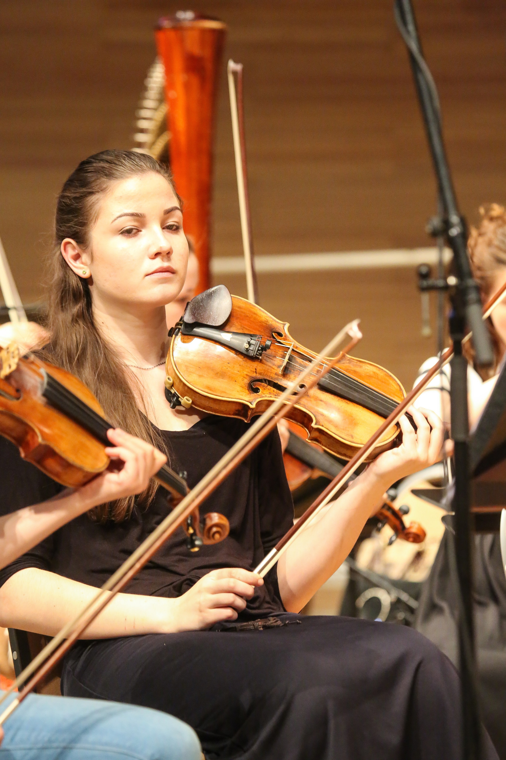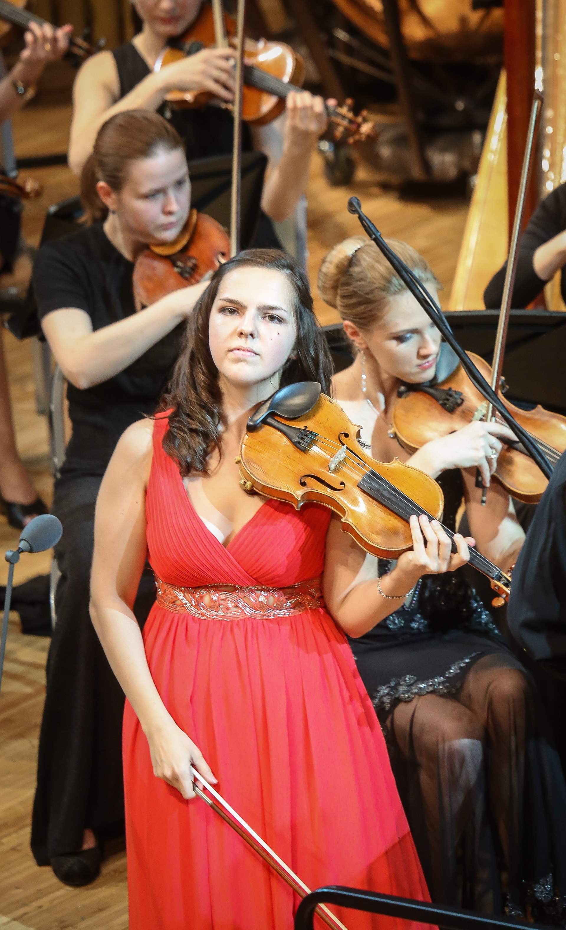 Отличились и струнники — учащаяся Колледжа им. Гнесиных, москвичка Анастасия Аверьянова с программной виолончельной пьесой «Пеццо-каприччиозо» Чайковского, молдавский альтист Юрий Атвиновский с виртуозным концертом Белы Бартока, а также скрипачи, студенты московской Консерватории — Пётр Чонкушев (Калмыкия), сыгравший скрипичную поэму авторства своего деда, выдающегося советского композитора, и Валерия Сидоренко (Башкортостан), чей прекрасный и яркий образ полностью соответствовал исполняемому произведению — колоритной «Цыганской рапсодии» Равеля. Армению на фестивале представляла еще одна скрипачка, Елена Таросян, уже прежде выступавшая с Юношеским оркестром, которая на сей раз исполнила в свойственной ей вдохновенной манере третью часть концерта Хачатуряна.